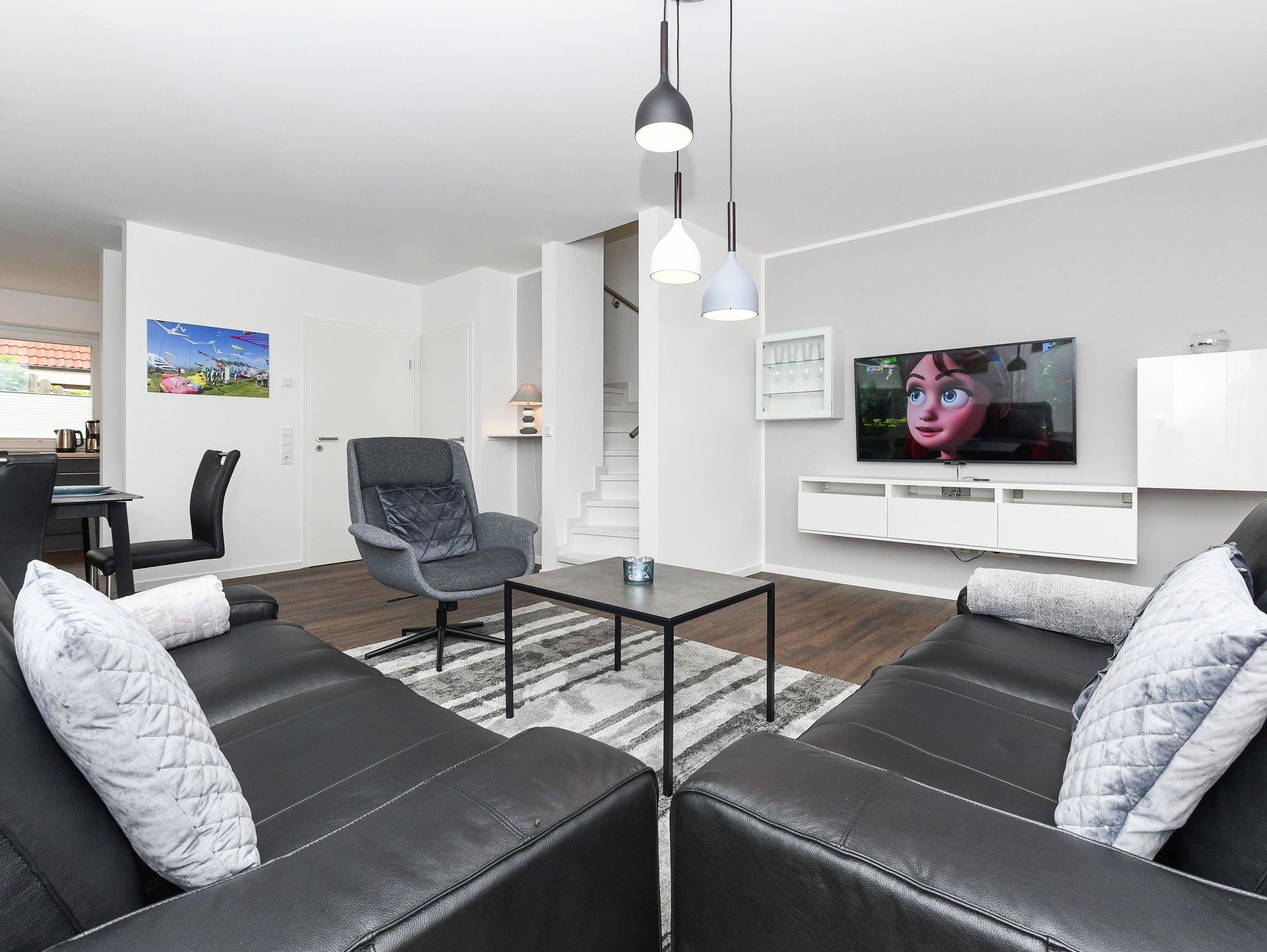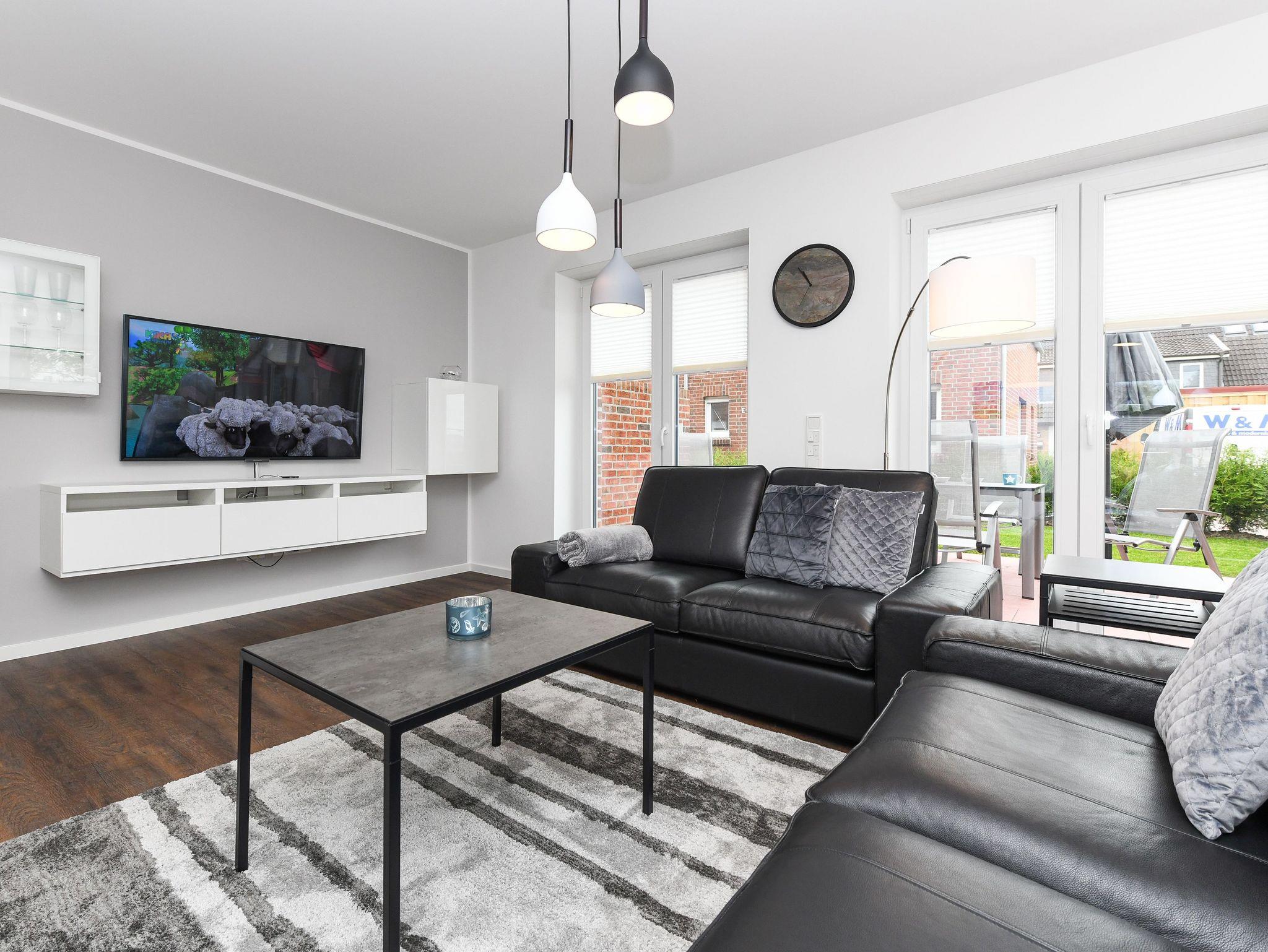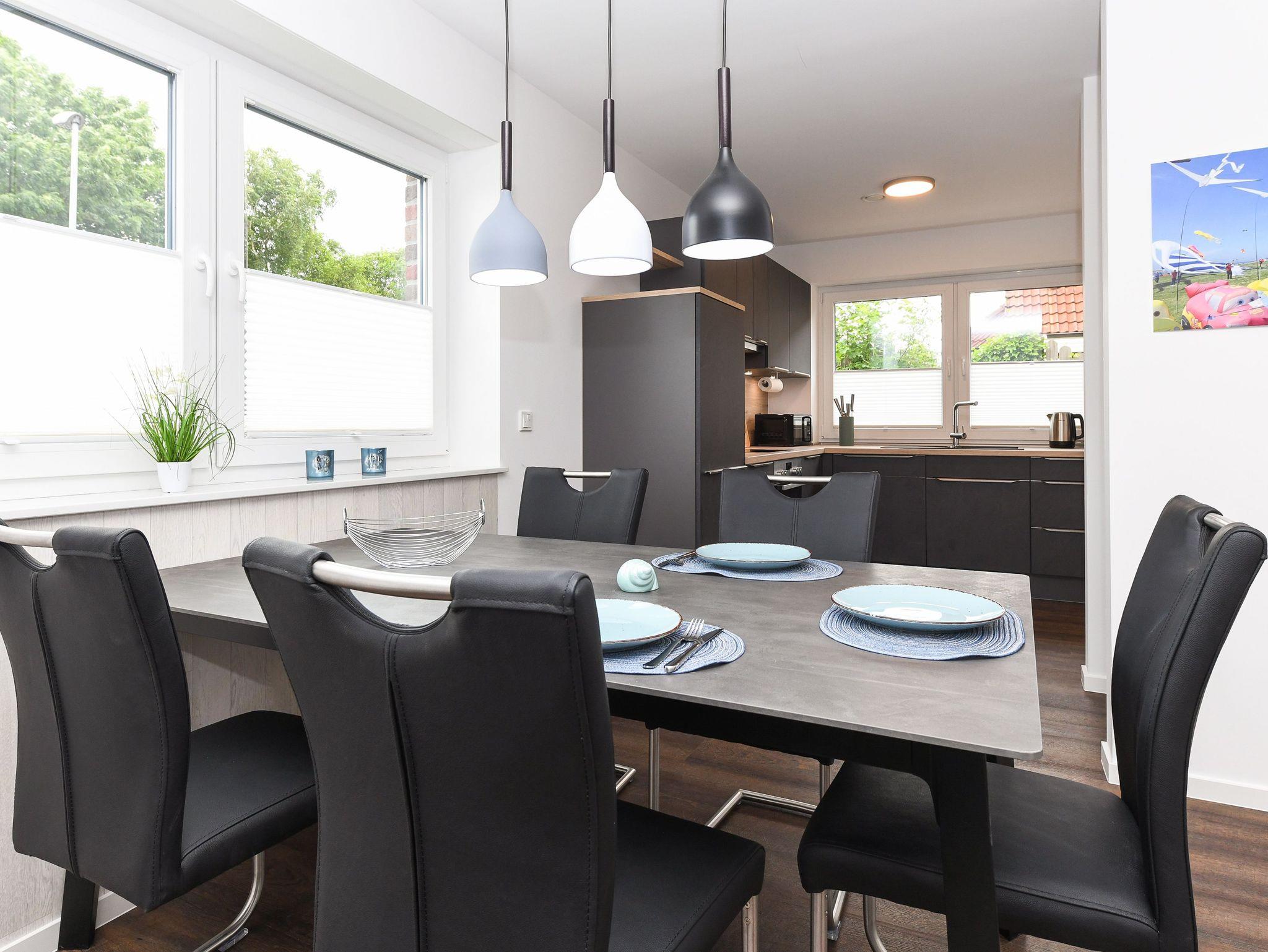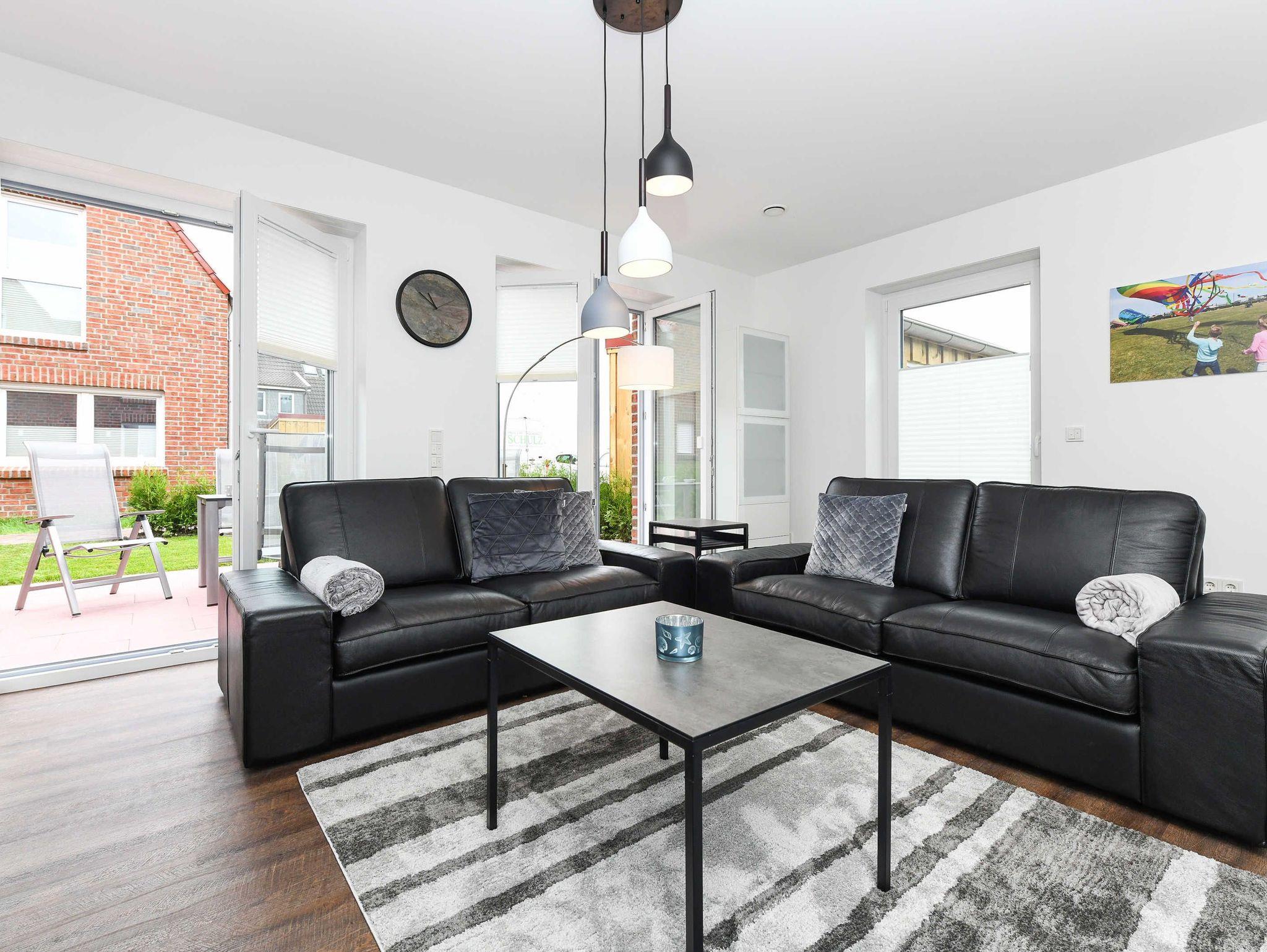 Modernes Ferienhaus Mos Sandbank in Dornumersiel, ruhig gelegen nahe Nationalpark Wattenmeer, ideal für Familien.