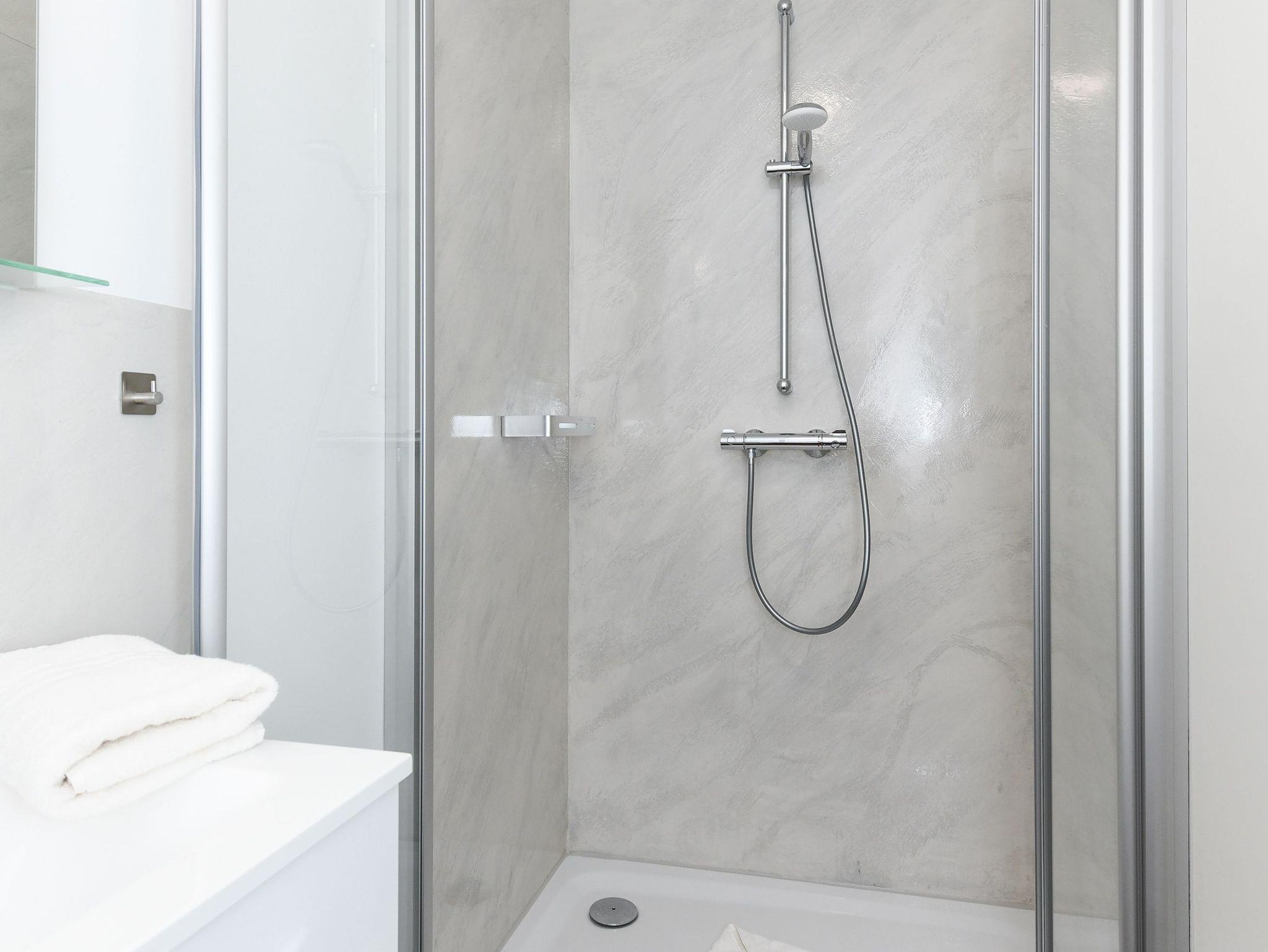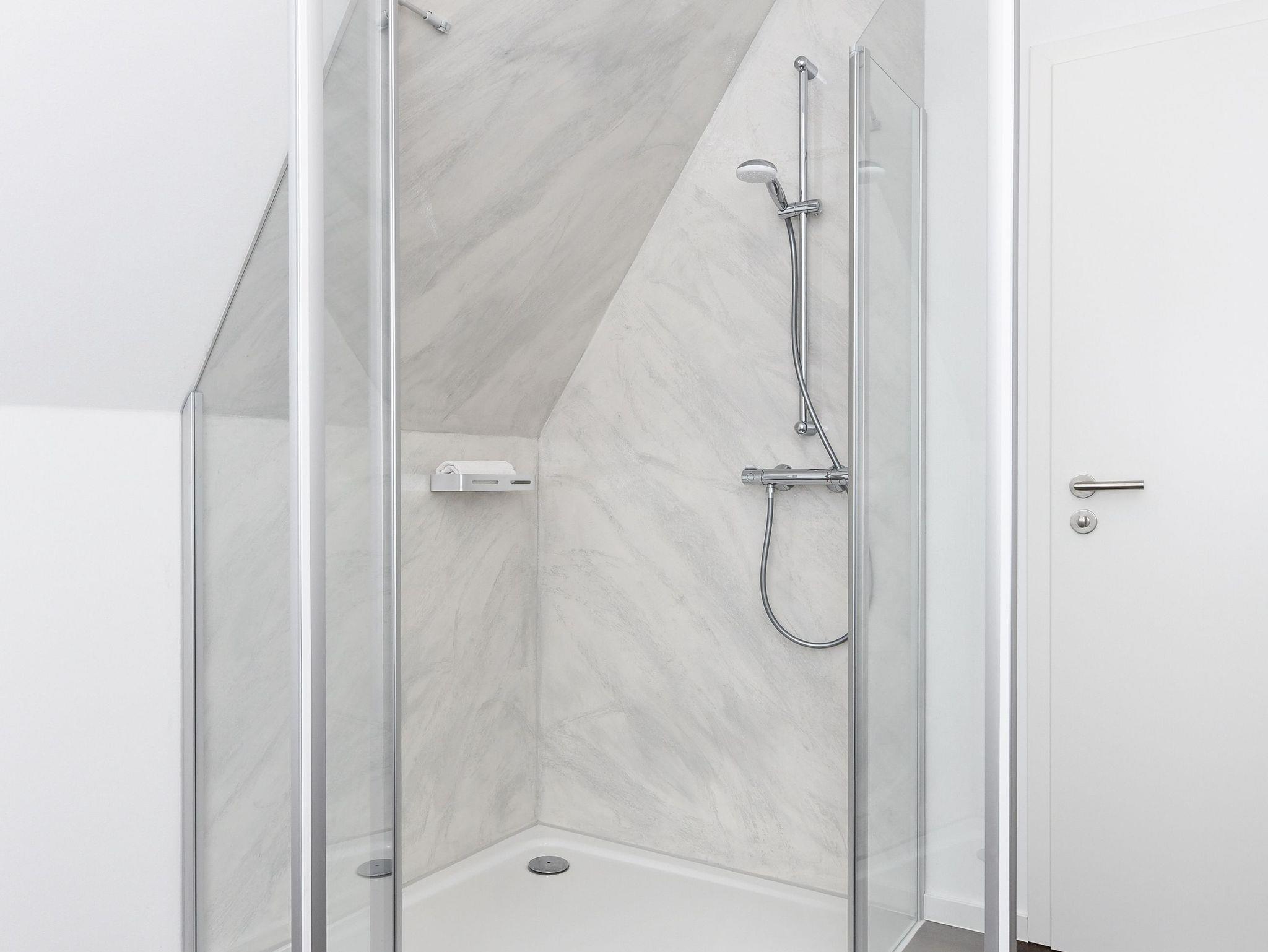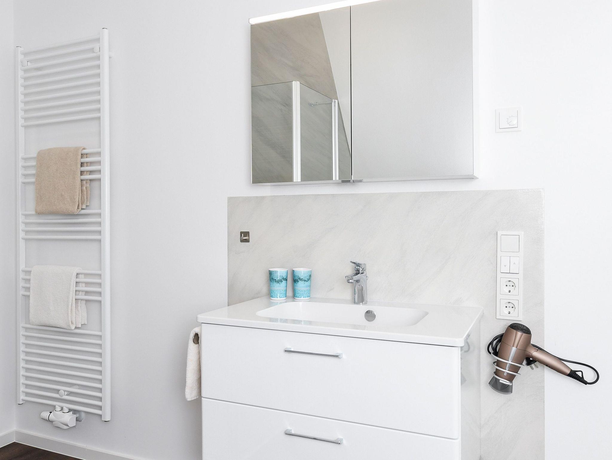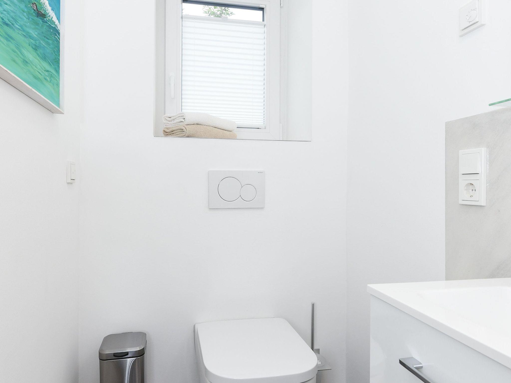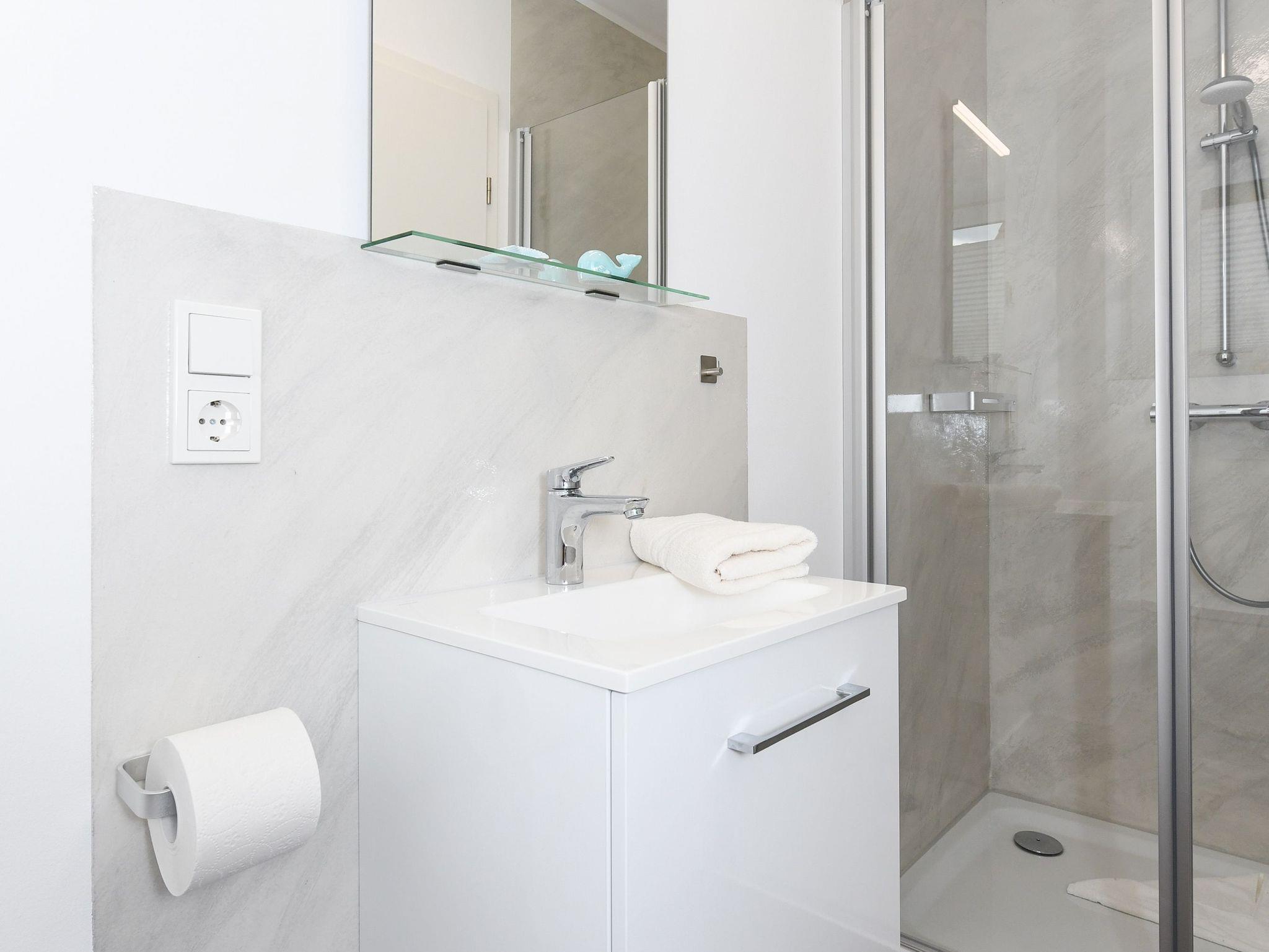zweites Badezimmer mit Dusche, Waschtisch und WC