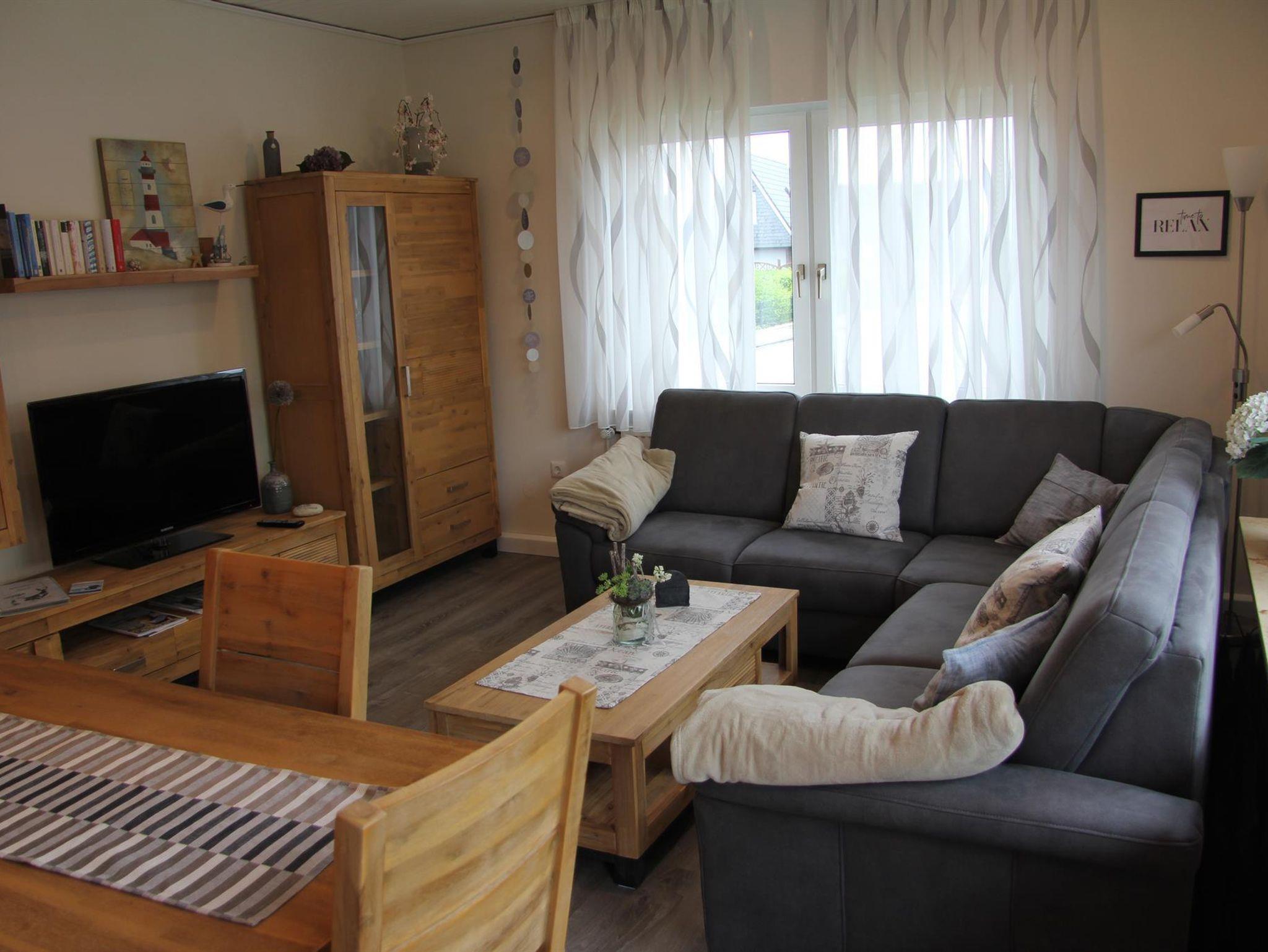 In unserem gemütlich eingerichteter Wohn- Essbereich werden Sie neben einem Sat-TV auch Bücher, Gesellschaftsspiele, Puzzle und Lego-Spielsachen vorfinden. Der große Esstisch läd zum spielen und genießen ein. Die Küche ist mit einer Küchenzeile ausgestattet. Eine Kaffeemaschine, Heißluft-Backofen, Spülmaschine und Mikrowelle ist vorhanden. Außerdem finden Sie hier alles, was sonst zum Kochen benötigt wird. Die Betten werden für Sie vor der Anreise mit Bettwäsche frisch bezogen. Um Bettwäsche müssen Sie sich daher nicht kümmern. Die folgenden drei Schlafzimmer stehen für Sie zur Verfügung: Elternschlafzimmer mit Doppelbett, Kinderzimmer mit Etagenbett, Kinderzimmer mit Schlafcoach 90 x 200 cm (ausziehbar auf 140 x 200 cm), sowie ein Kinderbett 70 x 130 cm. Im Badezimmer mit separatem WC finden Sie neben einer Dusche ebenso einen Fön. Wenn nach einem erholsamen Tag am Meer einmal Wäsche anfällt, finden Sie im Keller neben einer Waschmaschine und einem Trockner auch das Bügelbrett und -eisen.