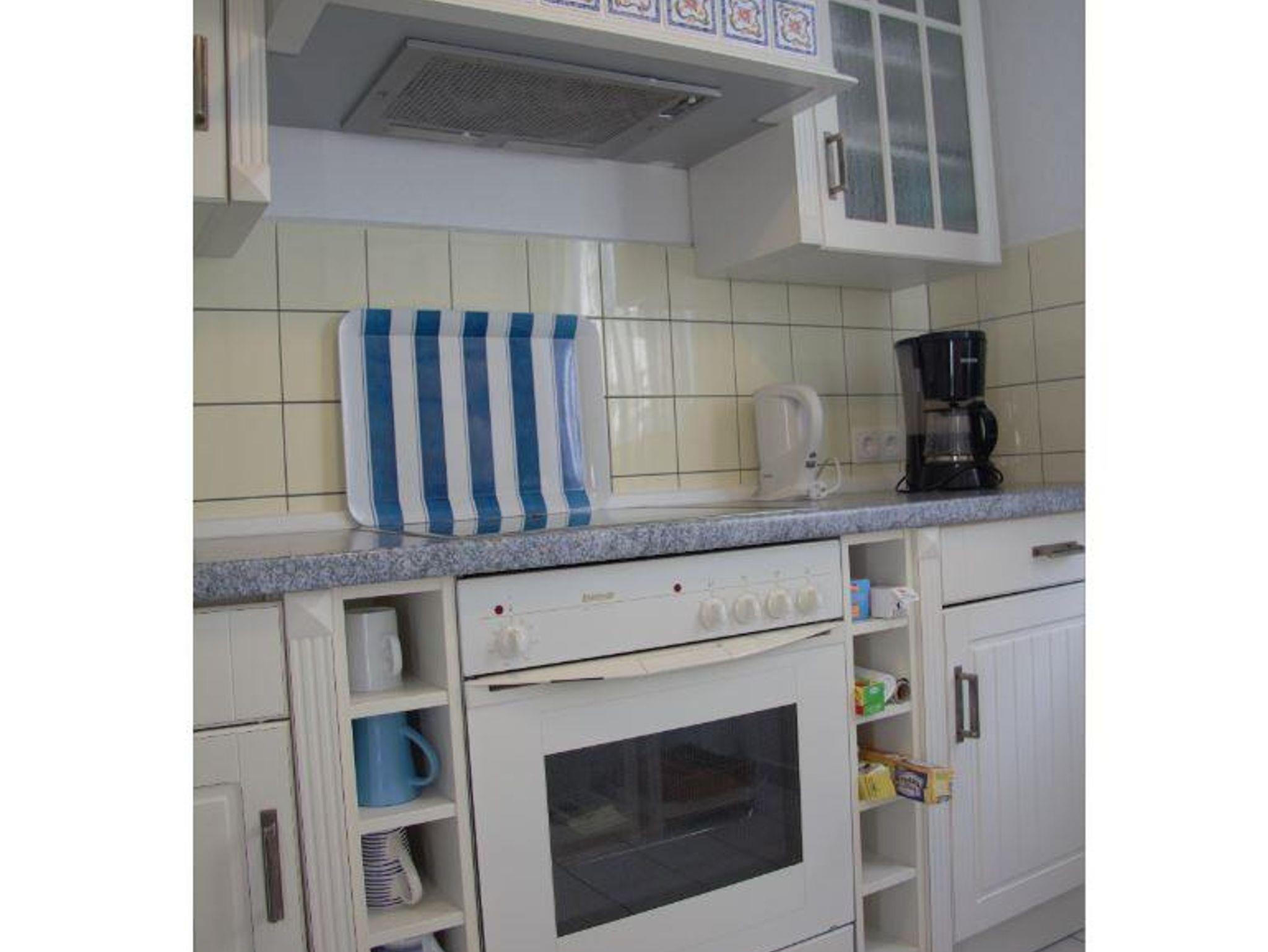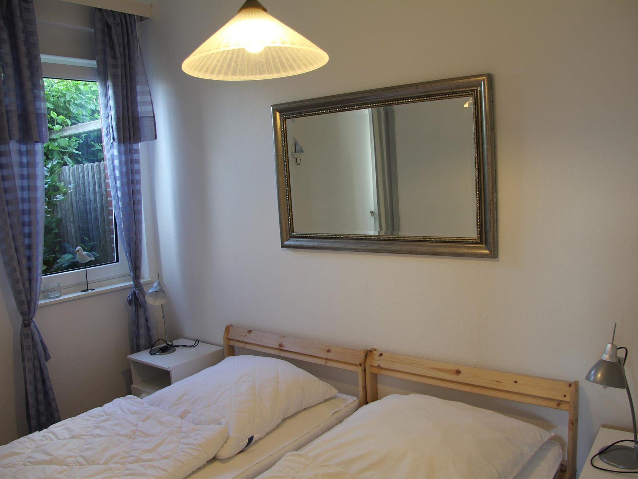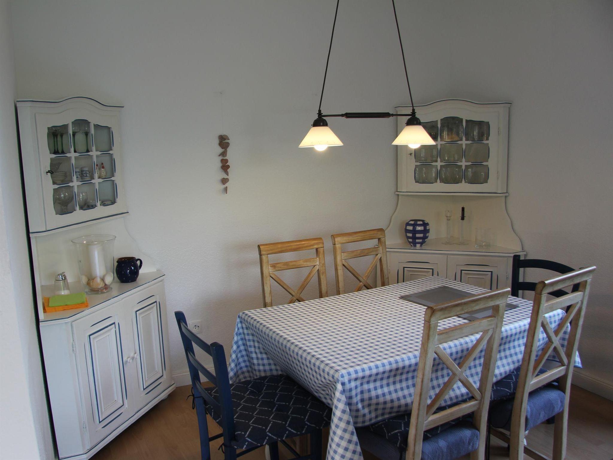 Im Ferienhaus finden Sie eine vollausgestattete Küche, unter anderem mit Spülmaschine, Mikrowelle, sowie Kühlschrank mit integriertem Gefrierfach. Ein Wohn- Essbereich mit Fernsehgerät lädt zu gemütlichen Stunden ein. Als Schlafdomizile werden Sie ein Zimmer mit Doppelbett ( 1,80 x 2,00 m mit getrennten Matratzen ) und eins mit zwei Einzelbetten ( 0,90 x 2,00 m )vorfinden. Das Bad ist modern und barrierefrei gestaltet. Es verfügt ,über ein Oberlicht. WLAN kann von unseren Gästen kostenfrei genutzt werden.