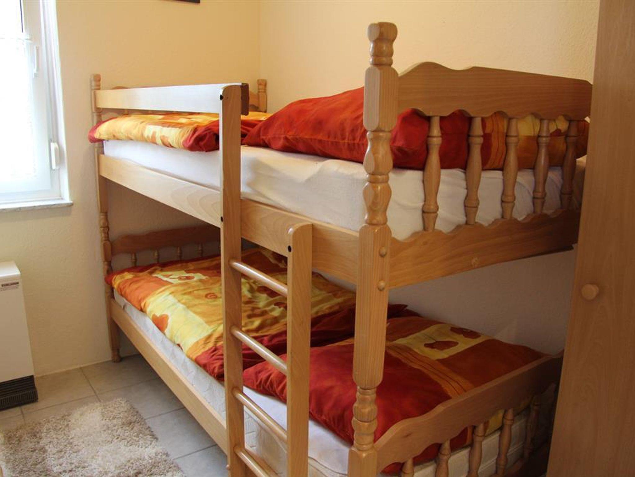 Der zentrale Raum des ca. 53 qm großen Bungalows ist der große, moderne, lichtdurchflutete Ess- und Wohnbereich der 2016 und 2017 renoviert und neu eingerichtet wurde. Hier befindet sich eine gemütliche Couch, ein SAT-TV Anlage, eine offene, neue Einbauküche in L- Form (Geschirrspüler, Backofen, Waschmaschine, Kaffemaschine, Wasserkocher, Kühlschrank und Mikrowelle) und die Essecke. Hier können Sie sich wie zuhause fühlen und den Tag auf der Terrasse oder im Wohnbereich entspannt ausklingen lassen. Es gibt zwei Schlafzimmer zur Nordseite, eines davon hat ein Doppelbett und das andere ein Etagenbett. Das Badezimmer hat Tageslicht, ist mit Dusche/WC und einem Fön ausgestattet.