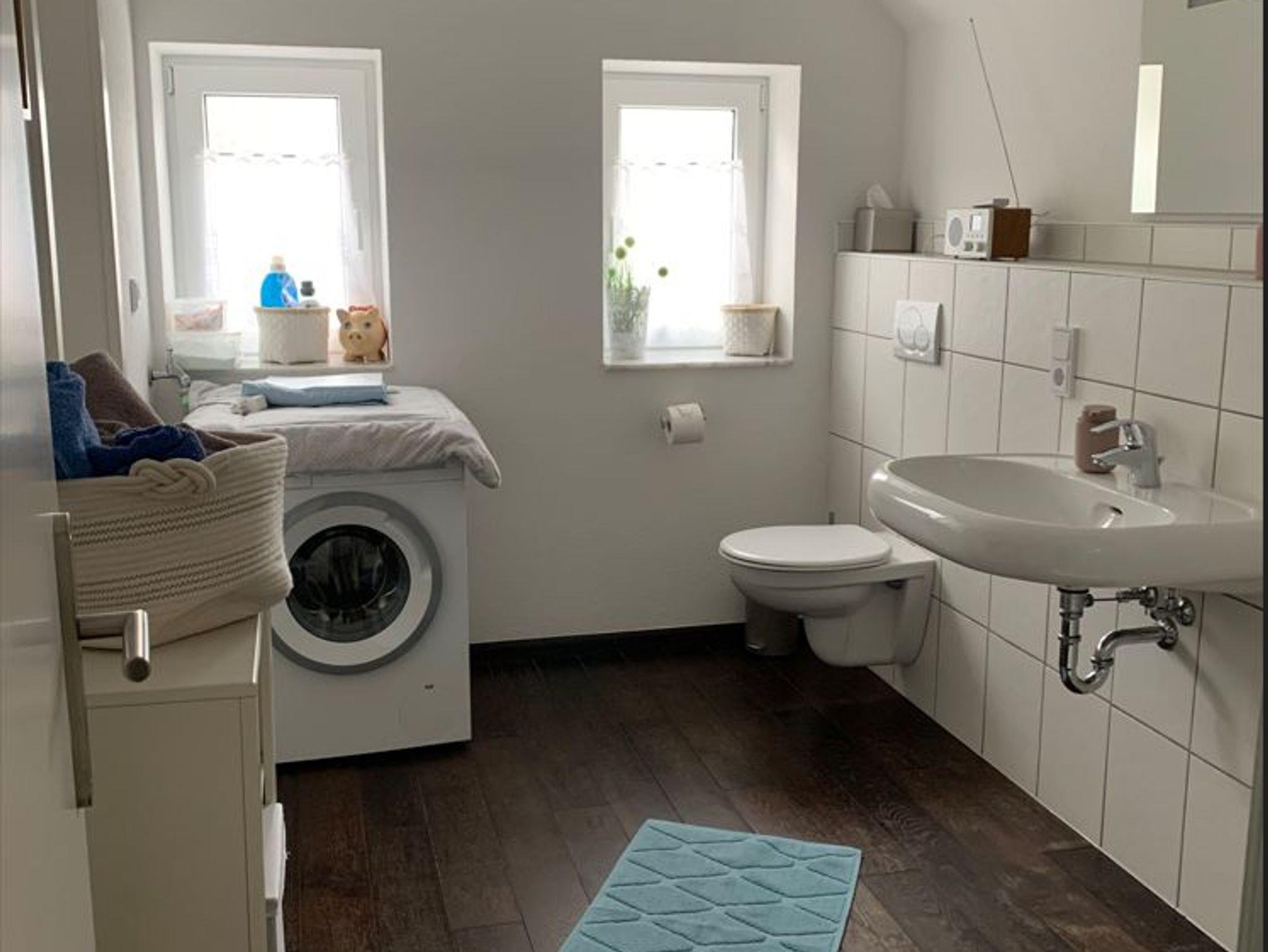 Vor dem Haus steht für beide Einheiten ein PKW-Stellplatz bereit. Fahrräder können sicher hinter dem Haus in einer Gartenhütte abgestellt werden.