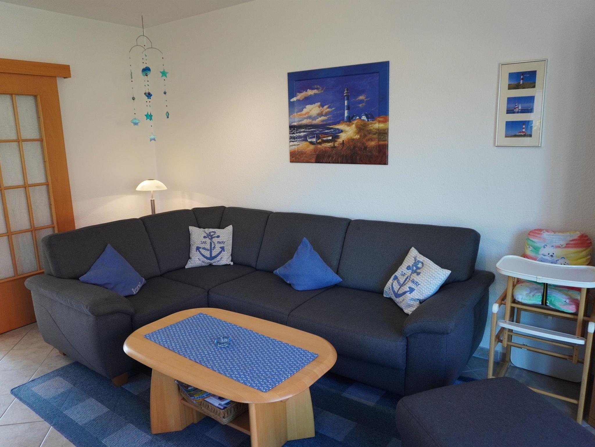 Unser Ferienhaus, ein Reihenendhaus mit ca.75 m² Wohnfläche, befindet sich in ruhiger und dennoch zentraler Lage. Es ist für 4-5 Personen geeignet. Da wir Fliesen und Kork mit Teppichläufern für unseren Fußboden ausgewählt haben, ist unser Haus Allergiker geeignet. In unserem eingezäunten Garten haben Sie die Möglichkeit zum Boccia und Federball spielen. Sie können aber auch auf unserer Terrasse, ausgestattet mit Gartenmöbeln und Grill, nach einem Tages- oder Strandausflug einfach die Seele baumeln lassen. Als Sonnenschutz dient eine elektrische Markise. 2 Damenräder, 1 Mountainbike, 1 Kinderfahrrad, 1 Bollerwagen und 2 Cityroller runden das Angebot unseres Hauses ab. PKW-Stellplatz und Abstellraum für Fahrräder vorhanden.