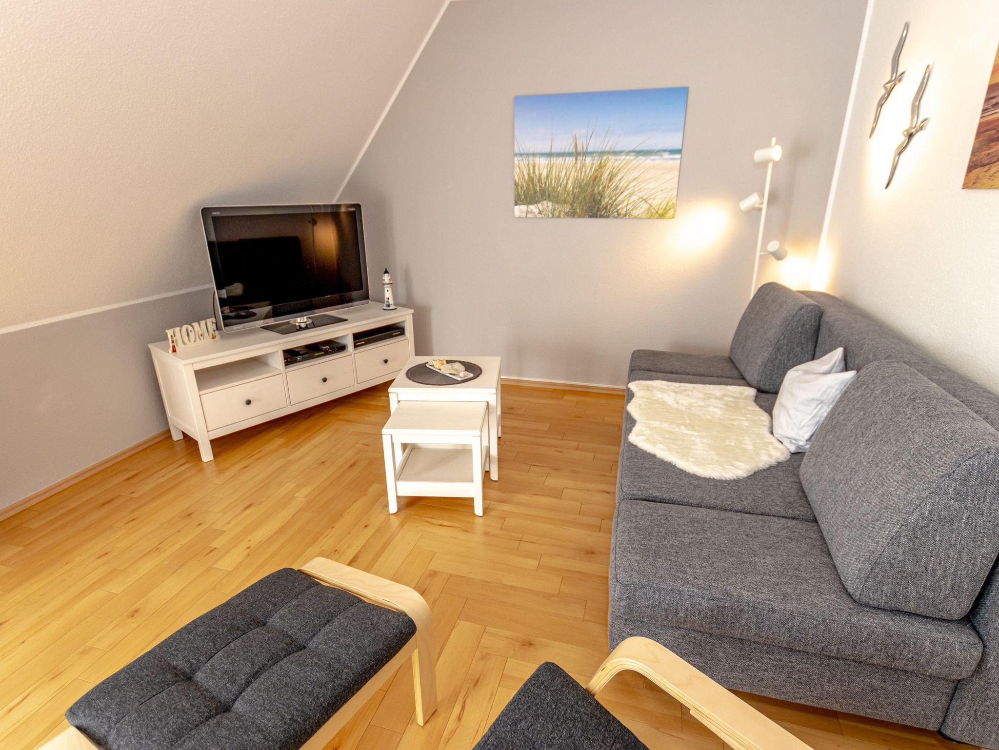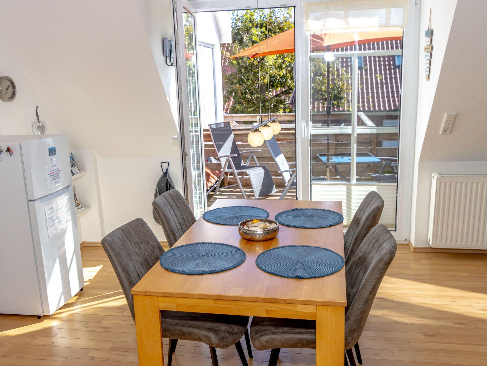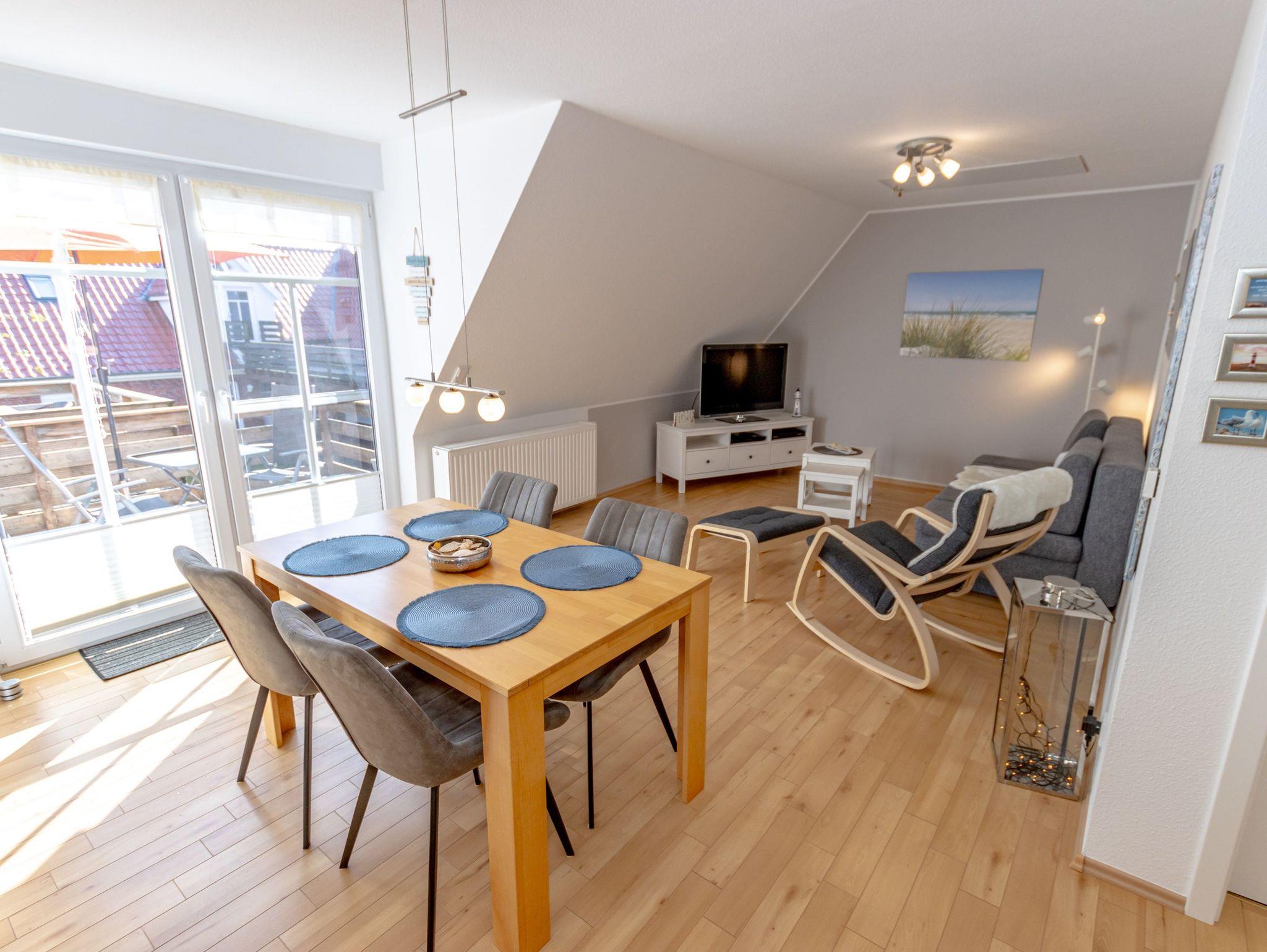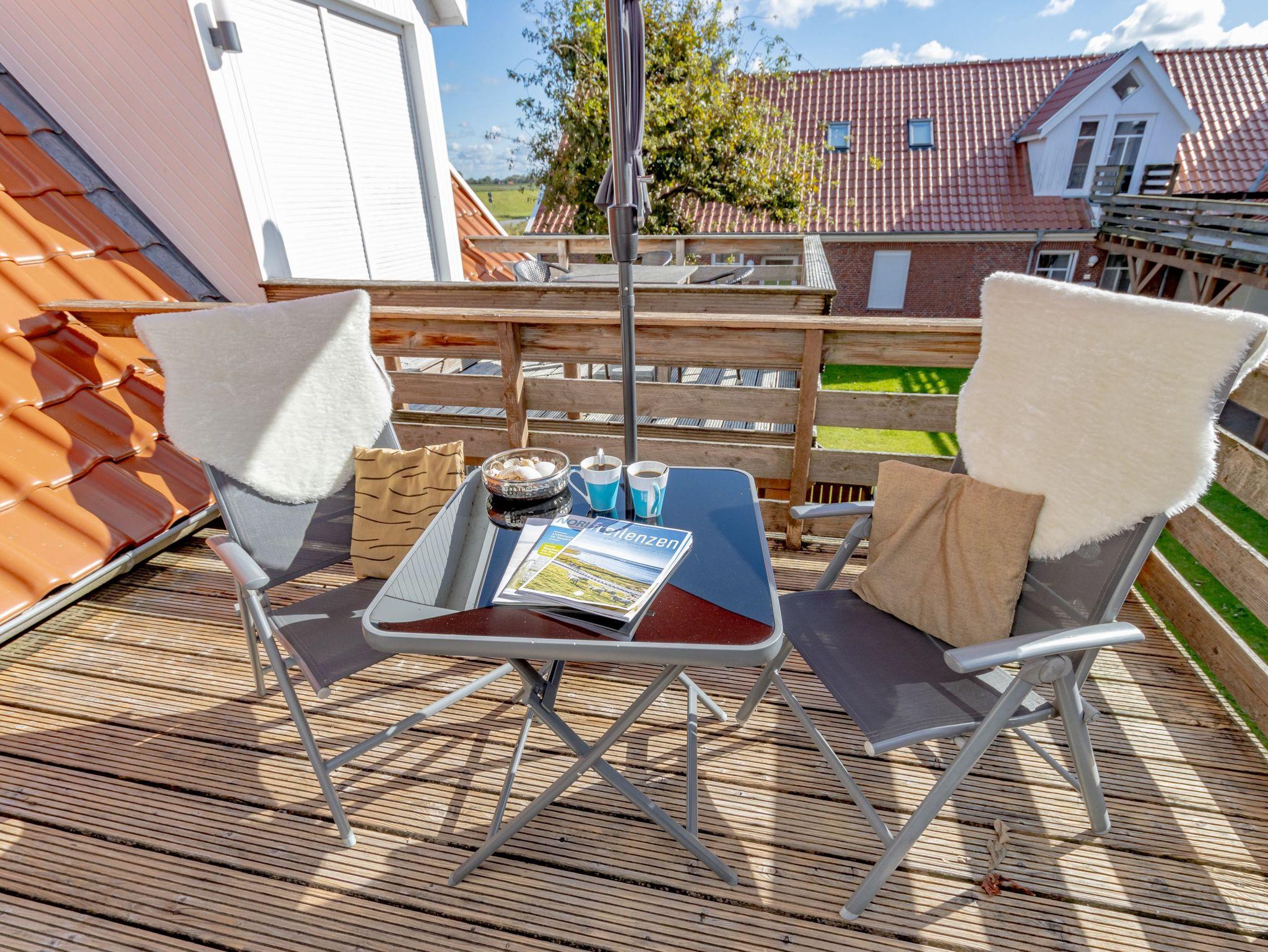 Charmante Ferienwohnung Deichnest in Dornumersiel mit Balkon und Deichblick, ideal für erholsame Tage an der Nordsee.