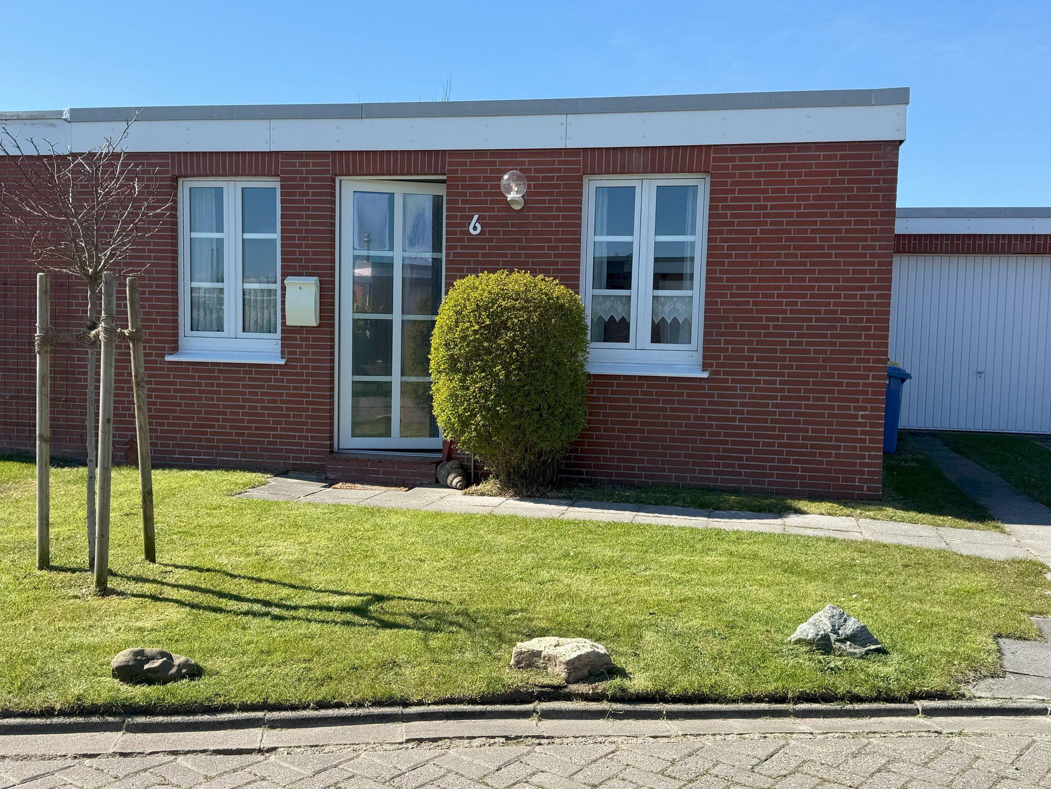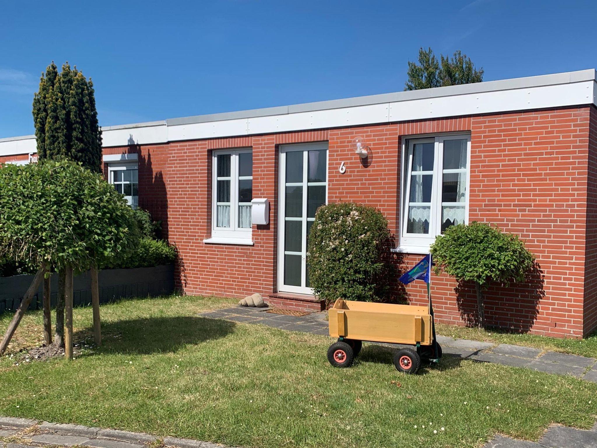 Gemütlicher Ferienbungalow in Dornumersiel mit Garten, Strandkorb und WLAN, ideal für einen entspannten Familienurlaub am Meer.