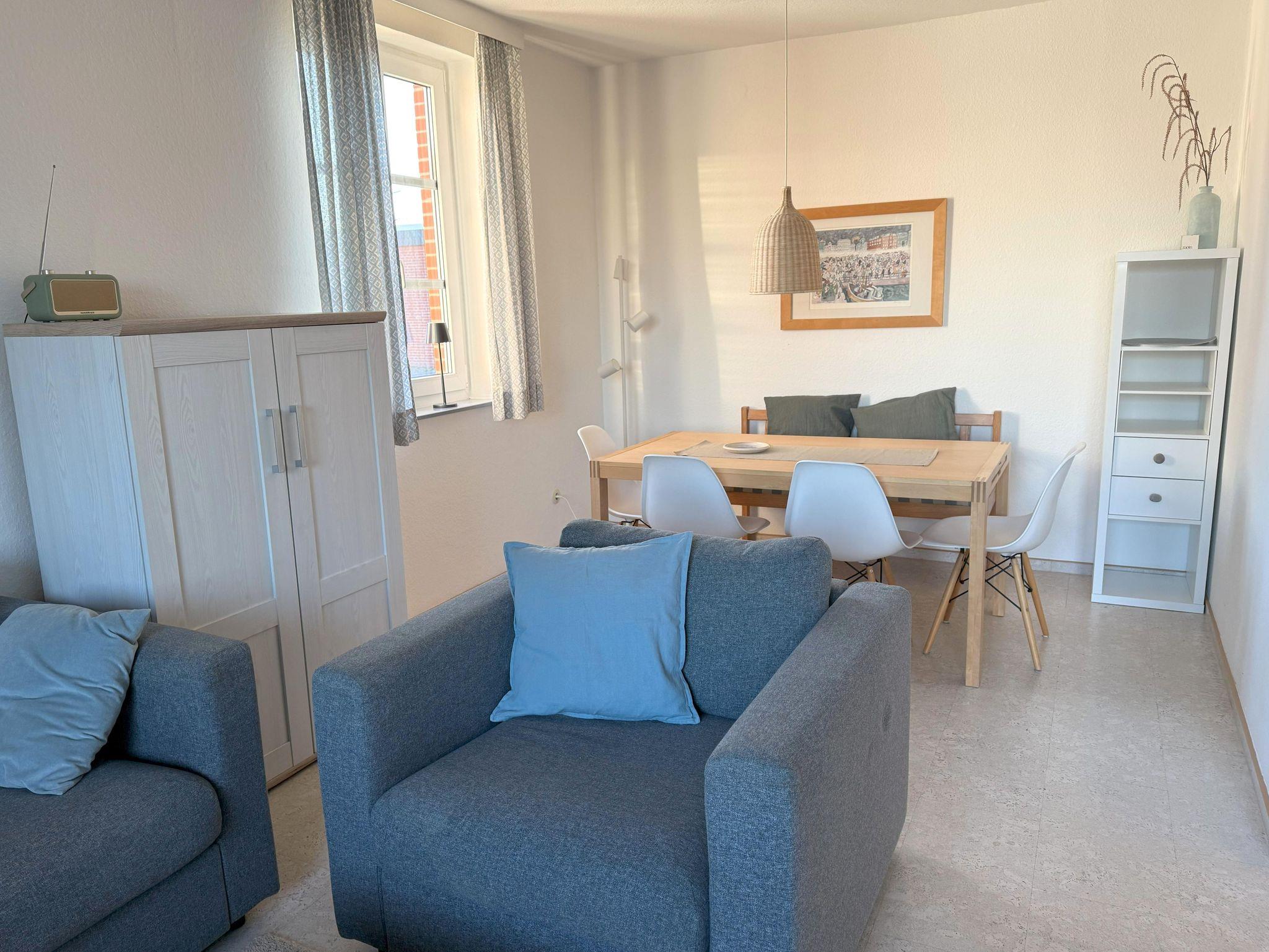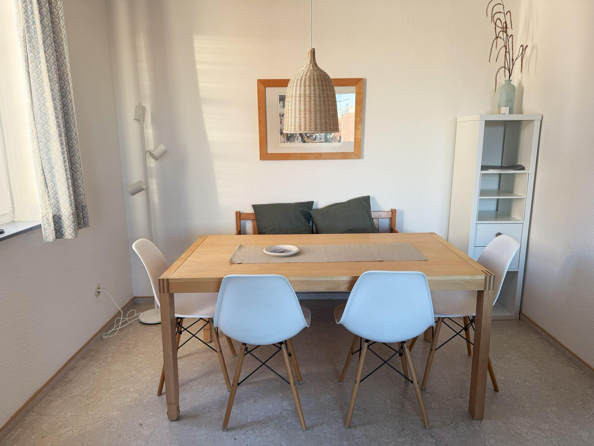 Auf 53m² bieten wir Ihnen eine separate Küche, welche neben allen wichtigen Utensilien auch über eine Senseo-Kaffeemaschine verfügt.Der Wohn-/ Essbereich ist mit einem Smart-TV, DVD-Player, DAB-Radio mit Bluetoothbox und CD-Player ausgestattet. Hierzu gehören natürlich auch DVD’s und CD’s. Bücher, Gesellschaftsspiele und Kinderspielsachen sind ebenfalls vorhanden. Die Unterkunft verfügt über einen Glasfaseranschluss mit leistungsstarkem WLAN, das kostenlos genutzt werden kann. Es gibt ein Elternschlafzimmer mit Doppelbett (200x200 cm), ein Kinderzimmer mit Etagenbett (2x 90x200 cm) und bei Bedarf ein Reisebett für Kleinkinder inklusive Matratze. Das Bad verfügt über Dusche/WC. Alle Räume sind hell und freundlich eingerichtet.