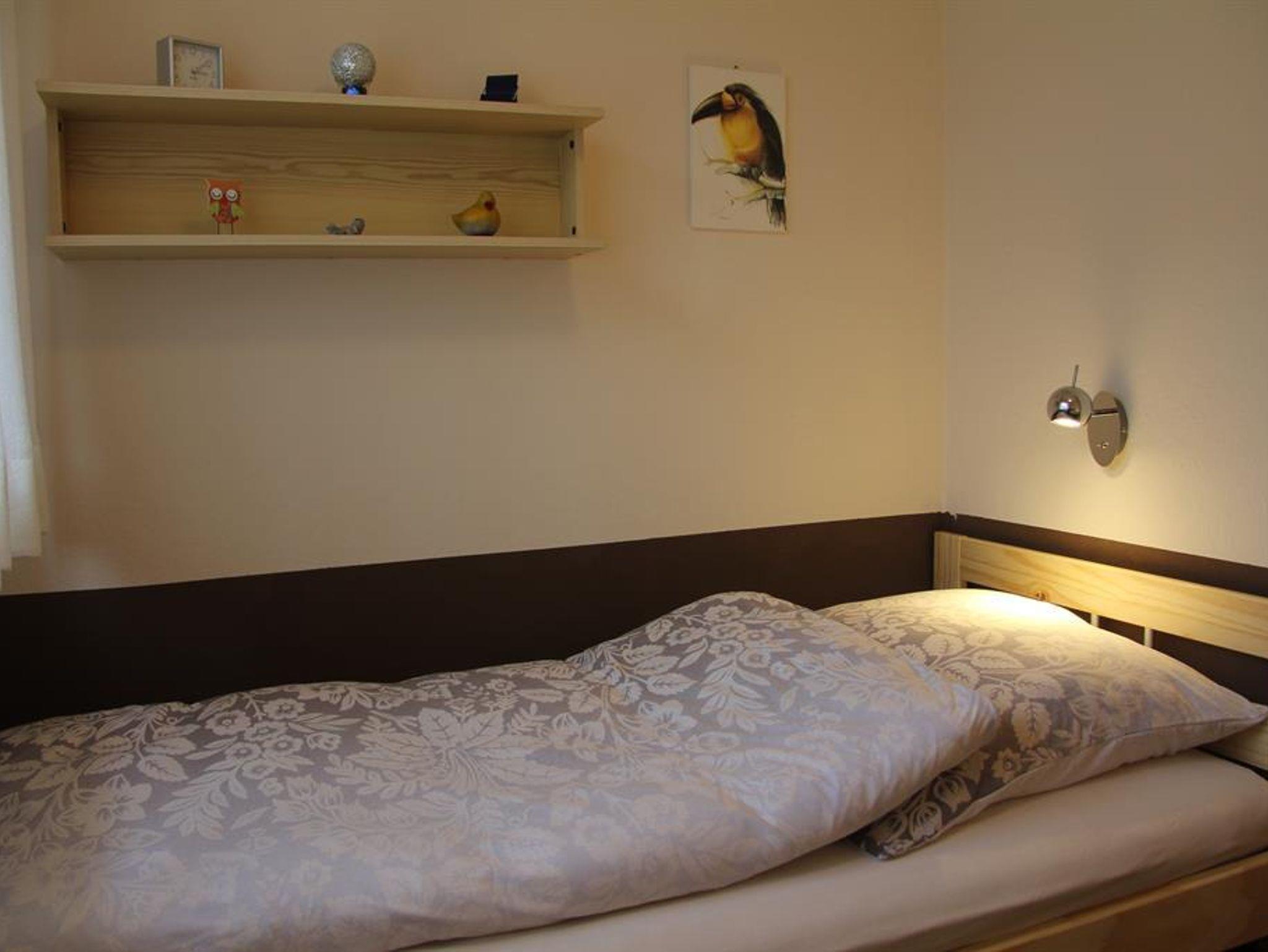 Als Schlafmöglichkeiten erwarten Sie ein Doppelzimmer mit einem Boxpringbett (1,80 x 2,00 m) sowie ein Kinderzimmer mit zwei Einzelbetten ( 80 x 1,90 m). Das Bad ist mit DU/WC ausgestattet.