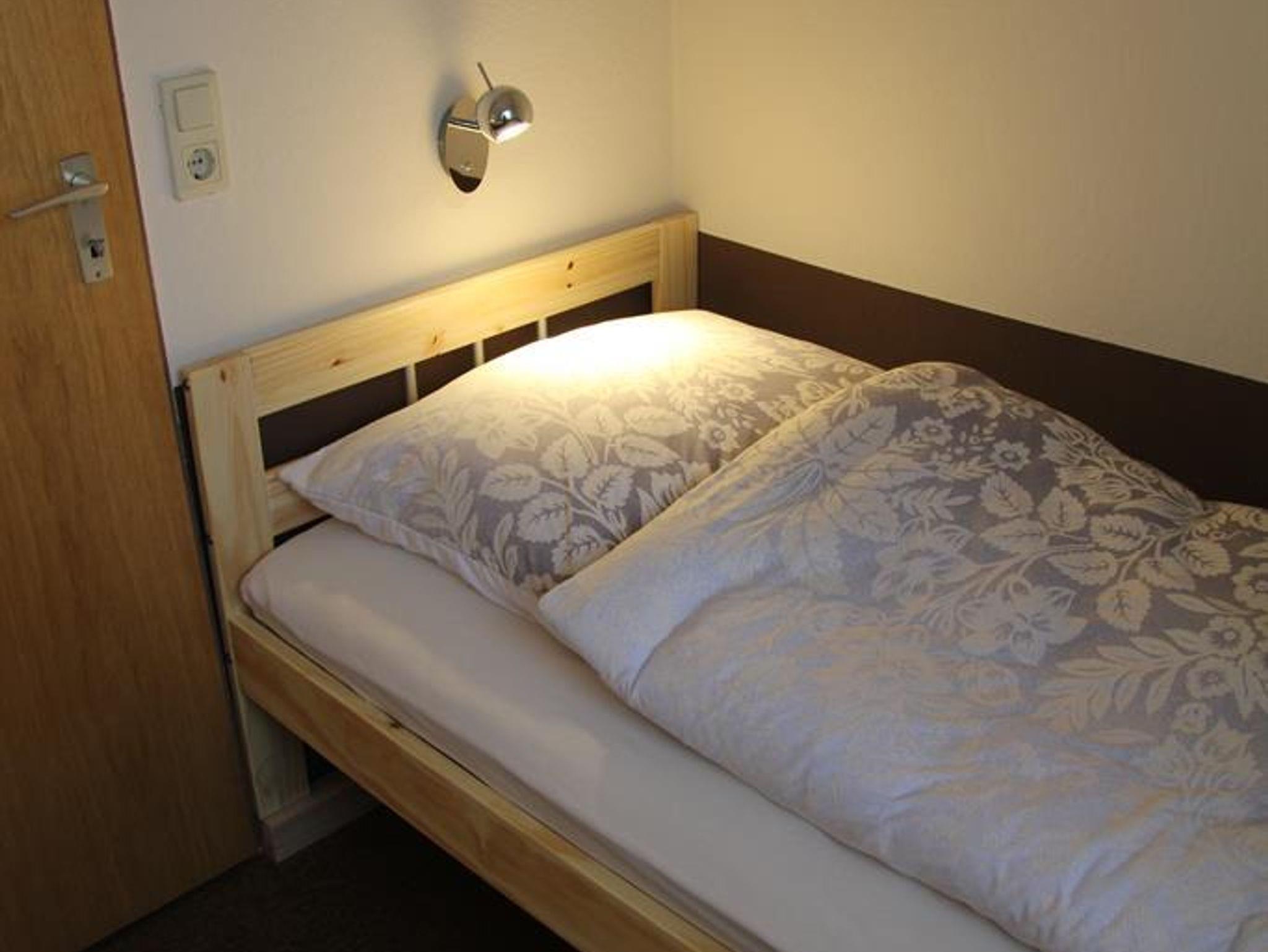 Als Schlafmöglichkeiten erwarten Sie ein Doppelzimmer mit einem Boxpringbett (1,80 x 2,00 m) sowie ein Zweibettzimmer. Das Bad ist mit DU/WC ausgestattet.