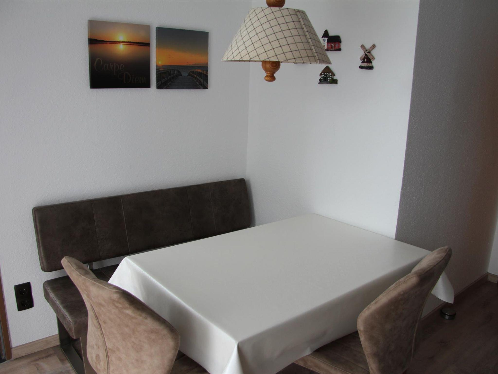 Die ebenerdige Ferienwohnung hat einen großen Wohn- und Essbereich mit Sat-TV und Radio mit separater Küche. Alle Fenster sind Außen- Rolläden ausgestattet.