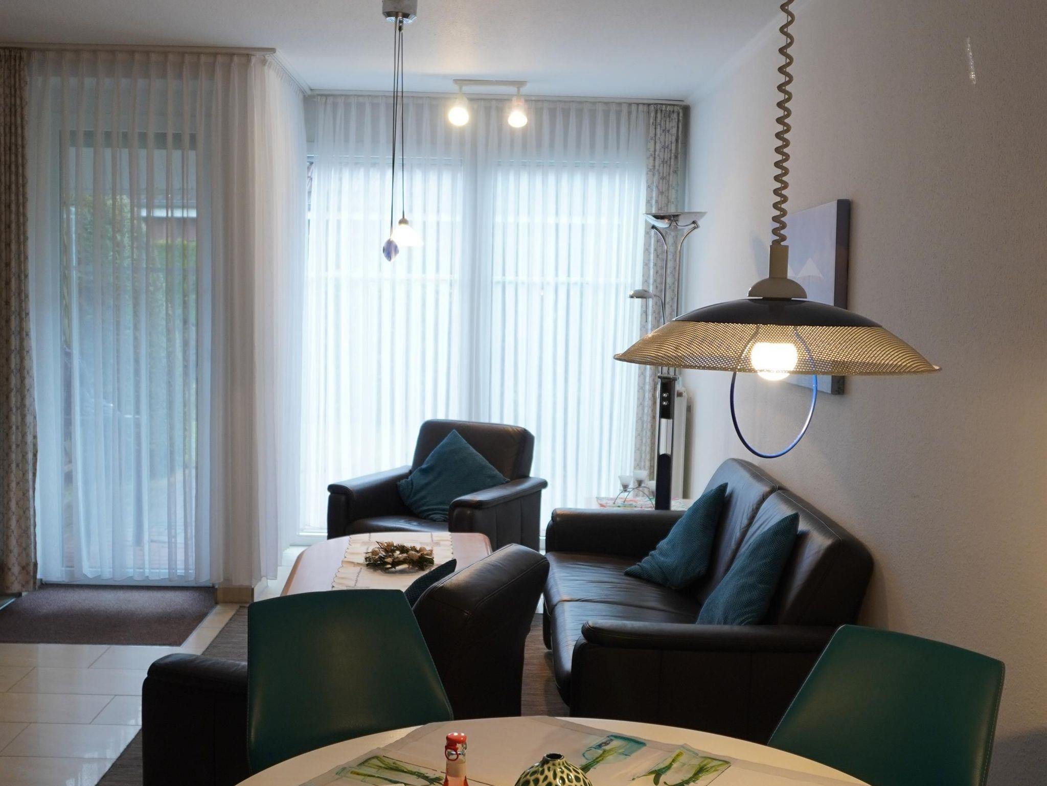 Unsere Ferienunterkunft ist mit *** Sternen klassifiziert und bietet Ihnen eine wohnliche Gesamtausstattung mit gutem Komfort. Auf ca. 75 m² erwarten Sie ein geräumiges Wohnzimmer und eine komplett ausgestattete, separate Küche mit Spülmaschine und weiteren diversen elektrische Geräten. Zwei Schlafzimmer (Doppel- u. Zweibettzimmer), ein Bad mit Dusche und WC sowie ein separates Gäste-WC finden Sie ebenfalls im Erdgeschoss. Für unsere kleinen Gäste bieten wir ein Reisebettchen und ein Kinderhochstuhl. Außerdem ist eine Waschmaschine vorhanden.