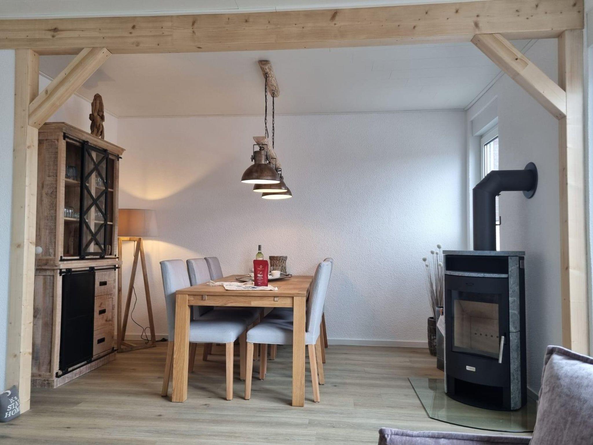 Treten Sie ein und lassen Sie sich vom angenehmen Ambiente unseres Ferienhauses verzaubern. Auf ca. 110 m² erwarten Sie ein gemütlich eingerichteter Wohn-/Essbereich mit Kamin. Sie separate Küche ist komplett ausgestattet und lässt keine Wünsche offen. Als Schlafdomizil werden Sie drei Schlafzimmer vorfinden 2 mit einem Doppelbett (180 x 200 cm und 160 x 200 cm) sowie ein weiteres mit 2 Einzelbetten (80 x 200 cm) vorfinden. Auf Wunsch sind Ihre betten bereits bei Anreise bezogen. Zwei Badezimmer sind jeweils mit bodengleichen Duschen versehen und sind somit altersgerecht und barrierefrei. Für unsere kleinen Gäste halten wir ein Reisebett sowie ein Kinderhochstuhl vor. Für gesellige Stunden werden Sie verschiedene Spiele vorfinden. Fernseher im Wohn- und Schlafbereich runden das Angebot unseres Hauses ab.