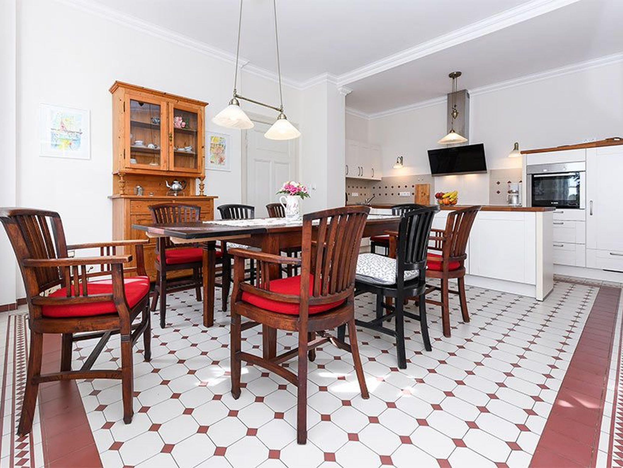Größe ca. 115 Quadratmeter, Wohnzimmer, zweites Wohnzimmer, Küche mit räumlich abgeteiltem Esszimmer, Küche mit geräumiger Esstisch-Gruppe, Schlafzimmer, zweites separates Schlafzimmer, drittes separates Schlafzimmer, viertes separates Schlafzimmer, Badezimmer mit Badewanne, Dusche, Waschtisch und WC, zweites Badezimmer mit Badewanne, Dusche, Waschtisch und WC, Erdgeschoss, Obergeschoss, zwei Terrassen, Parkplatz am Haus, Koffer-/Abstellraum, Hauswirtschaftsraum, optimal für 2 bis 8 Personen und zusätzlich ein Kleinkind.