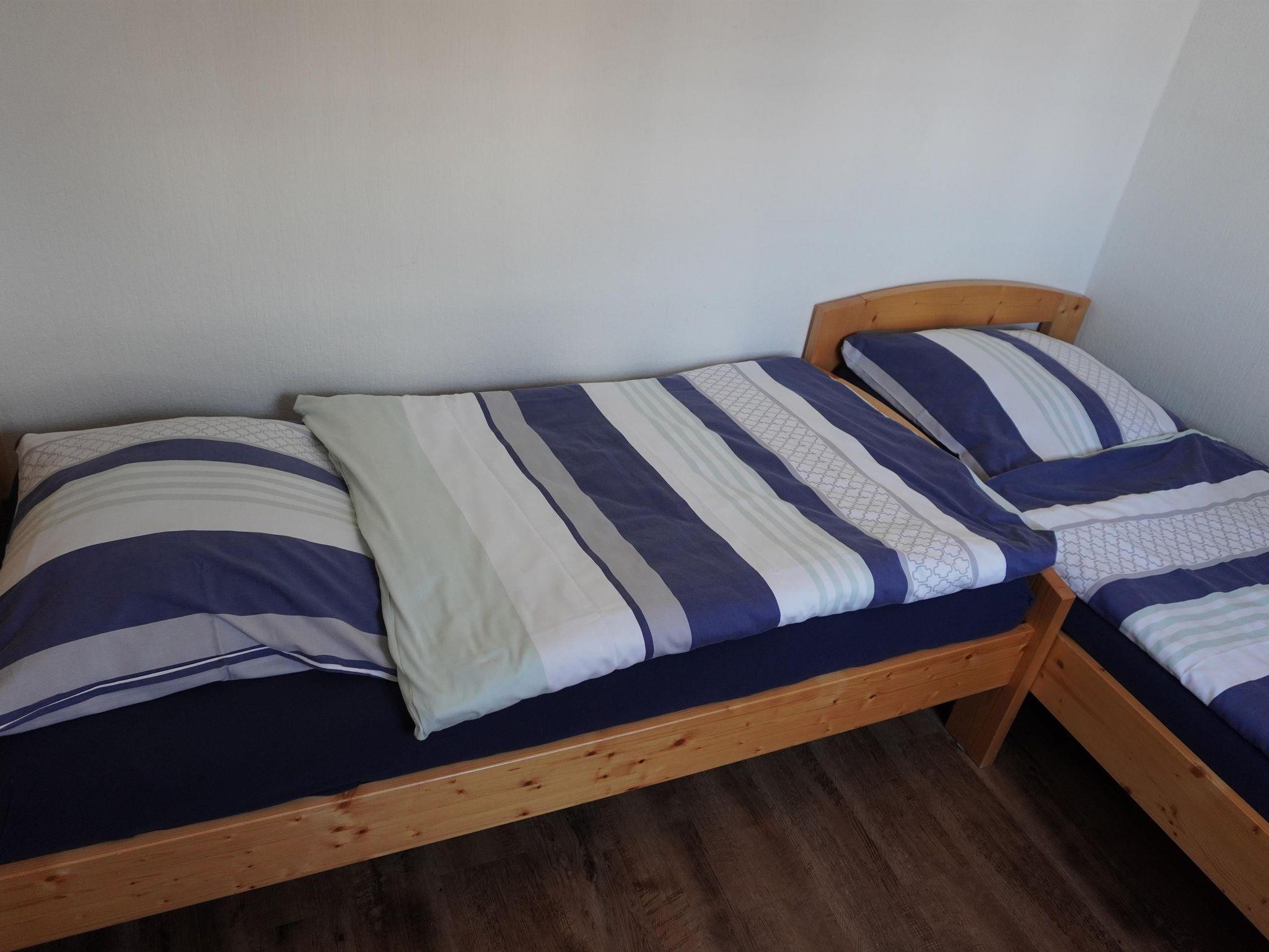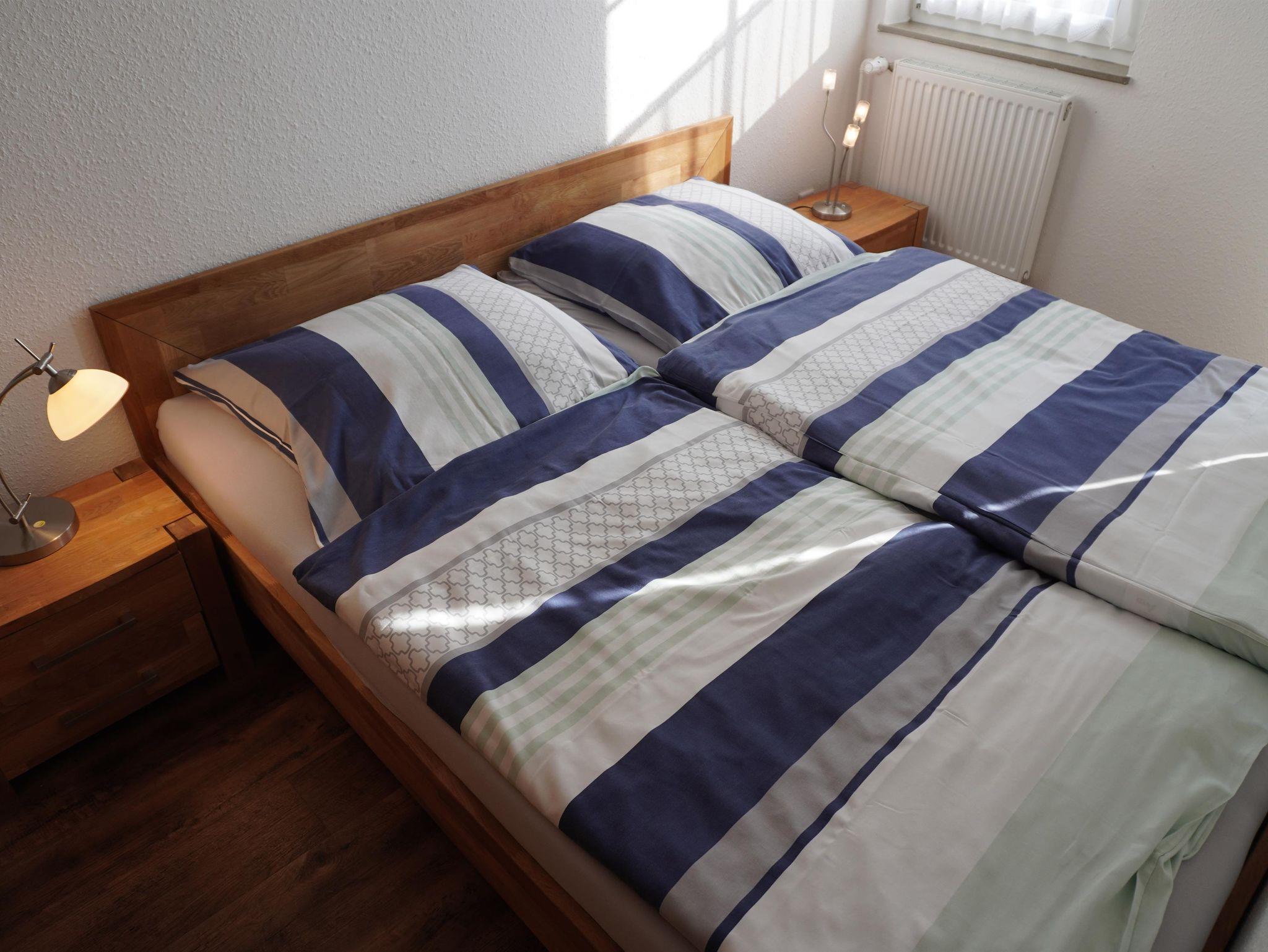 Zum stilvoll ausgestatteten Bungalow gehören zwei Schlafzimmer, eines mit Doppelbett und eines mit zwei Einzelbetten. Das helle und freundliche Bad ist ausgestattet mit Dusche und WC. Der kombinierte Wohn- und Essbereich ist gemütlich eingerichtet, hat einen Parkettboden und bietet Platz für vier Personen. Die separate, moderne Küche (Geschirrspüler, Backofen, Mikrowelle) ist mit nützlichen elektrischen Kleingeräten wie Toaster, Wasserkocher und Mixer ausgestattet. Die Waschmaschine und den Wäschetrockner finden Sie in der angrenzenden Garage und stehen Ihnen kostenfrei zur Verfügung.