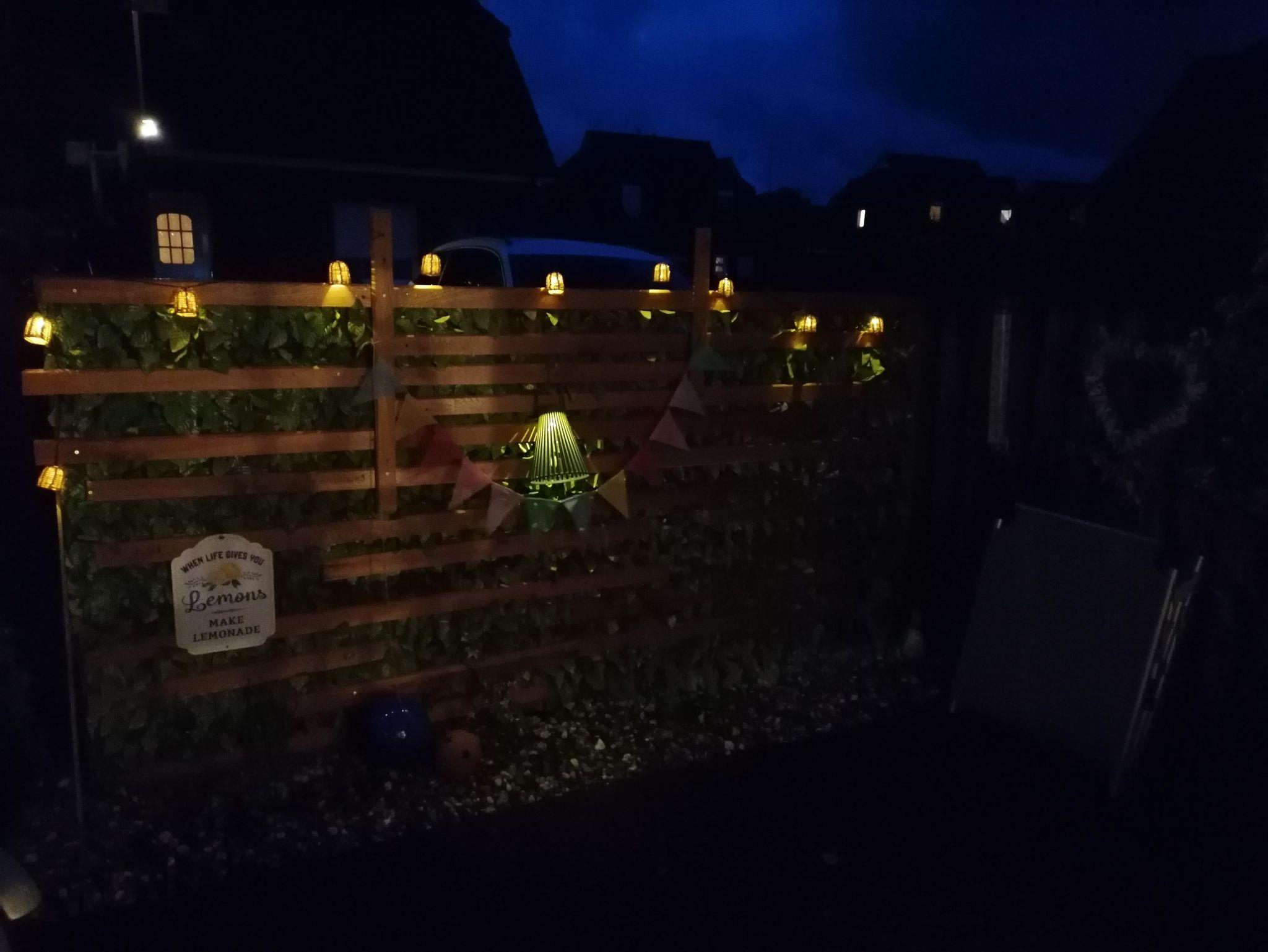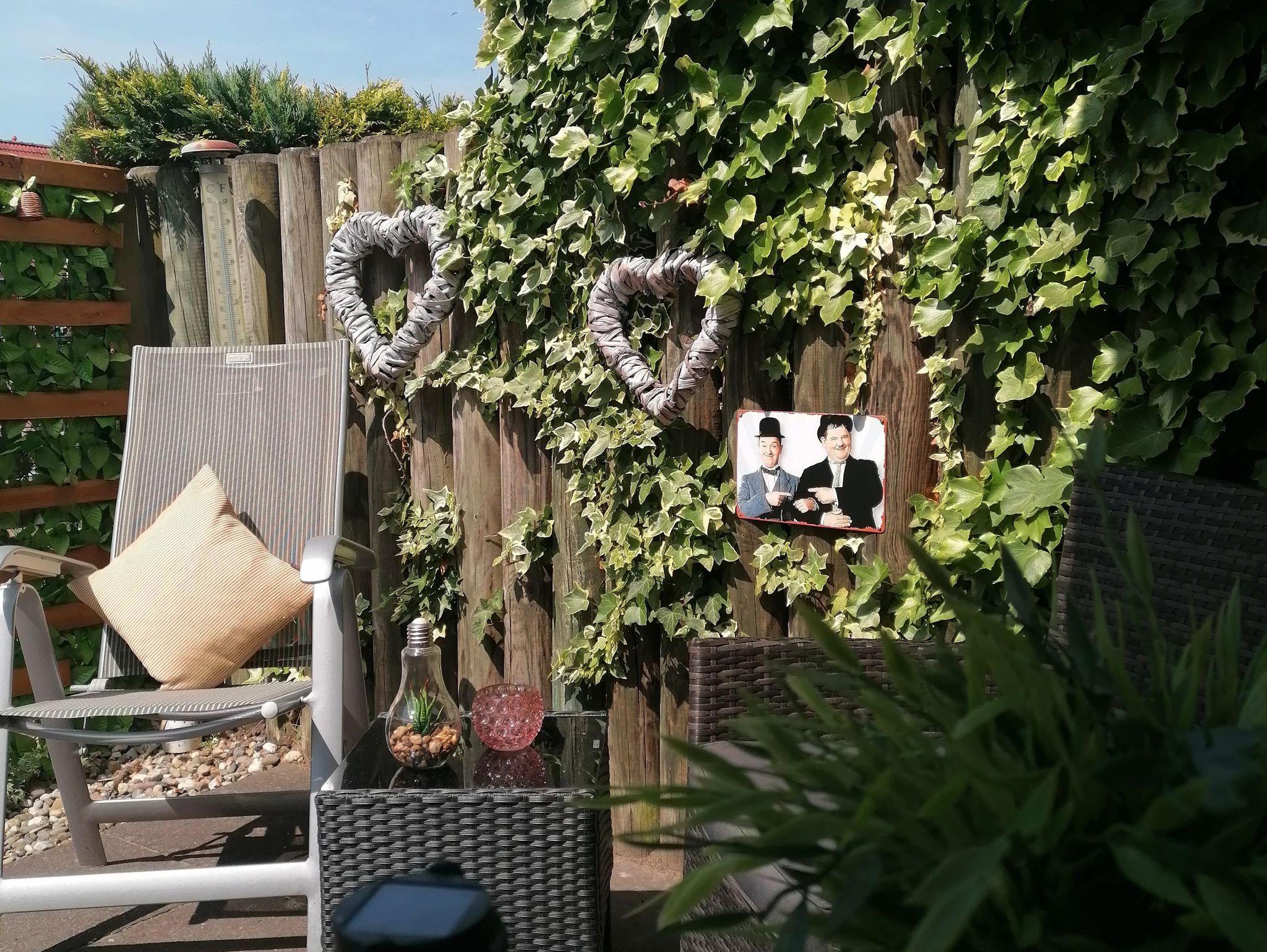 Für entspannte Abende auf der Terrasse sorgen Lichterketten und Solarlampen – der perfekte Ort für ein Glas Wein unter freiem Himmel.