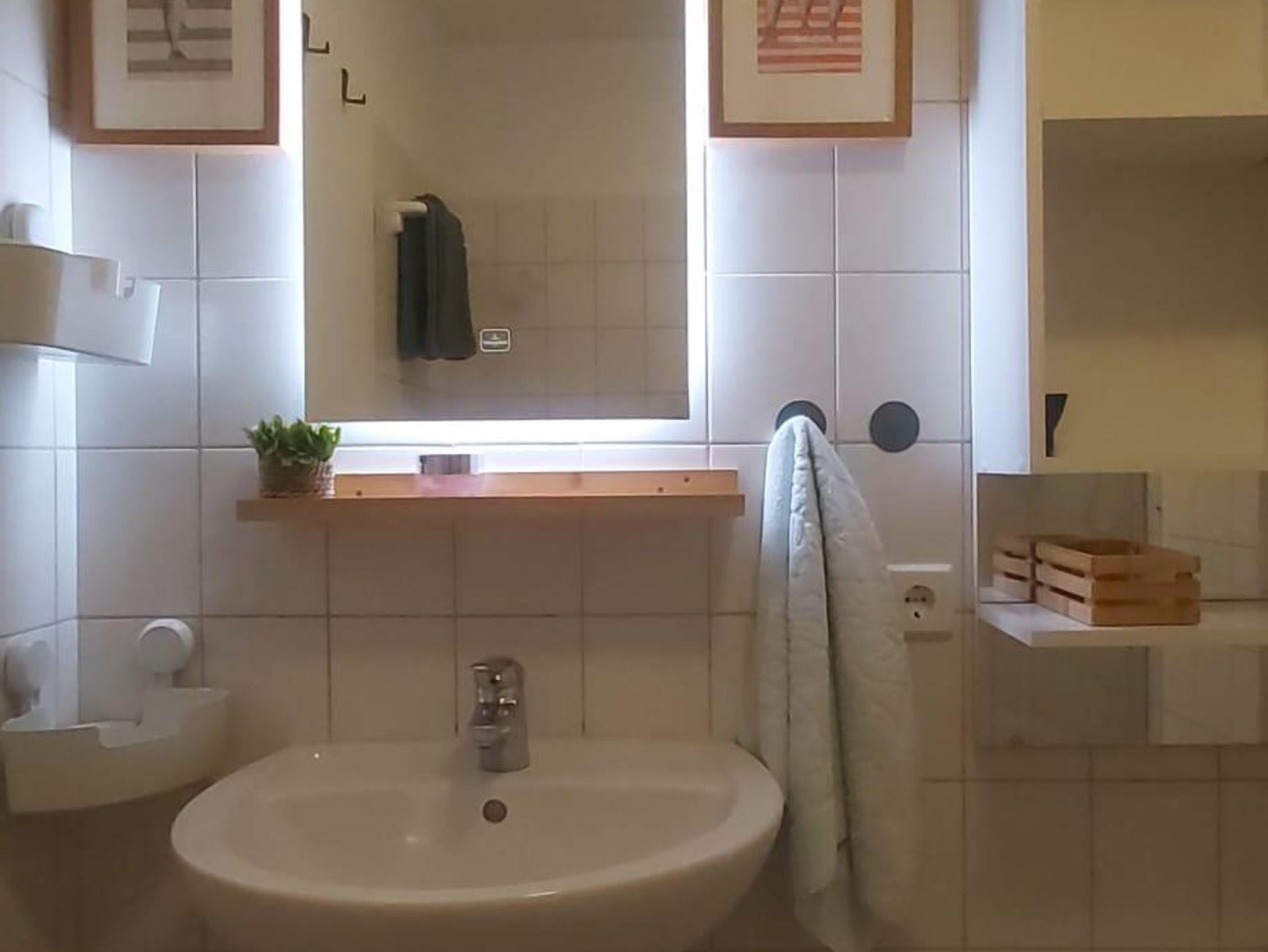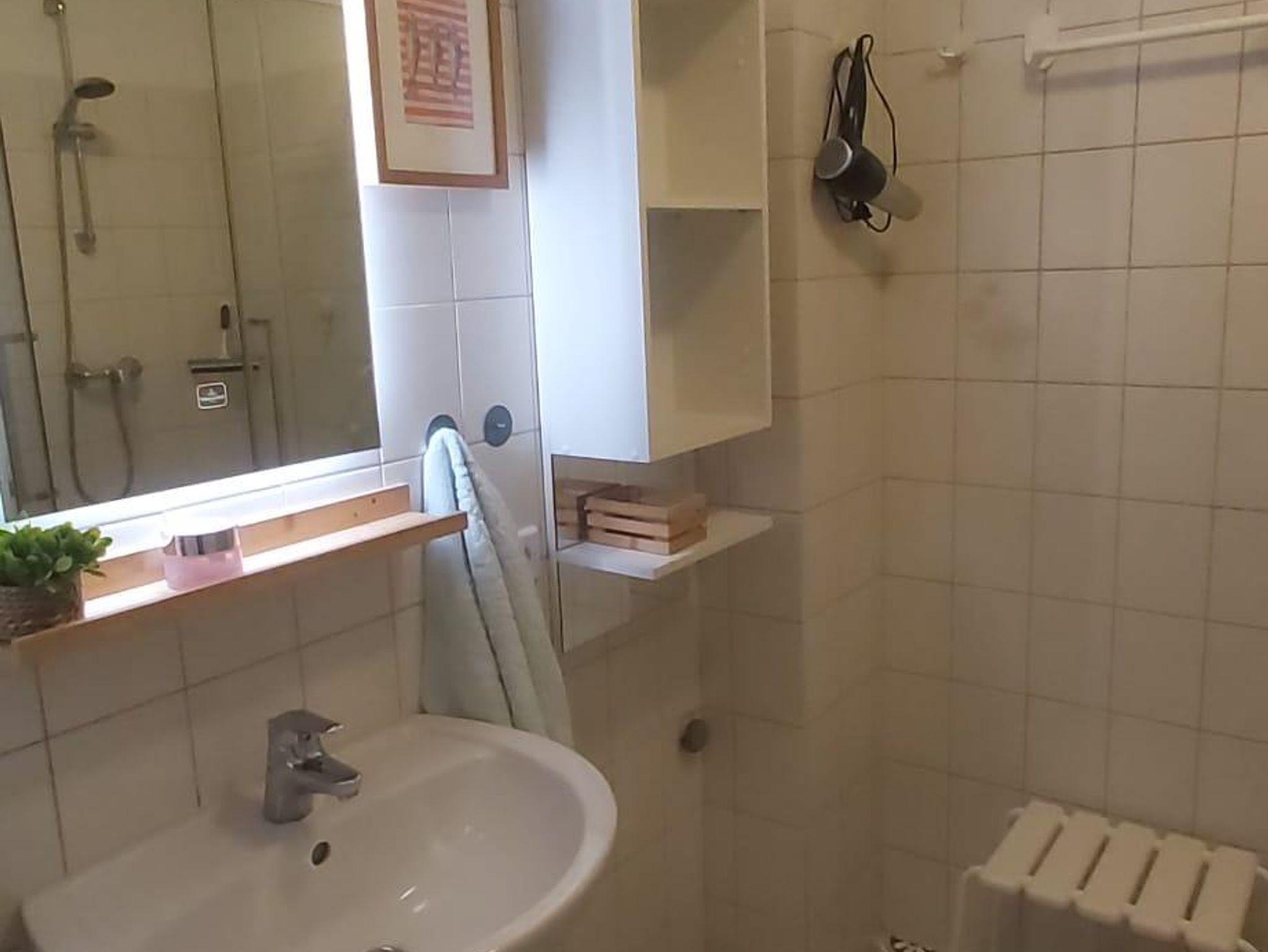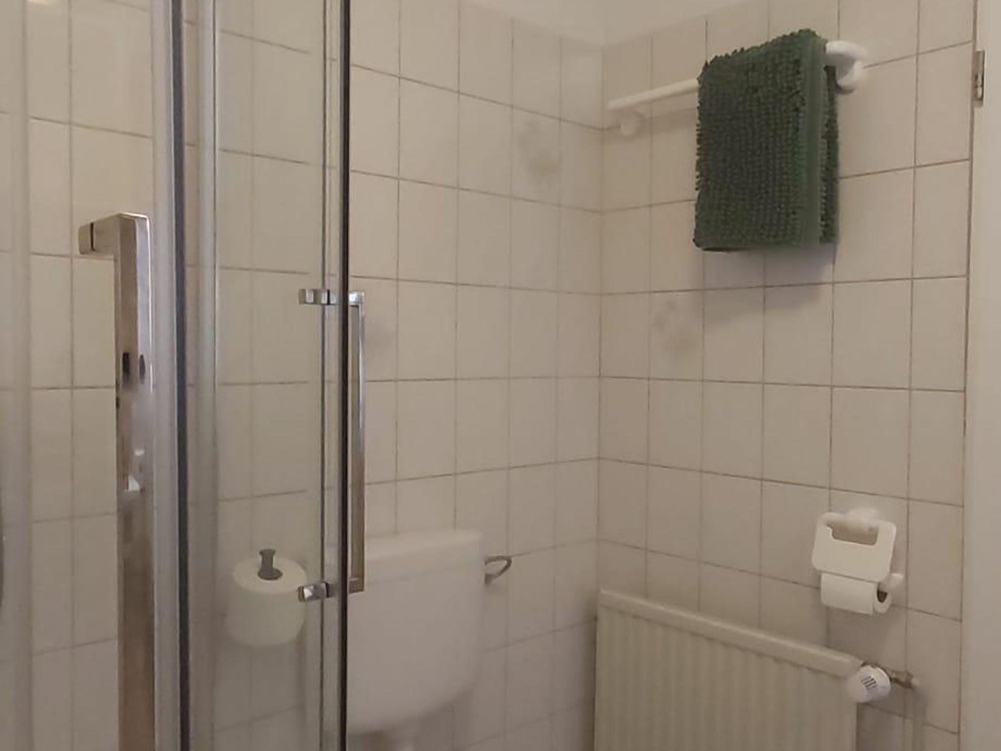 Nach einer erholsamen Nacht im bequemen Doppelbett (190x200 cm) erwartet Sie ein hübsches Bad mit Echtglasdusche. Der Einstieg ist niedrig, für zusätzlichen Komfort steht ein Duschstuhl bereit.