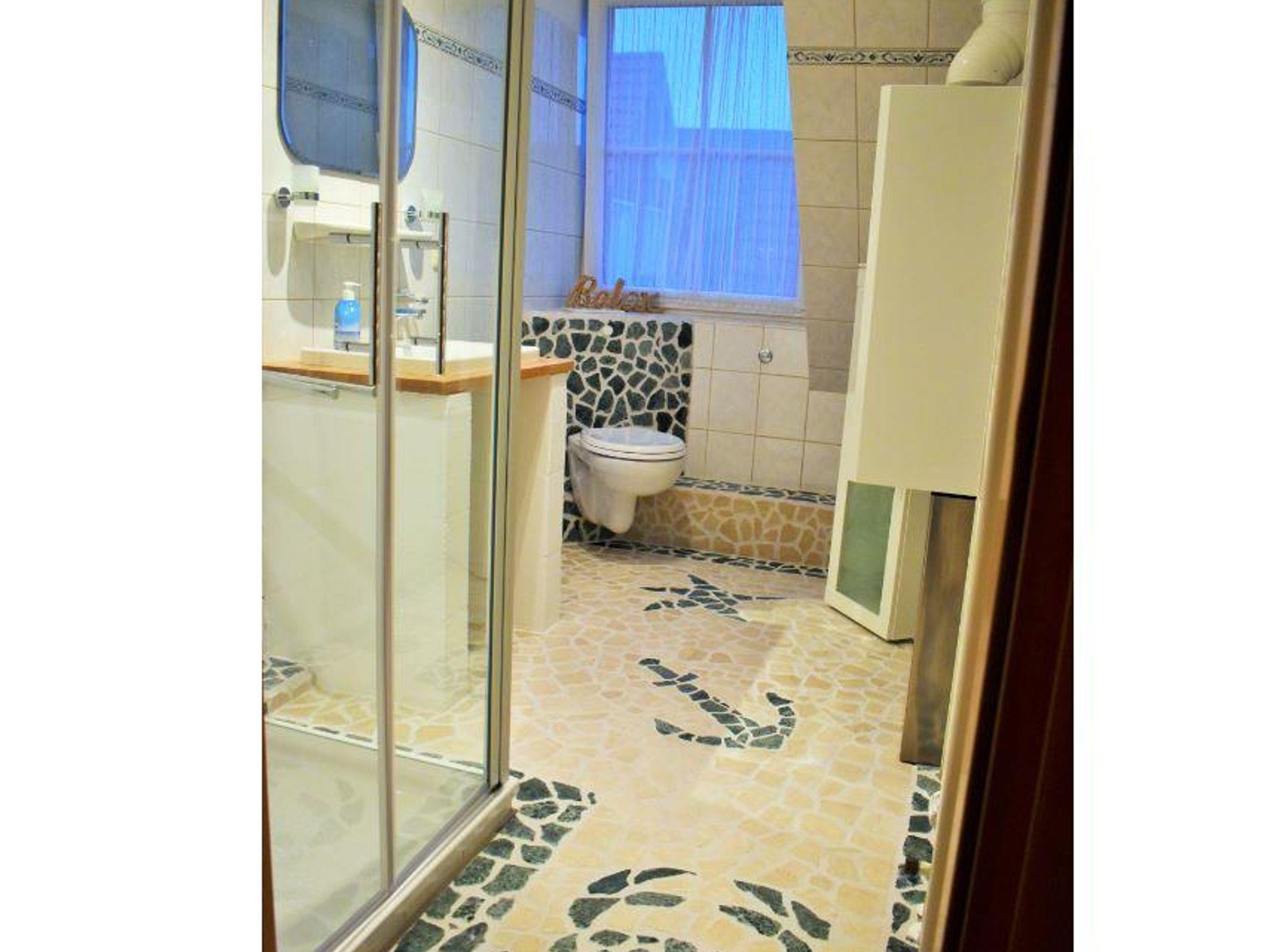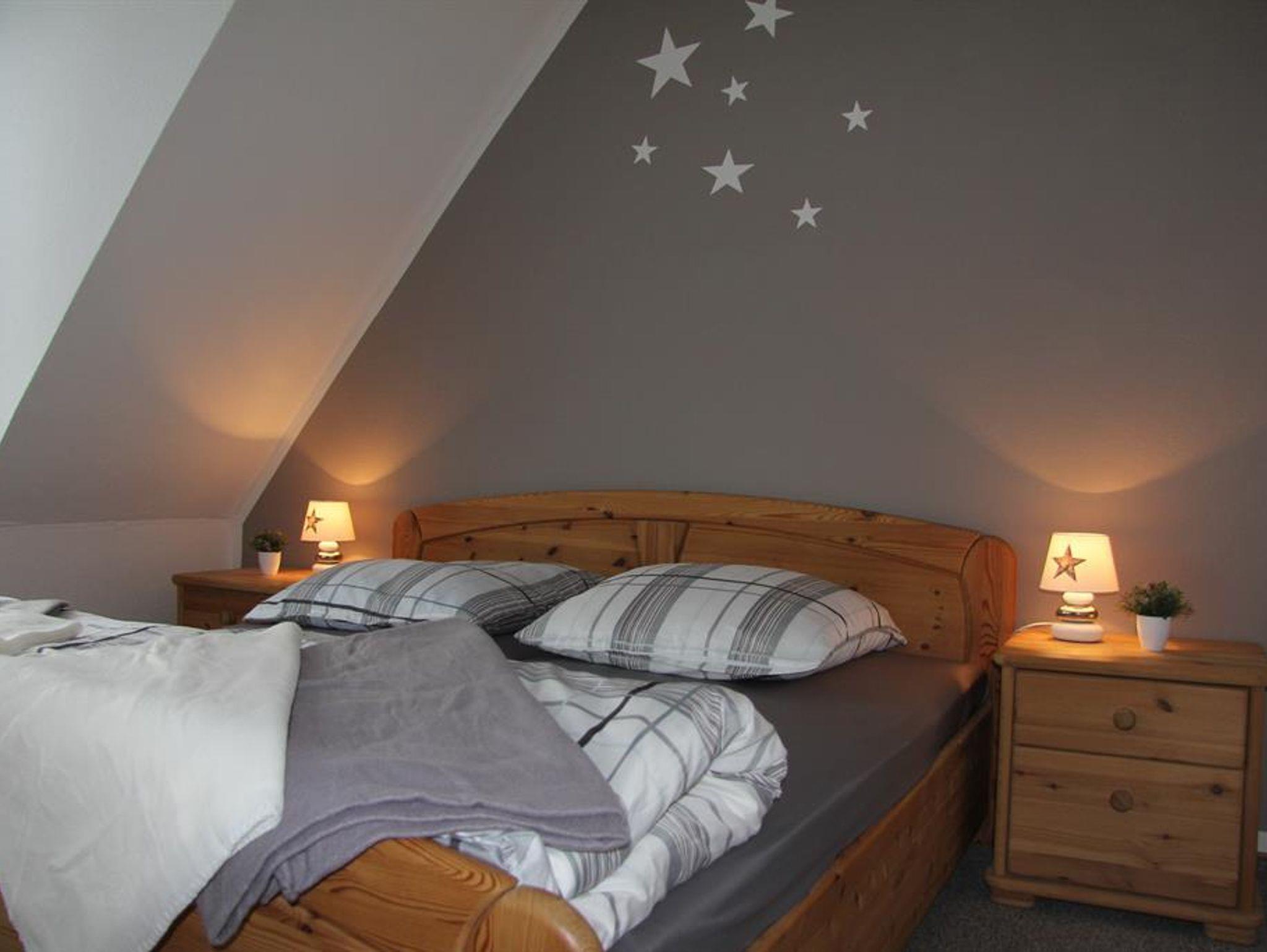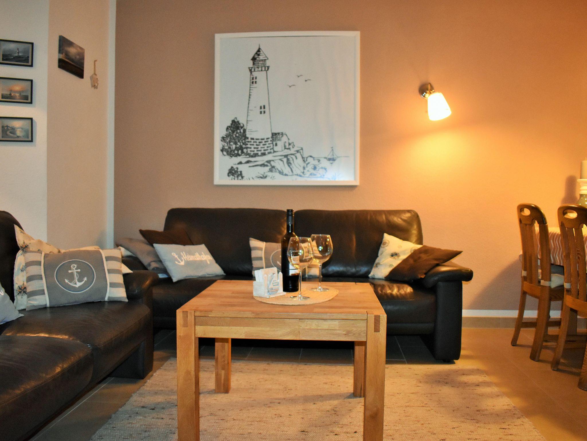 Im Erdgeschoss unserer Unterkunft befinden sich der Wohnbereich, die Küche und ein Gäste-WC. Das lichtdurchflutete Wohnzimmer verfügt neben der Couch, dem Essbereich, dem Fernseher auch über einen DVD-Player, einer Stereoanlage und einer X-Box. Einige Filme, Spiele und Bücher sind auch vorhanden. Die Küche ist komplett ausgestattet und hat eine Filter- und eine Pad-Kaffeemaschine. Im Obergeschoss befinden sich die Schlafzimmer und das Badezimmer. Ein Schlafzimmer besteht aus einem Doppelbett, Kleiderschrank und einem Kinderbett (bis 3 Jahre). Das andere Schlafzimmer aus zwei Einzelbetten und einem Kleiderschrank. Das Badezimmer hat eine Dusche sowie ein WC, Waschbecken, Spiegel und Fön. Unsere Waschmaschine kann auch gerne mitgenutzt werden.