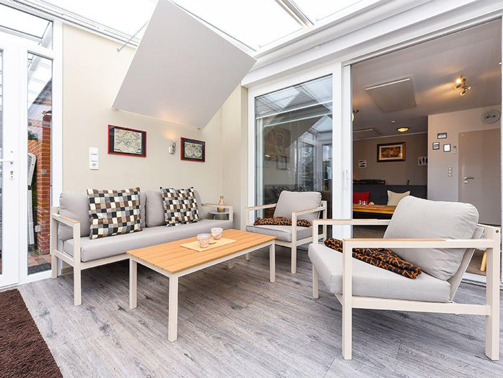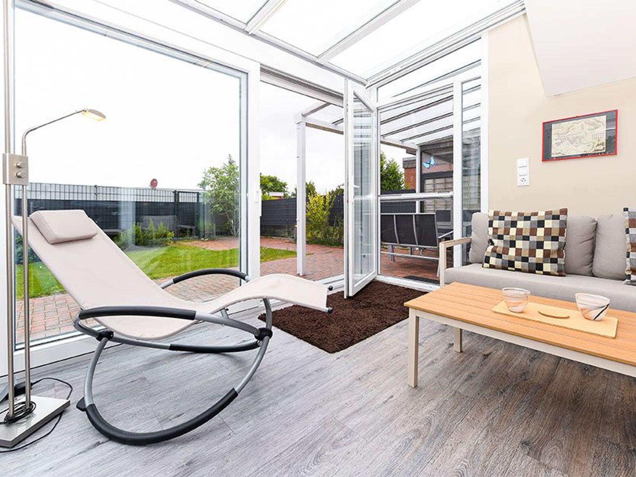 Das geräumige Ferienhaus ist ungefähr 90 Quadratmeter groß (In der Angabe zur Größe der Wohnung ist der 13 Quadratmeter große Wintergarten enthalten, ebenfalls sind die vier Terrassen (eine davon überdacht) zur Hälfte ihrer Größe berücksichtigt.) und es gibt zwei Schlafzimmer. Das Ferienhaus „Watt'n Huus“ ist damit optimal geeignet für zwei bis sechs Personen. Das Ferienhaus ist modern-gemütlich eingerichtet und gestaltet.
