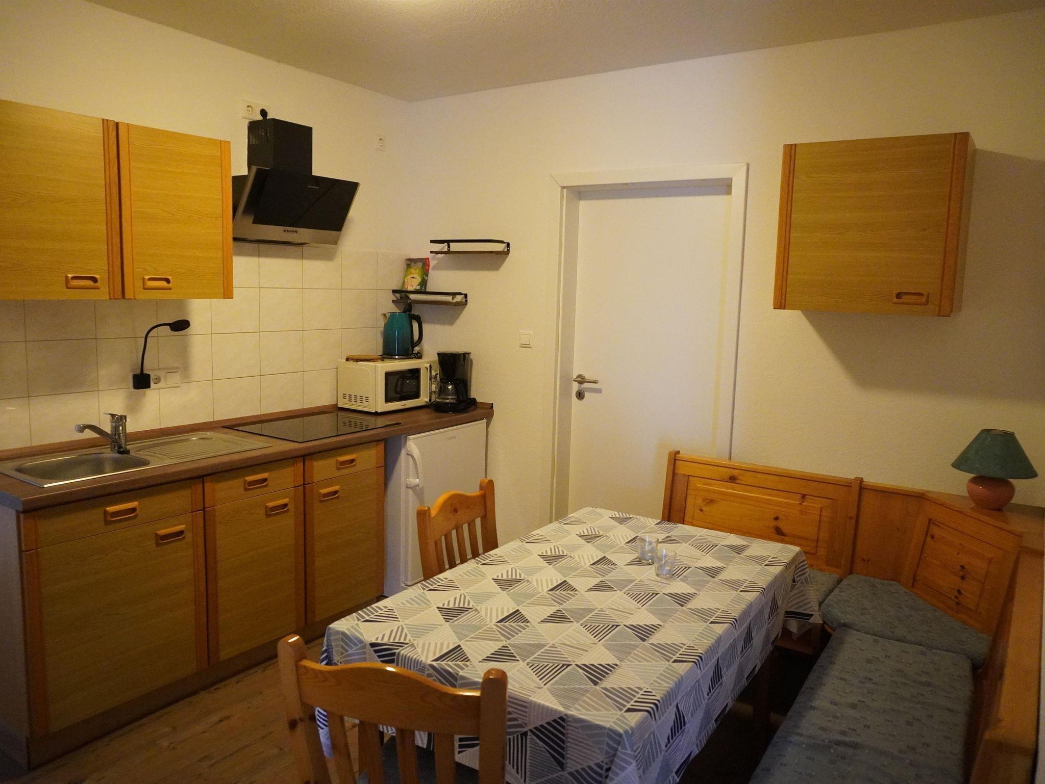 Ferienwohnung Baben befindet sich im Obergeschoss. Sie bietet Ihnen, auf einer Wohnfläche von ca. 60m², ausreichend Platz um einen herrlichen Urlaub zu erleben. Es erwartet Sie ein Wohn-/Essbereich mit integrierter Küchenzeile, 2 Schlafzimmer, wovon eines mit einem Doppel- und das Weitere mit einem Einzelbett (jeweils mit Steppdecken) versehen ist, sowie ein Bad mit Waschmaschine, Dusche und WC. Unseren kleinen Gästen bieten wir ein Reisebett und einen Kinderhochstuhl. Überall CV-Belag (keine Teppiche). Hier ist kein Hund erlaubt.