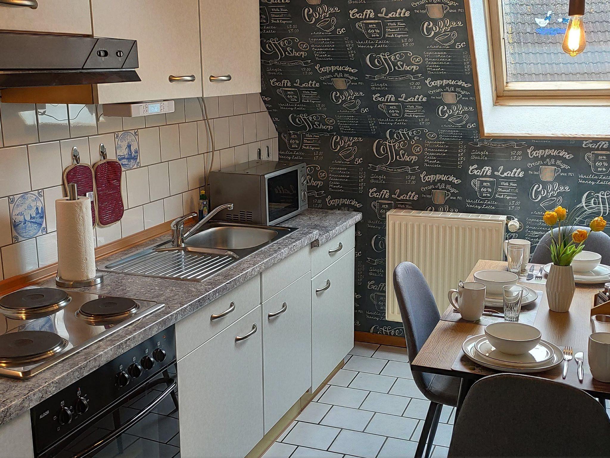Gemütliche Ferienwohnung West im Gästehaus Zur alten Post in Dornumersiel mit Garten und voll ausgestatteter Küche.
