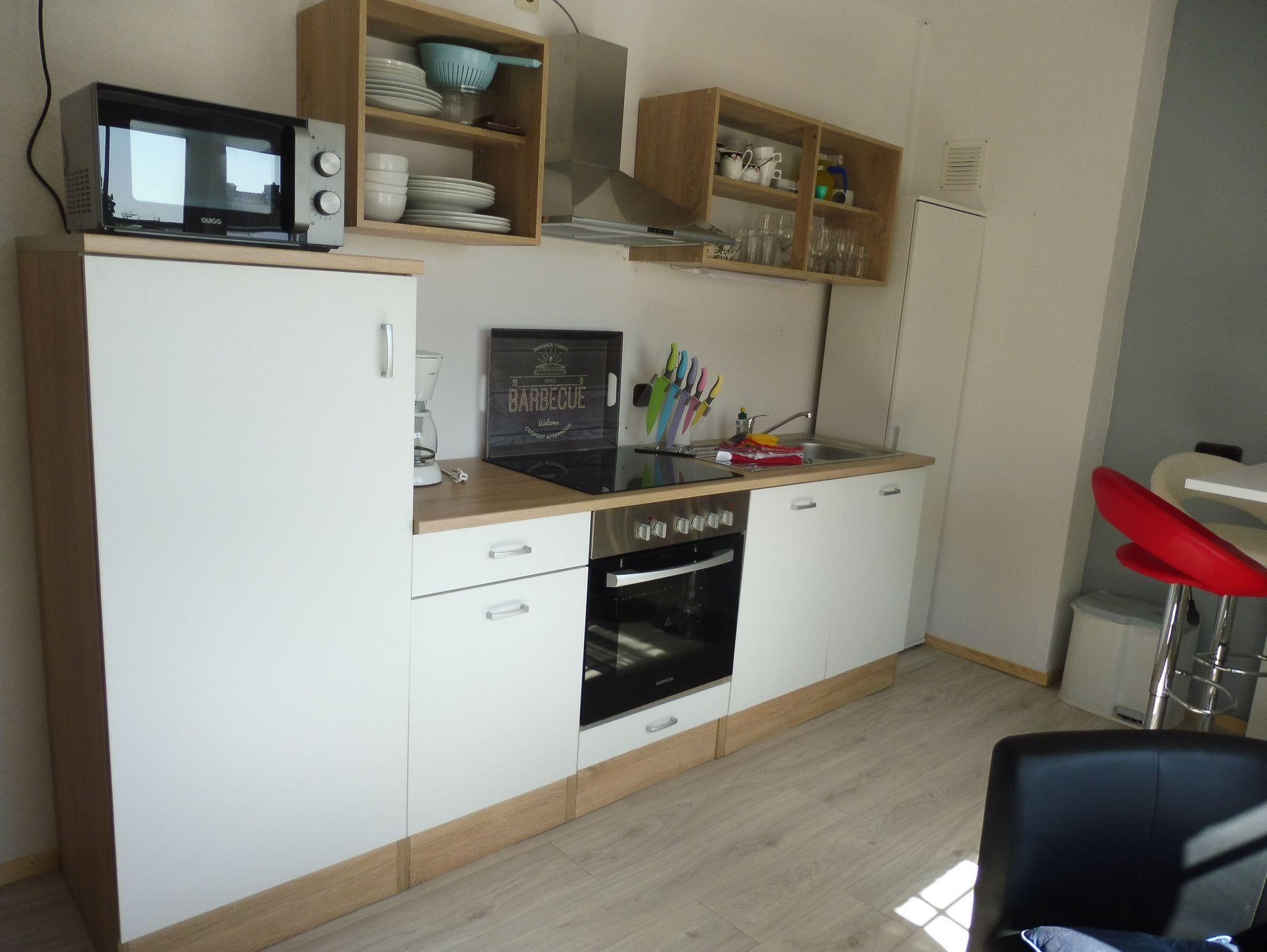 üblichen Küchenutensilien. Flatscreen-Sat-TV, Eßbar mit 4