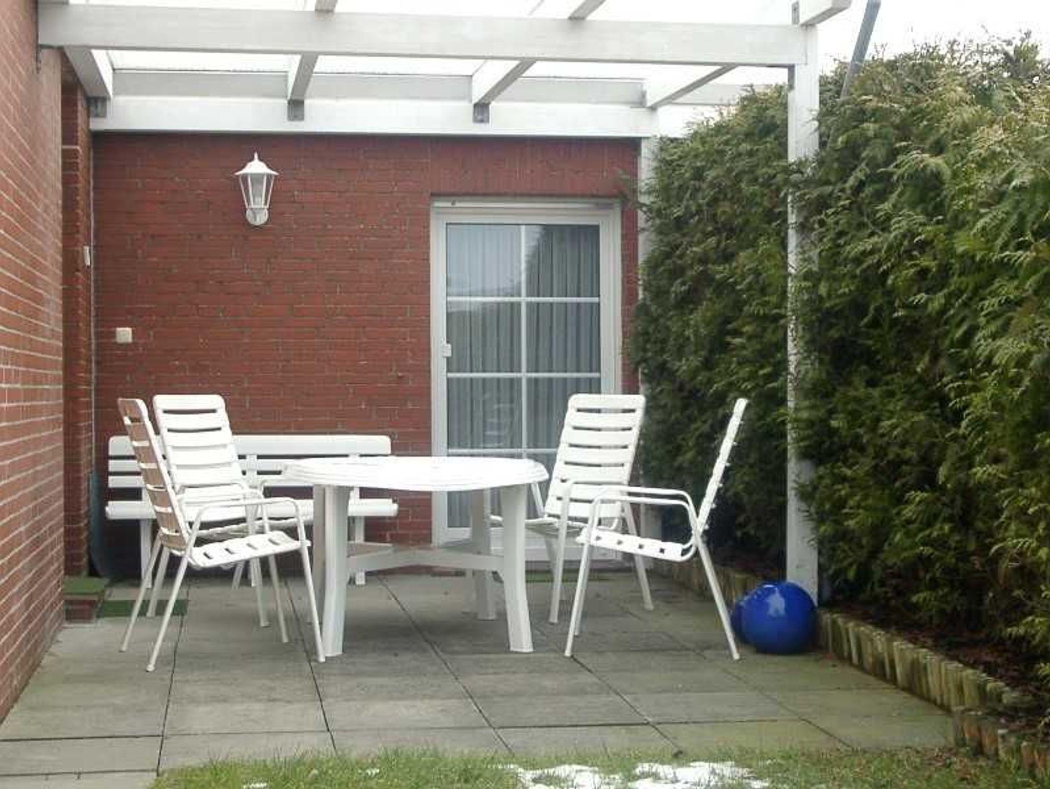 Moderner Ferienbungalow in Dornumersiel mit eingezäuntem Garten und direktem Zugang zur Terrasse, nur fünf Minuten vom Strand entfernt.
