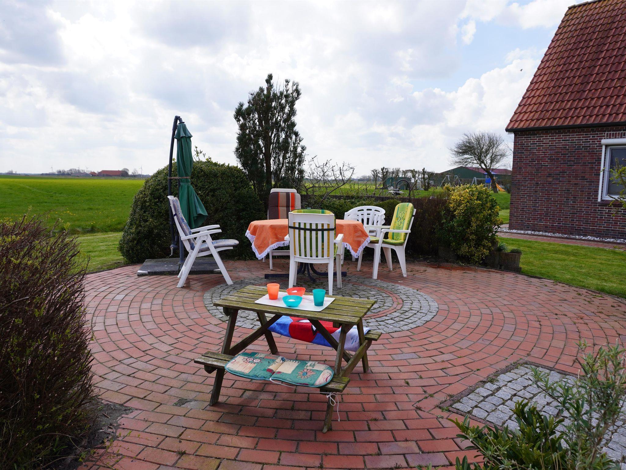 Gemütliche Ferienwohnung in Neßmersiel mit Garten, Terrasse und Spielplatz für Familien und Haustiere.