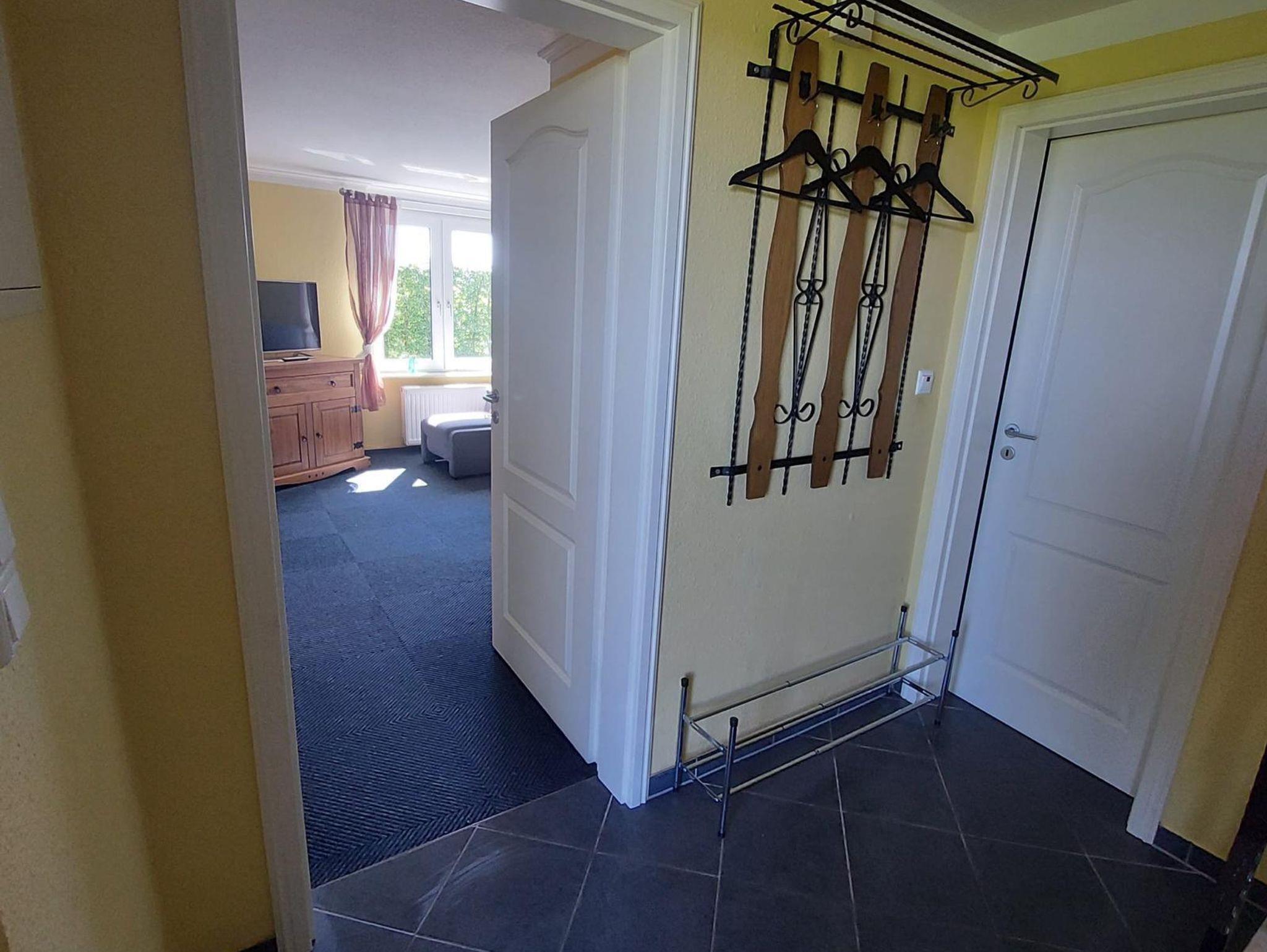 Ferienwohnung West (ca. 55 m²) befindet sich im Erdgeschoss und ist zum Westen ausgerichtet. Im Wohnzimmer erwartet Sie ein Sat-TV sowie eine Stereoanlage. In der separaten Küche erwartet Sie eine komplett eingerichtete Küchenzeile mit einem Vierplattenherd und Backofen, Kühlschrank mit Gefrierkombination, Mikrowelle und div. elektrischen Geräten.