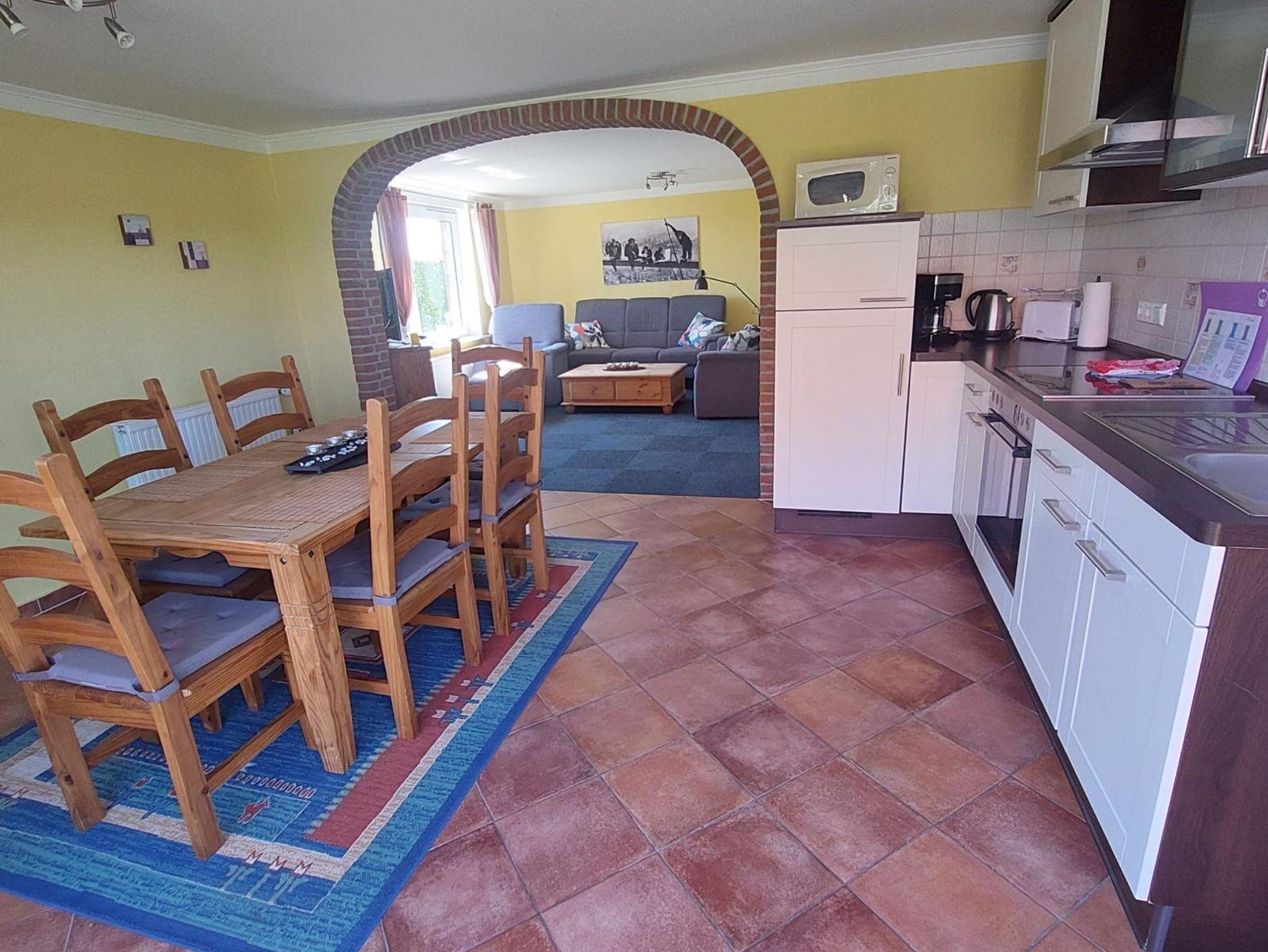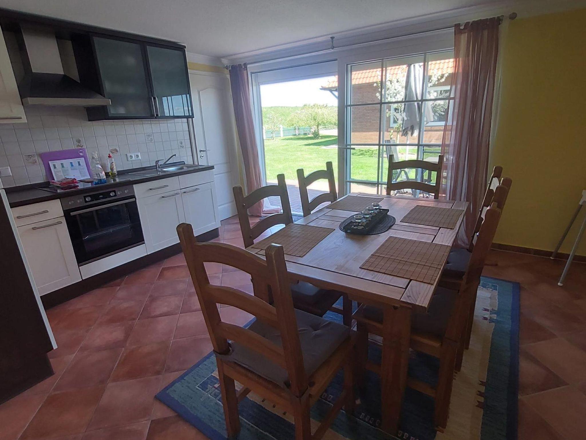 Unsere kleine Ferienwohnung im Erdgeschoss (ca. 45 m²) liegt direkt vorm Deich. Im Wohn-/Essbereich werden Sie eine ein Sat-TV und Stereoanlage sowie eine Küchenzeile mit div. elektr. Geräten wie Kaffeemaschine, Wasserkocher, Toaster u.s.w. vorfinden.