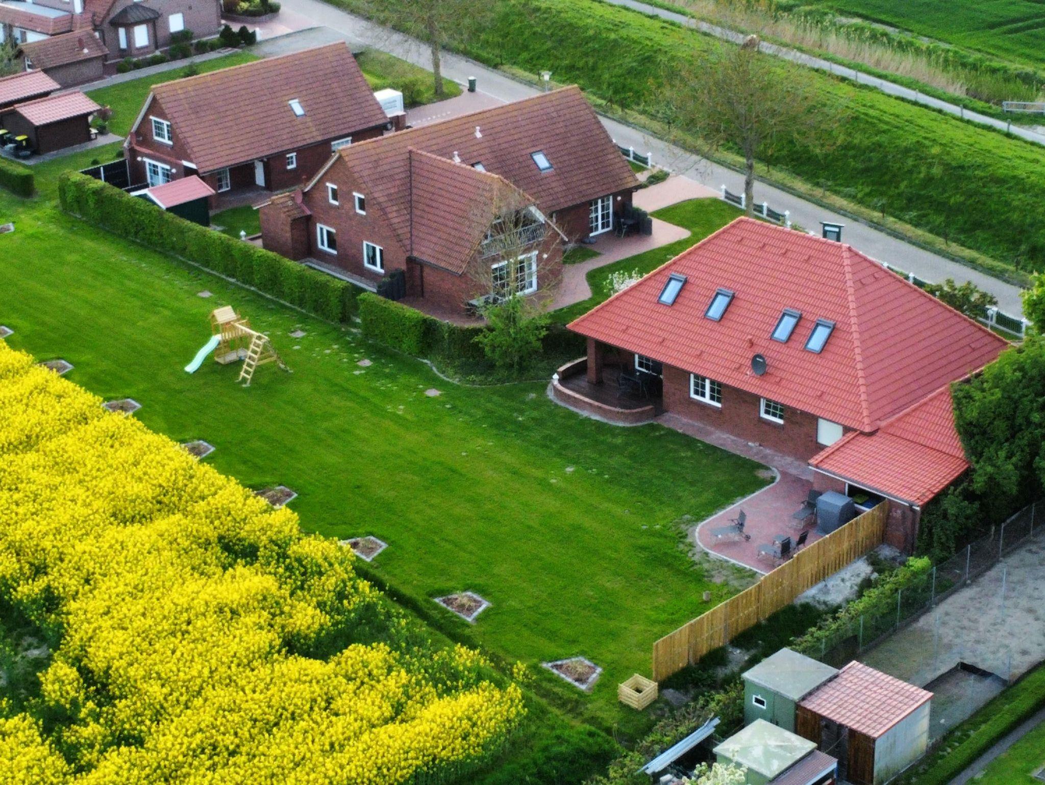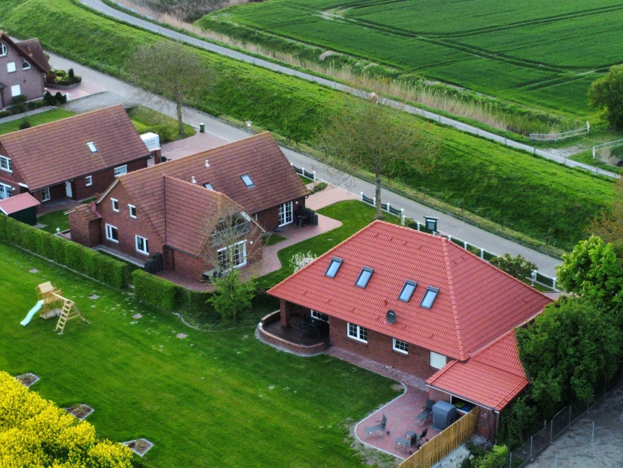Unser Ferienhaus Glücksklee befindet sich in ruhiger Lage direkt vorm Deich und teilt sich in fünf Ferienwohnung auf. Alle Ferienwohnungen bieten die Möglichkeit den erlebnisreichen Tag auf der Terrasse, dem Balkon bzw. Freisitz im Garten ausklingen zu lassen. Waschmaschine und Trockner stehen für Sie zur Mitnutzung im separaten Wäscheraum bereit. Direkt vor dem Haus befindet sich für jede Wohnung ein PKW-Einstellplatz und Ihre mitgebrachten Fahrräder können in einem separaten Abstellraum untergebracht werden. Ihre Betten sind bereits bei Anreise bezogen undfür unsere kleinen Gäste stellen wir gerne ein Reisebett sowie einen Kinderhochstuhl zur Verfügung.
