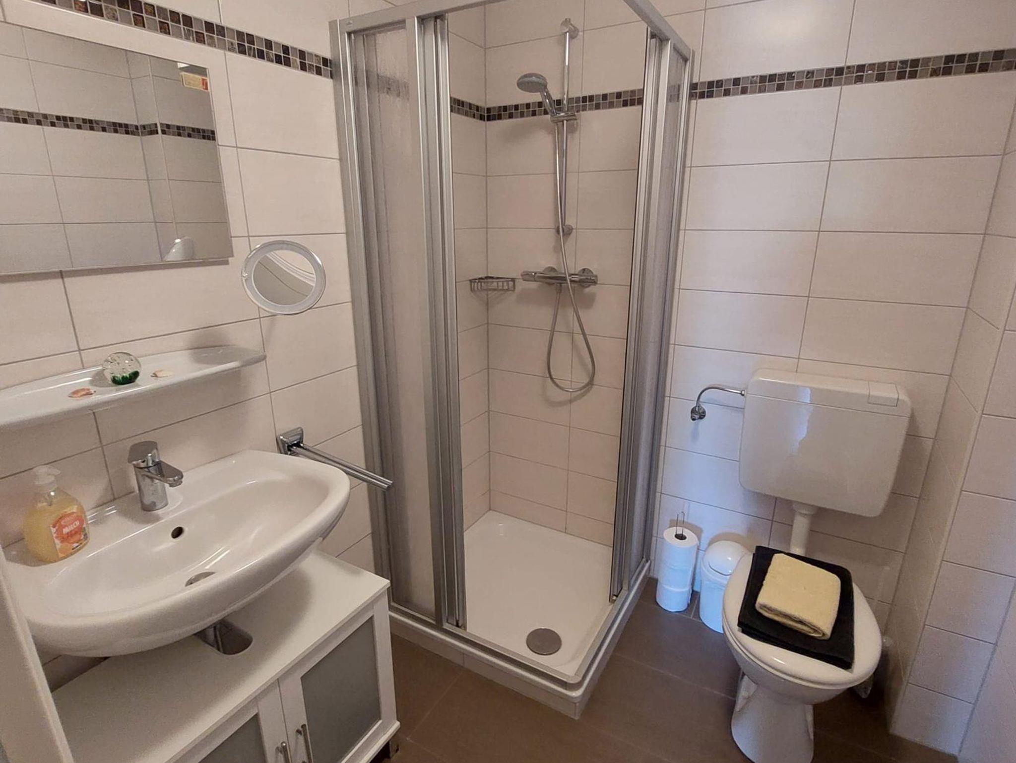 Unsere Ferienwohnung Kleeblatt hat eine Wohnfläche von ca. 65 m². Im Erdgeschoss befinden sich eine komplett eingerichtete Küche mit Backofen, Cerankochfeld, Kühlschrank mit Gefrierfach, Spülmaschine und diversen elektrischen Geräten wie Kaffeemaschine, Wasserkocher, Toaster etc. Des Weiteren werden Sie hier ein Bad mit Dusche/WC vorfinden. Im Obergeschoss erwarten Sie ein gemütlich eingerichteter Wohnbereich mit Flachbildschirm, 2 Schlafzimmer (Doppel- und Einbettzimmer) sowie ein weiteres Bad mit Badewanne/WC.