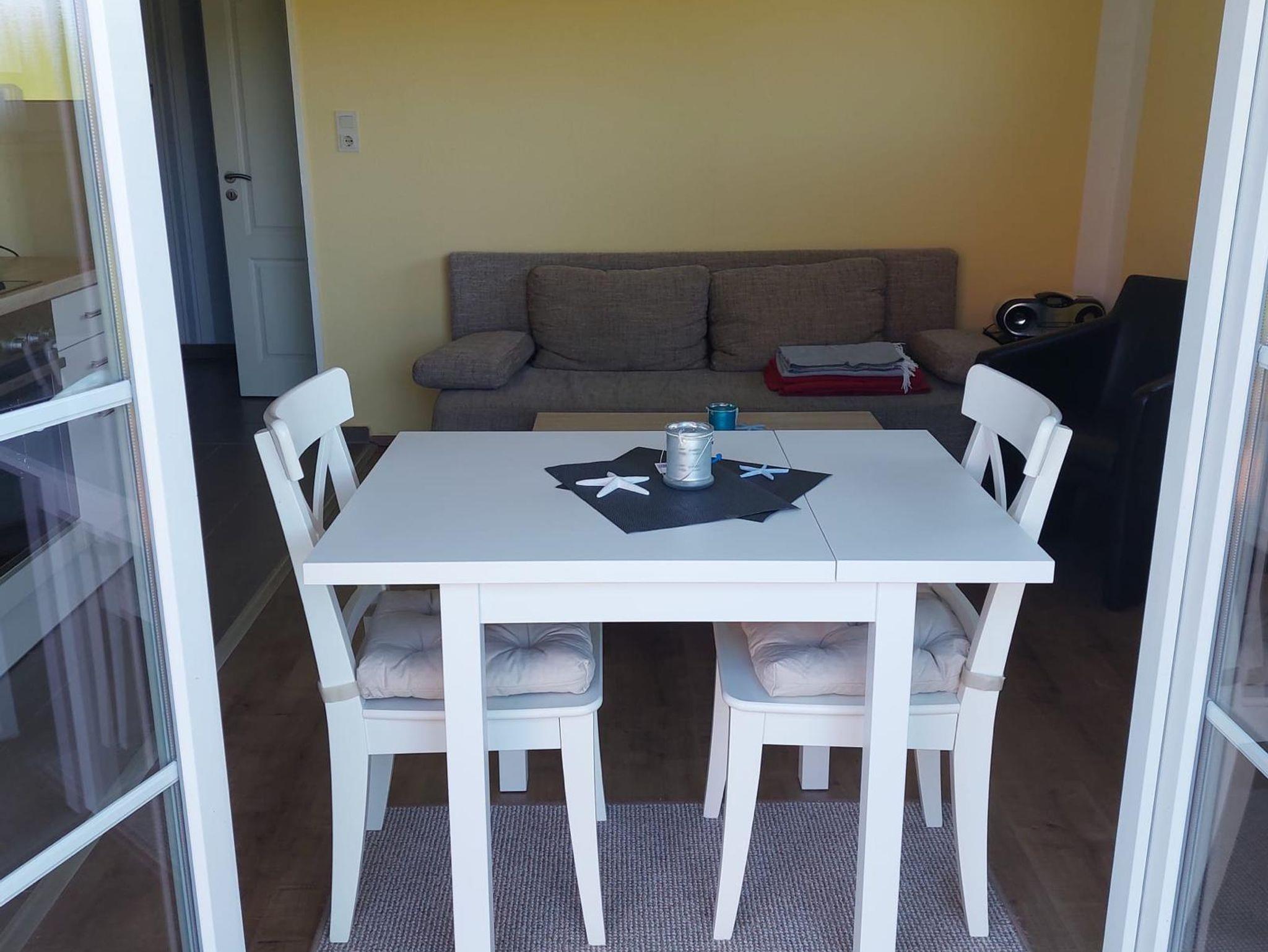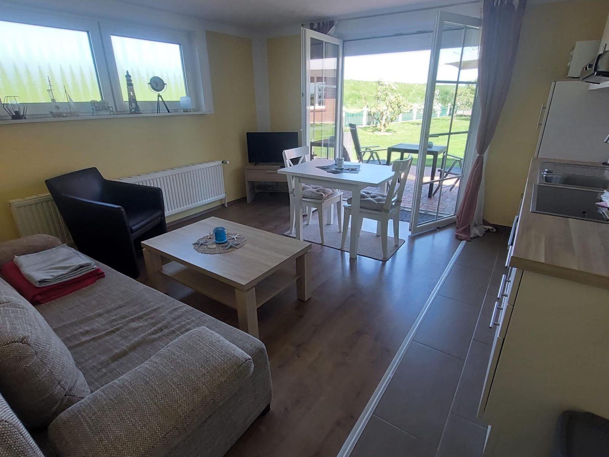 Unsere kleine Ferienwohnung im Erdgeschoss (ca. 45 m²) liegt direkt vorm Deich. Im Wohn-/Essbereich werden Sie eine ein Sat-TV und Stereoanlage sowie eine Küchenzeile mit div. elektr. Geräten wie Kaffeemaschine, Wasserkocher, Toaster u.s.w. vorfinden.
