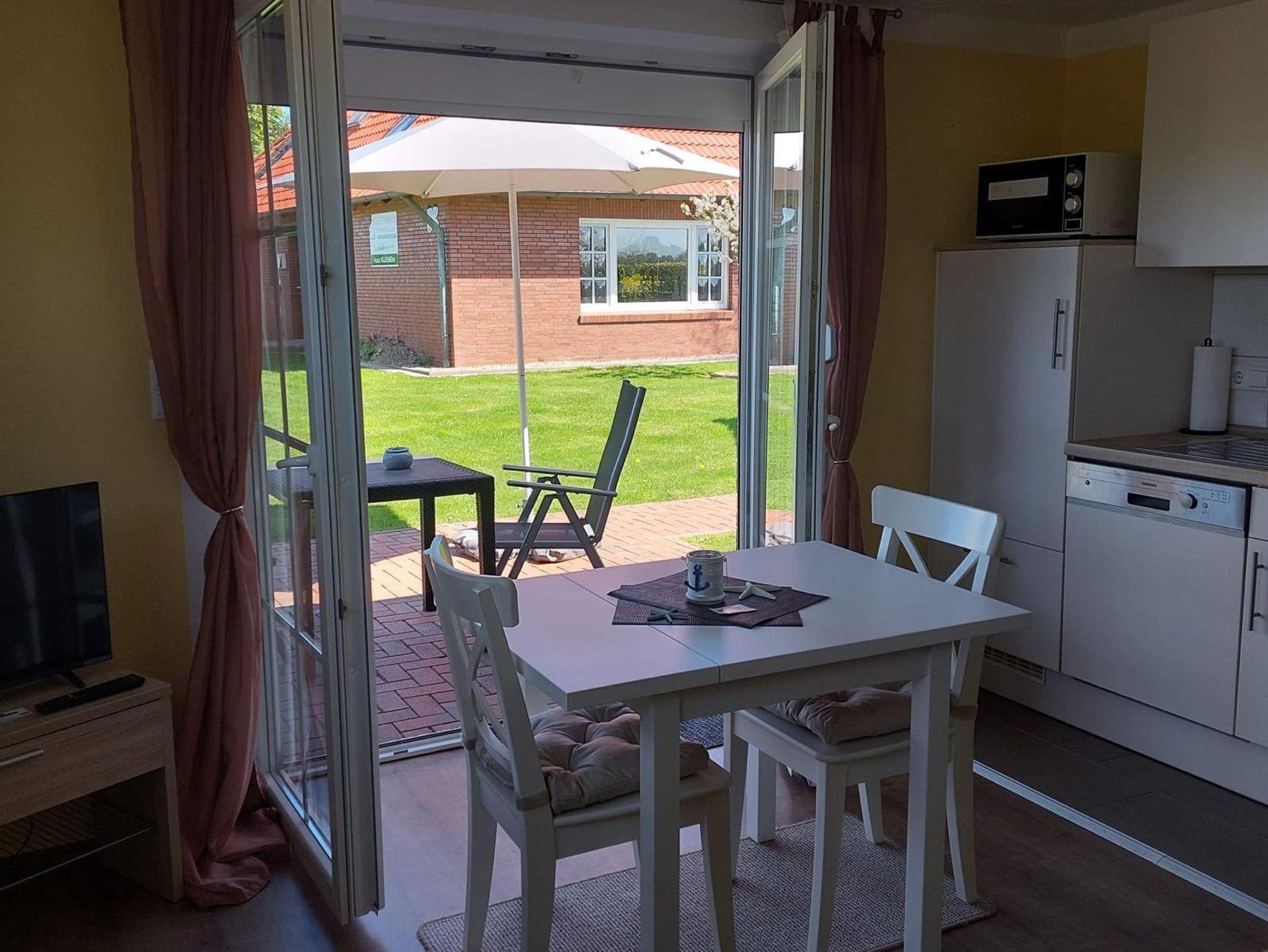 Ferienhaus Glücksklee in Dornum-Neßmersiel bietet ruhige Lage direkt vorm Deich mit Terrasse, WLAN und Haustierfreundlichkeit.