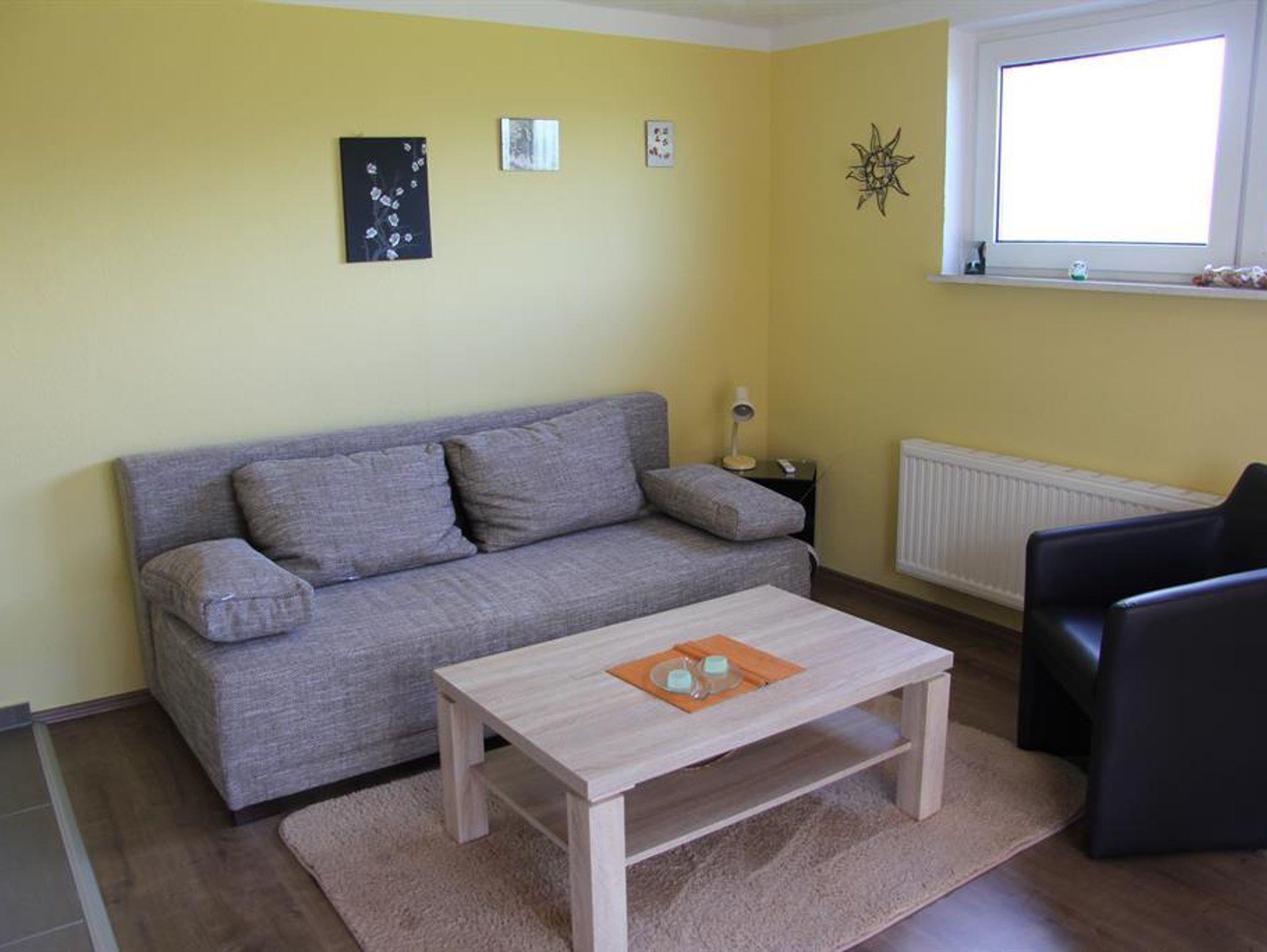 Ferienwohnung West (ca. 55 m²) befindet sich im Erdgeschoss und ist zum Westen ausgerichtet. Im Wohnzimmer erwartet Sie ein Sat-TV sowie eine Stereoanlage. In der separaten Küche erwartet Sie eine komplett eingerichtete Küchenzeile mit einem Vierplattenherd und Backofen, Kühlschrank mit Gefrierkombination, Mikrowelle und div. elektrischen Geräten.