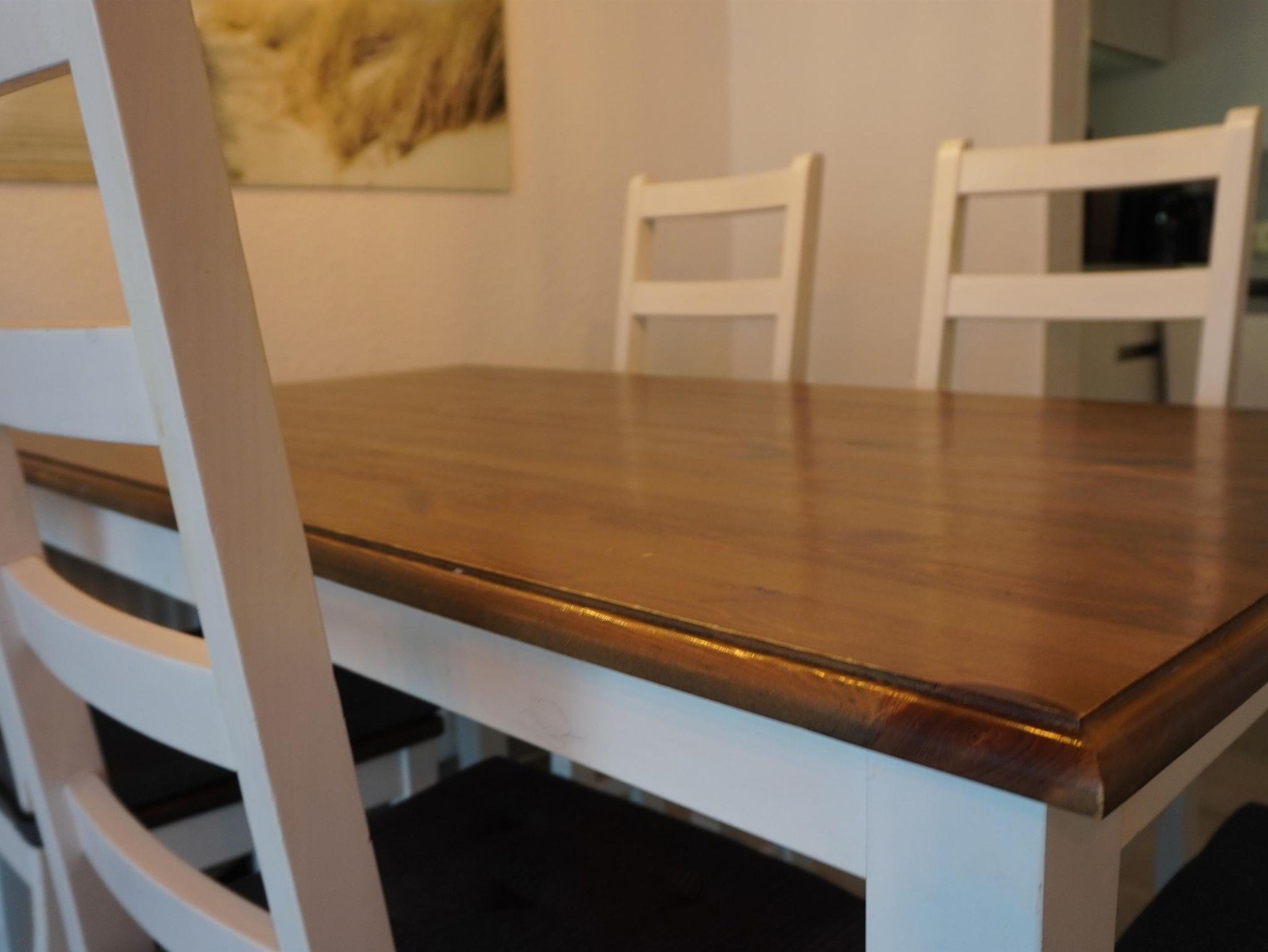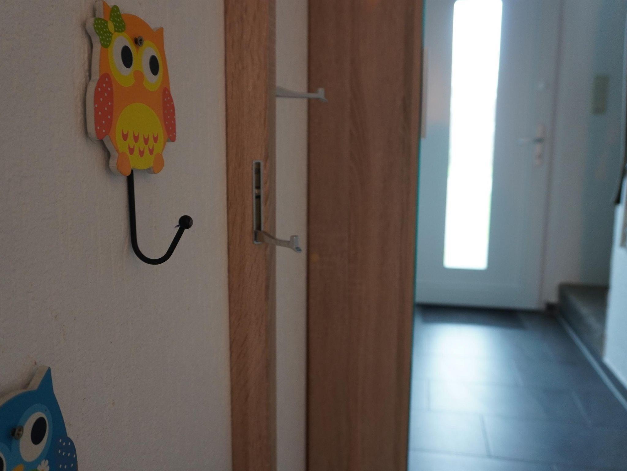 Im gefliesten Erdgeschoß befindet sich das frisch renovierte Tageslicht Duschbad mit WC und Föhn sowie ein Abstellraum mit Waschmaschine. Die offene Küche ist mit 4-Zonen Cerankochfeld, Backofen, Geschirrspüler, Kühlschrank mit Gefrierfach, Mikrowelle, Kaffeemaschine, Wasserkocher etc. gut ausgestattet. Im angrenzenden hellen Wohn-Esszimmer finden Sie für 5 Personen Platz mit Blick in den Garten. Für die Unterhaltung finden Sie im Wohnzimmer einen Flachbildschirm mit SAT-Empfang und eine Stereoanlage. Über die Playstation können sie DVD schauen. In der mit Laminat ausgelegten ersten Etage befinden sich zwei hell eingerichtete Schlafzimmer. Von dem Schlafzimmer mit den zwei Einzelbetten führt eine offene Treppe in den mit Teppich ausgelegtem Spitzboden, der zum lesen und entspannen und als fünften Schlafplatz einlädt.