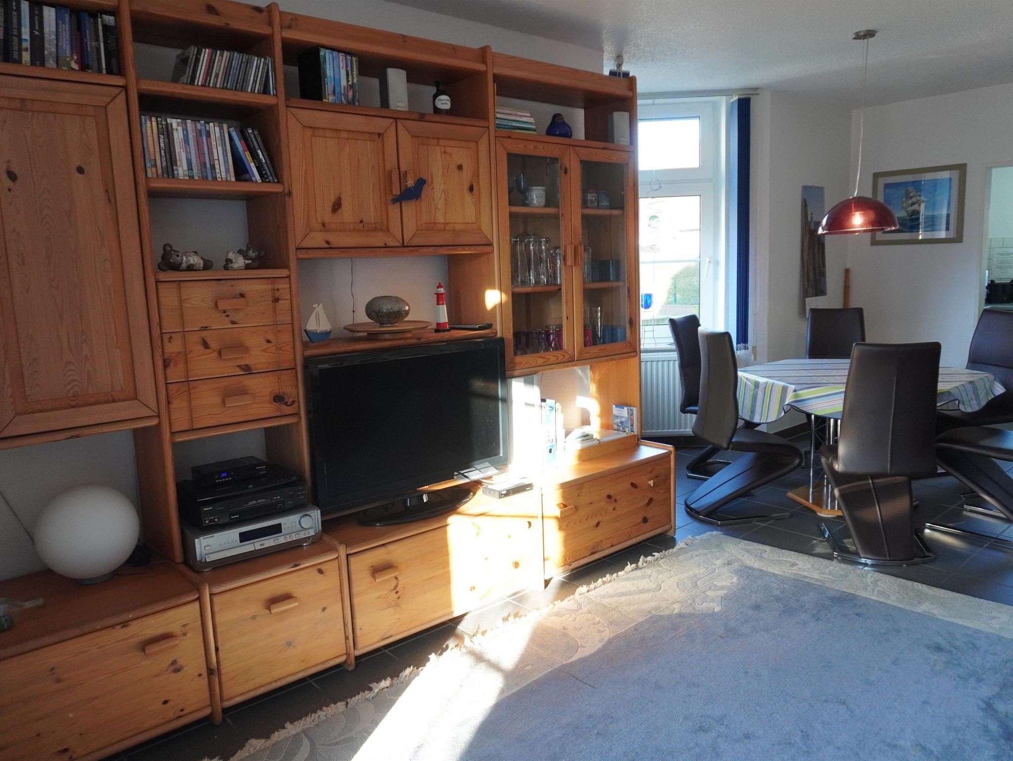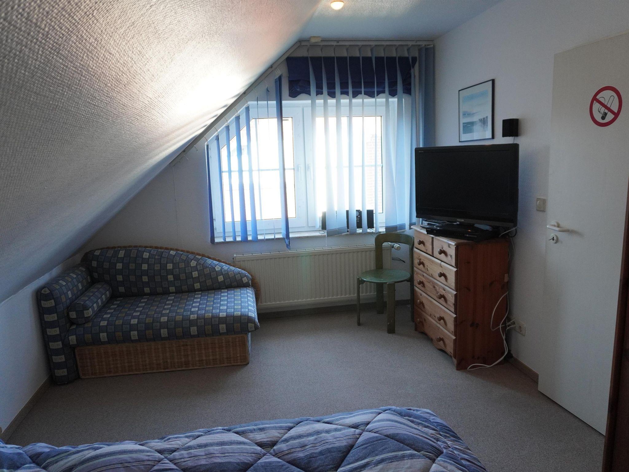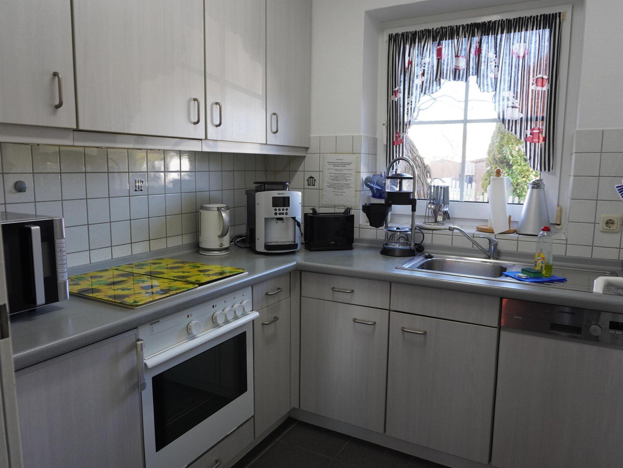 Im Erdgeschoss befinden sich das große Wohnzimmer mit SAT-TV-Flachbildschirm, DVD- und Blue-Ray-Player sowie eine Stereoanlage. Die Küche ist komplett ausgestattet und verfügt neben einem Kaffeevollautomat über diverse elektrische Geräte. Des Weiteren befinden sich hier ein Gäste-WC und ein kleiner Abstellraum mit Waschmaschine und Trockner. Das Obergeschoss besteht aus einem Schlafzimmer mit Doppelbett und Kinderbett, einem zusätzlichen Schlafraum mit zwei Einzelbetten und SAT-TV sowie einem Bad mit WC, Dusche und Whirlpool Wanne. Auf unsere kleinen Gäste warten ein Kinderbett und ein Hochstuhl. Solarium, internetfähiger Computer und W-LAN, Telefon (Festnetzflatrate) und Fax, runden das Angebot des Hauses ab.