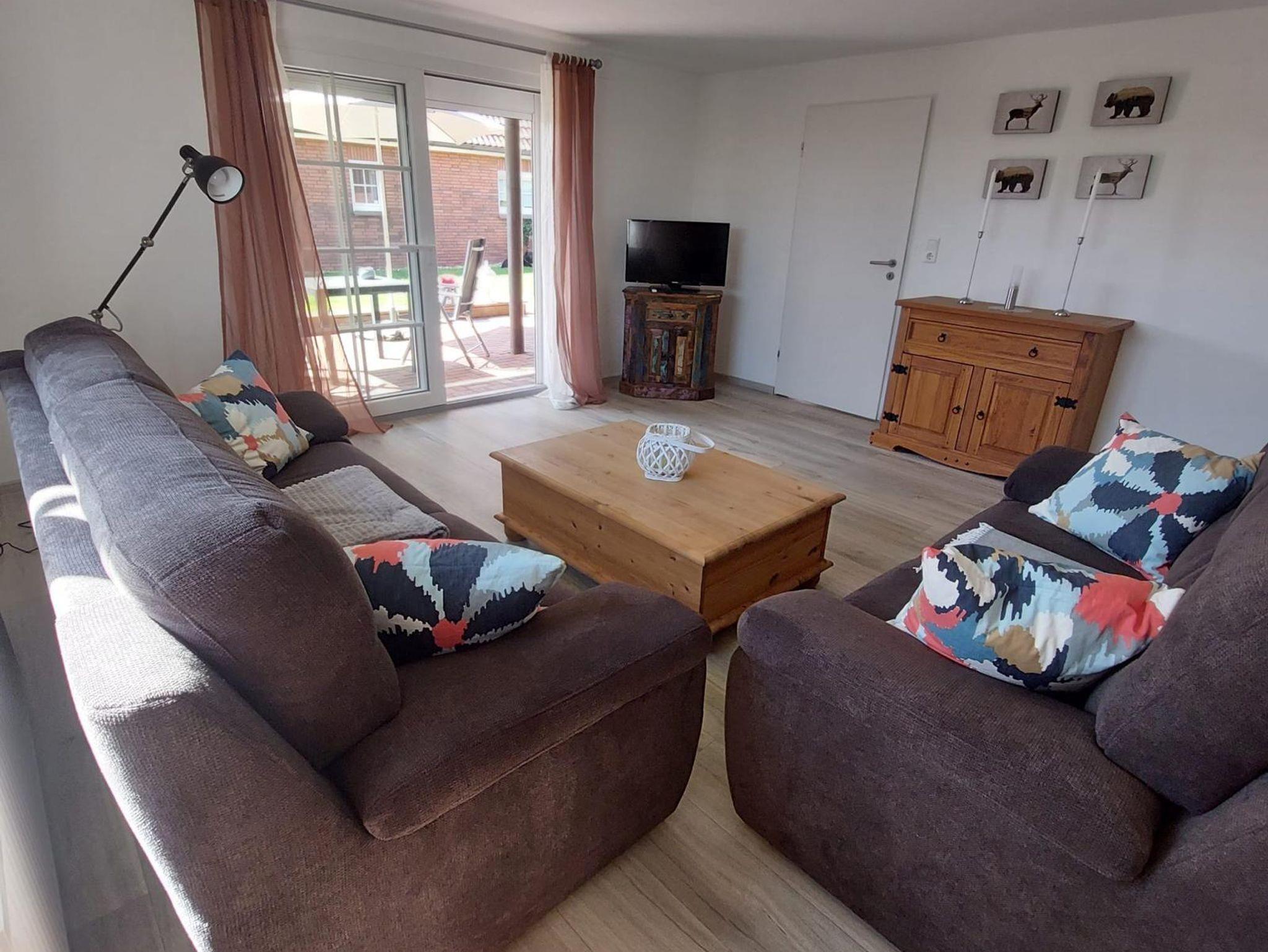 Gemütliches Ferienhaus Glücksklee in Dornum-Neßmersiel, ruhig am Deich, mit Terrasse und Haustierfreundlichkeit.