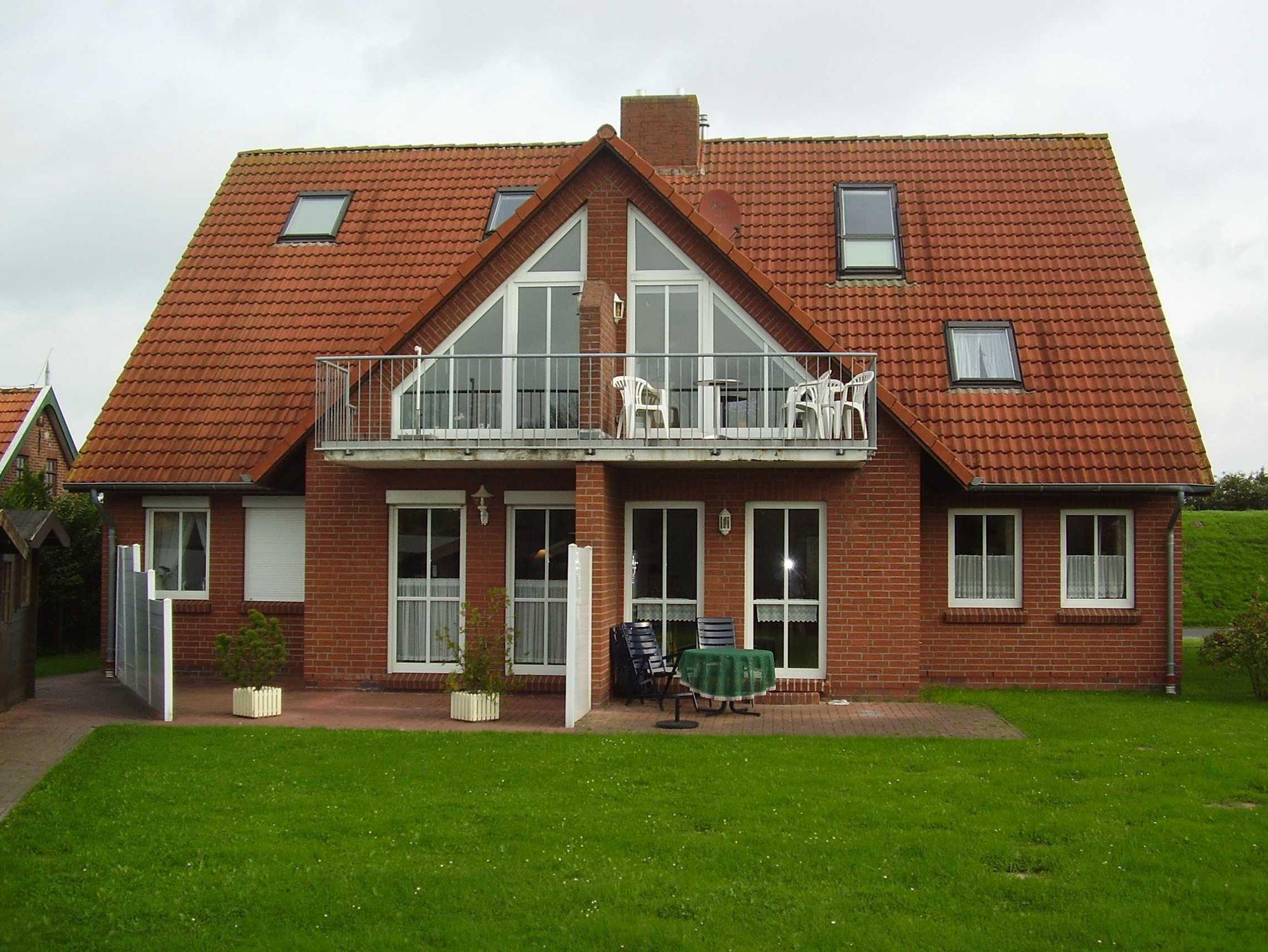 Moderne Ferienwohnung mit Kamin und Südbalkon direkt am Deich in Neßmersiel mit Blick auf die Nordsee und Inseln.