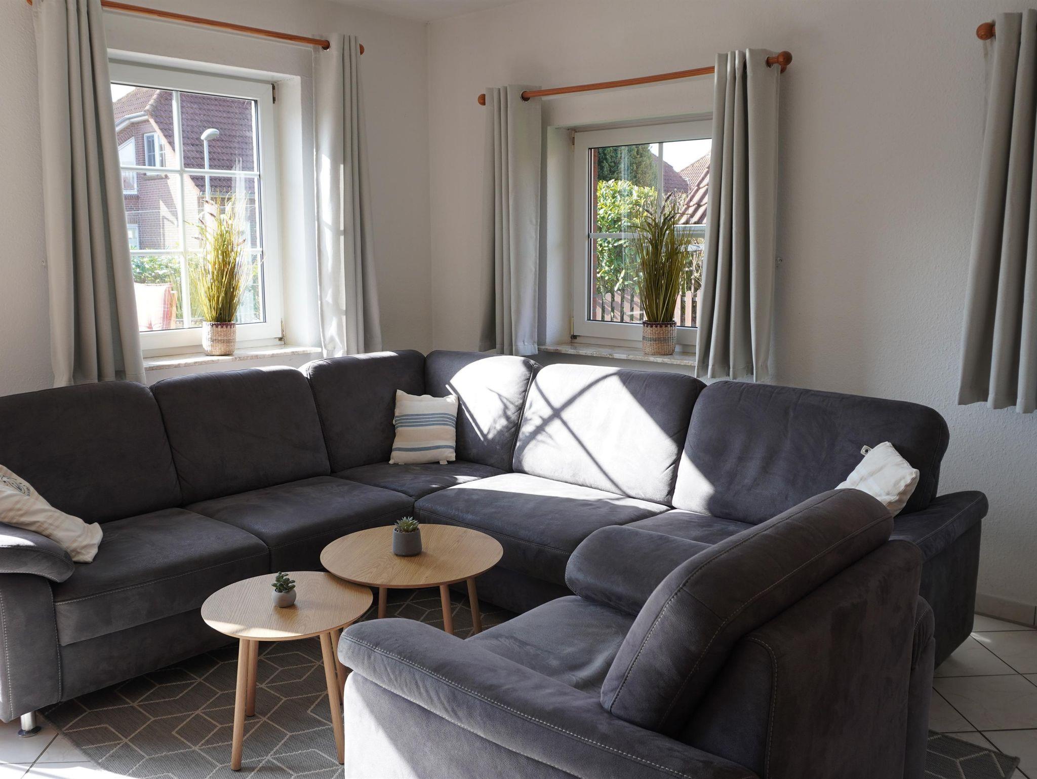 Auf ca. 100 m² Wohnfläche erwarten Sie ein geschmackvoll und gemütlich eingerichtetes Wohnzimmer mit digitalem Full-HD TV, DVD-Player, Videorekorder und einer Stereoanlage mit CD/MC sowie kostenloses Internet über W-LAN und Telefon mit Festnetzflat. Die helle Einbauküche wird komplettiert durch Umluftbackofen, Geschirrspüler, Kühlschrank mit Gefrierfach, Mikrowelle und allen erforderlichen Haushaltsgeräten. Die Bäder sind mit Dusche und WC sowie einer Waschmaschine und einem Wäschetrockner ausgestattet. Ein Schlafzimmer befindet sich im Erdgeschoss. Zwei räumlich großzügig ausgestattete Schlafzimmer im Obergeschoss sind zusätzlich mit einem Schreibtisch bzw. einem Kinderbett ausgestattet. Ein Hochstuhl steht ebenfalls zur Verfügung. Wir wünschen Ihnen einen angenehmen Aufenthalt.