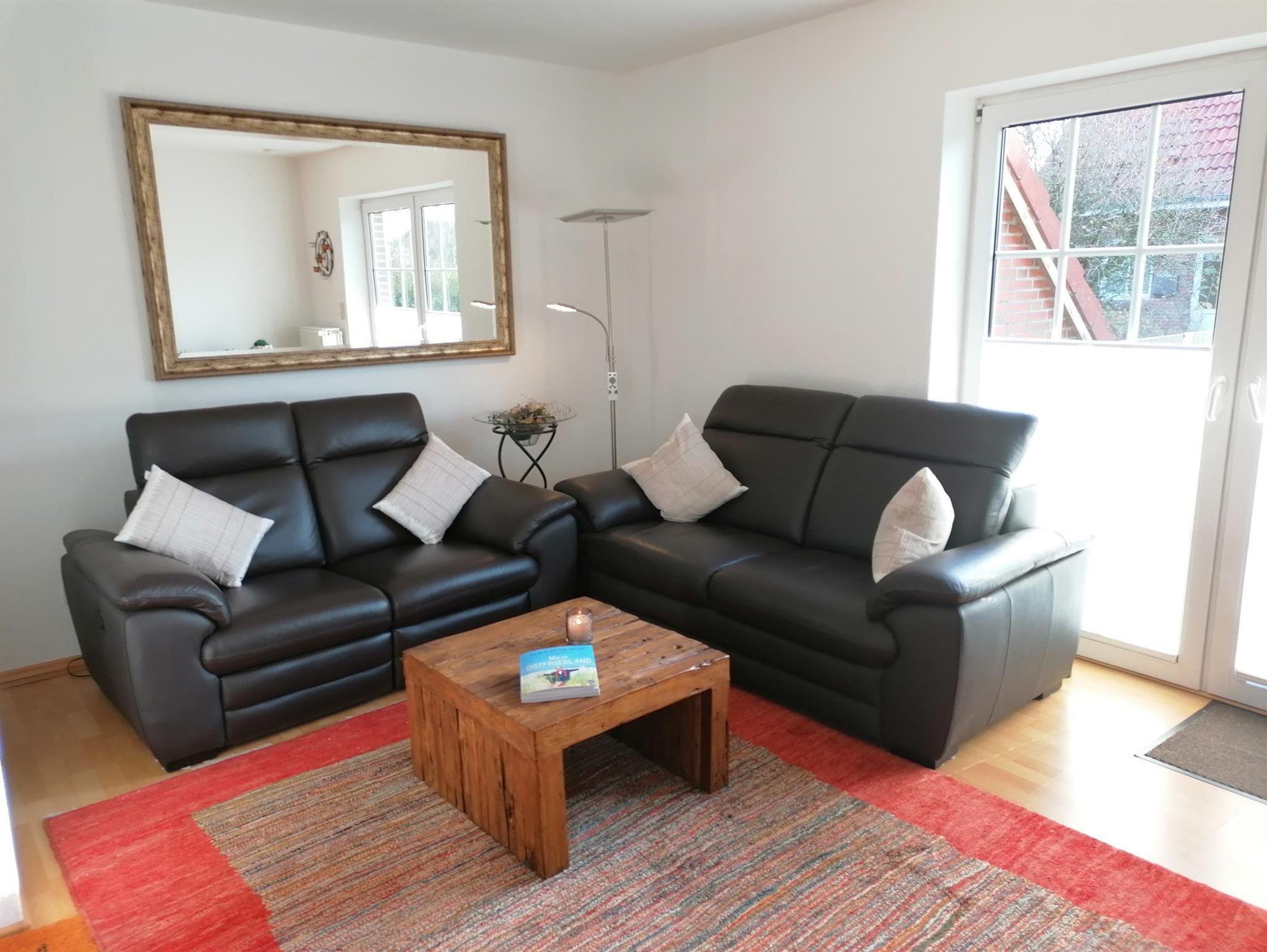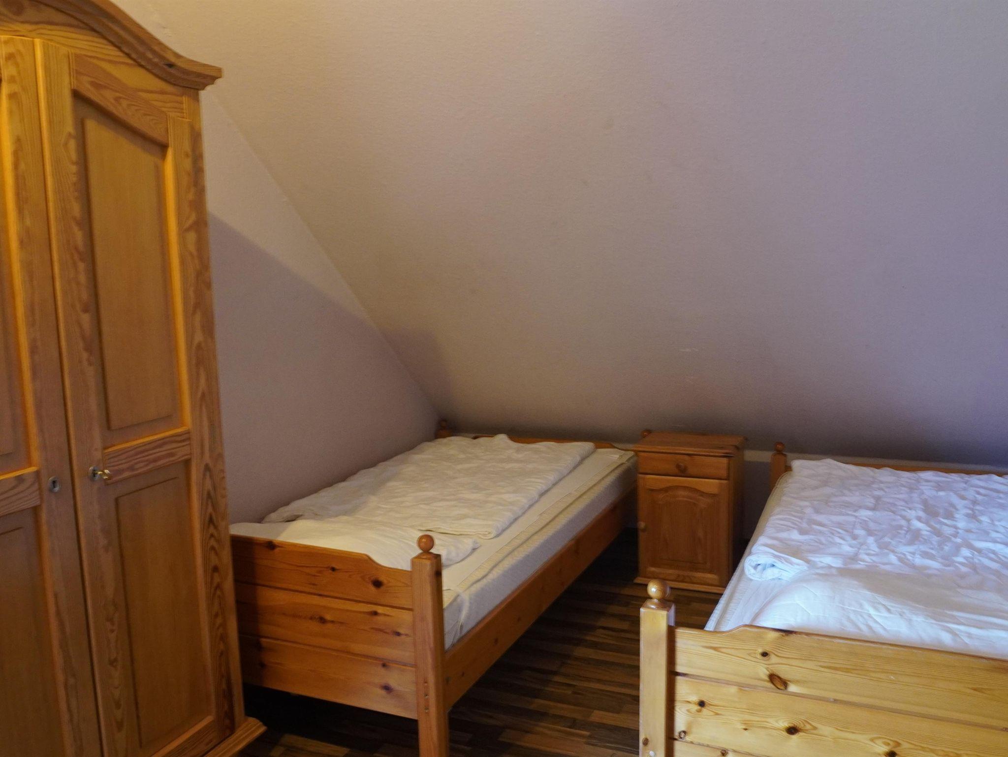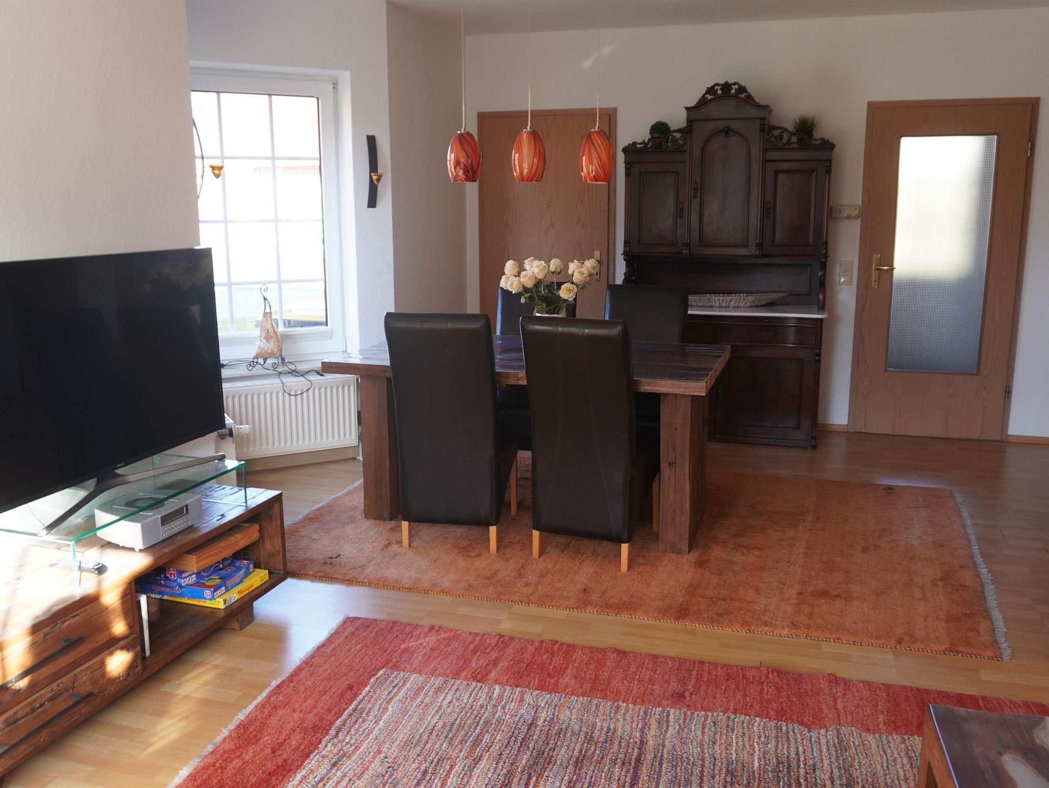 Wir laden Sie ein auf ca. 80 m² Wohnfläche einen unvergesslichen Urlaub zu erleben. Im Erdgeschoss werden Sie einen gemütlichen Wohn- und Essbereich vorfinden. Damit Sie auf Informationen aus aller Welt nicht verzichten müssen, stellen wir hier ein SAT-TV zur Verfügung. Auch in der zum Wohnbereich angrenzenden Küche haben Sie alles was Sie benötigen um sich an einen reibungslosen Ablauf zu erfreuen. Ein Gäste-WC und ein kleiner zusätzlicher Abstellraum mit Zubehör wie z.B. Bügeleisen, Bügelbrett sind ebenfalls gegenwärtig. Im Obergeschoss erwarten Sie zwei Schlafräume (Doppel- und Zweibettzimmer). Das Bad ist mit Dusche/WC und einer Waschmaschine ausgestattet. Auf unsere kleinen Gäste warten ein Kinderbett und ein Hochstuhl.