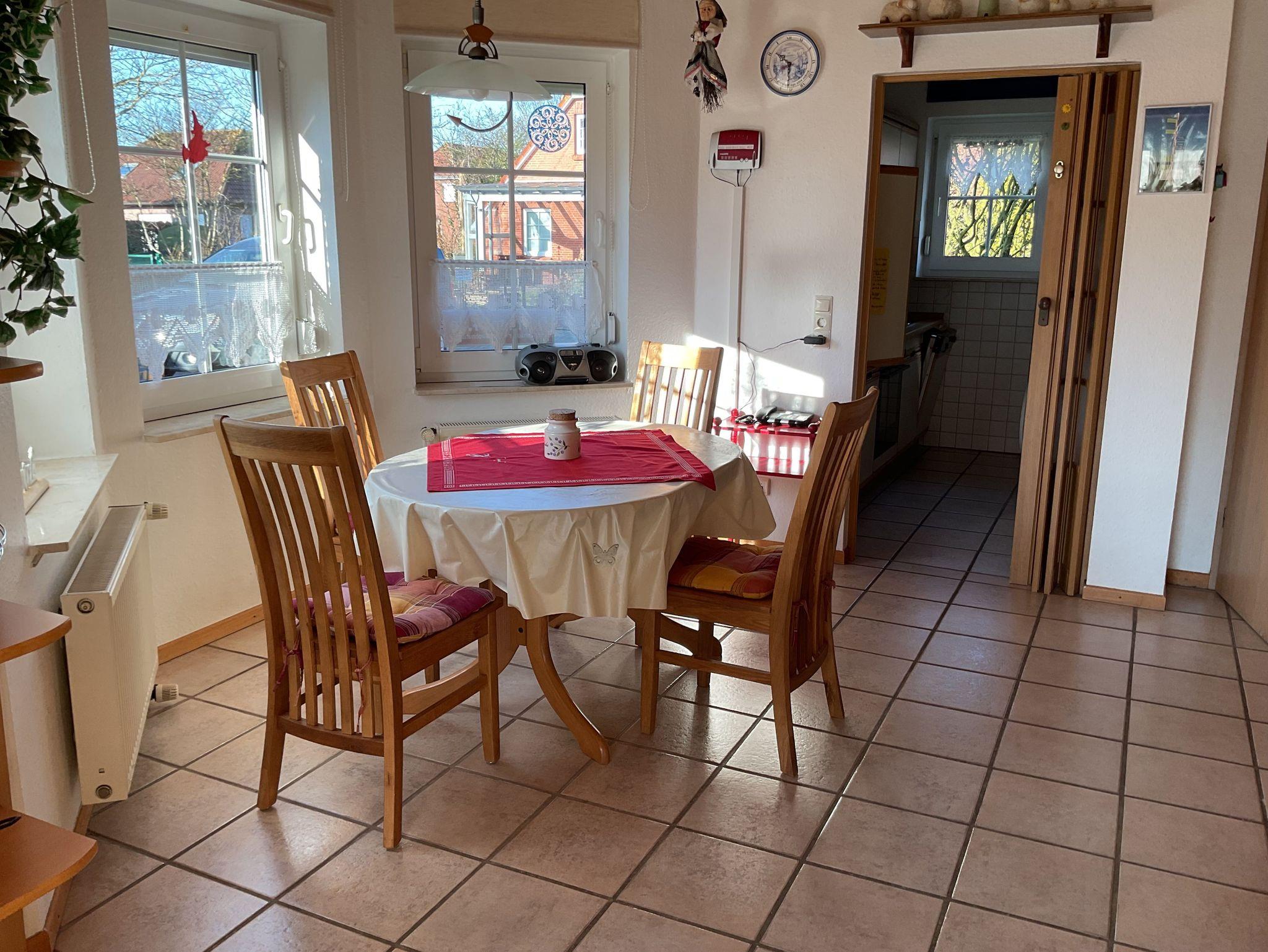 Offener Wohn- und Essbereich mit gemütlicher Couchgarnitur und Flachbild-TV, Essgruppe mit Bestuhlung, Einbauküche mit Spülmaschine, Waschmaschine, Kühlschrank mit Gefrierfach, VierPlattenElektroherd mit Backofen und allen erforderlichen Elektrogeräten.