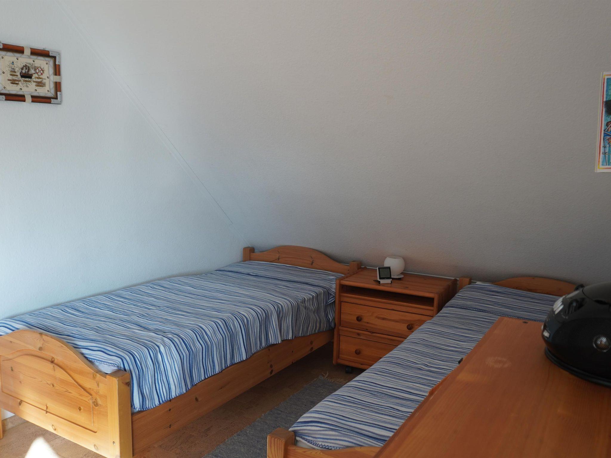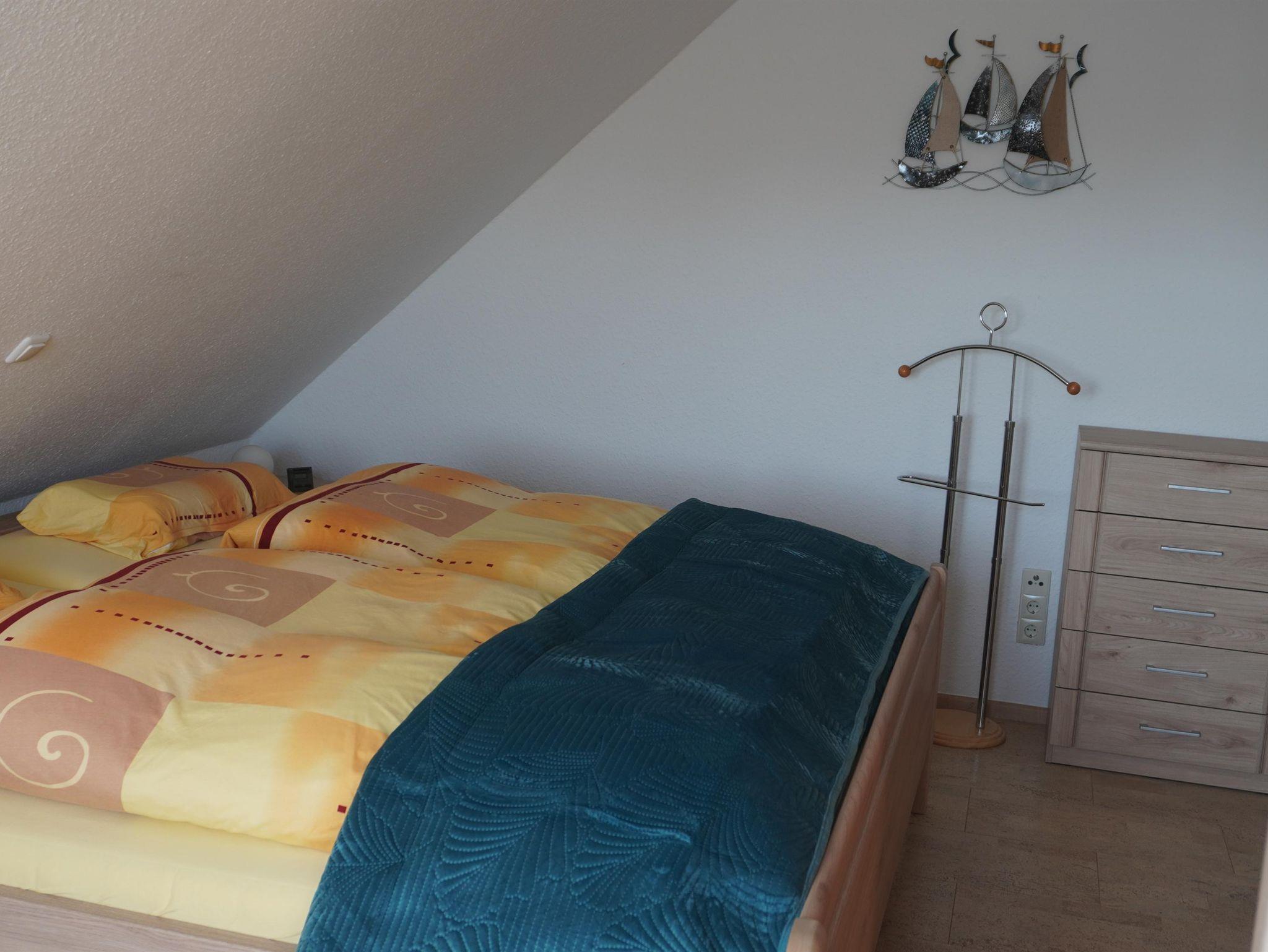 Im Obergeschoss, welches mit Korkboden ausgestattet ist, erwarten Sie zwei Schlafzimmer (Doppel- und Zweibettzimmer) mit Rücken und Allergikergerechten Matratzen, Oberbetten und Kissen. Ein Luftbett (1,00 m x 2,00 m x 0,40 m) kann als weitere Schlafmöglichkeit aufgestellt werden. Desgleichen ein Baby–Reisebett mit Oberbett und Kissen. Die Schlafzimmer sind durch elektrische Rollläden, voll zu verdunkeln. Das Schlafzimmer wurde im Frühjahr 2023 renoviert und komplett neu eingerichtet. Im Zweibettzimmer finden Sie einen Laptop-Möbeltresor sowie ein internetfähiges TV-Gerät.