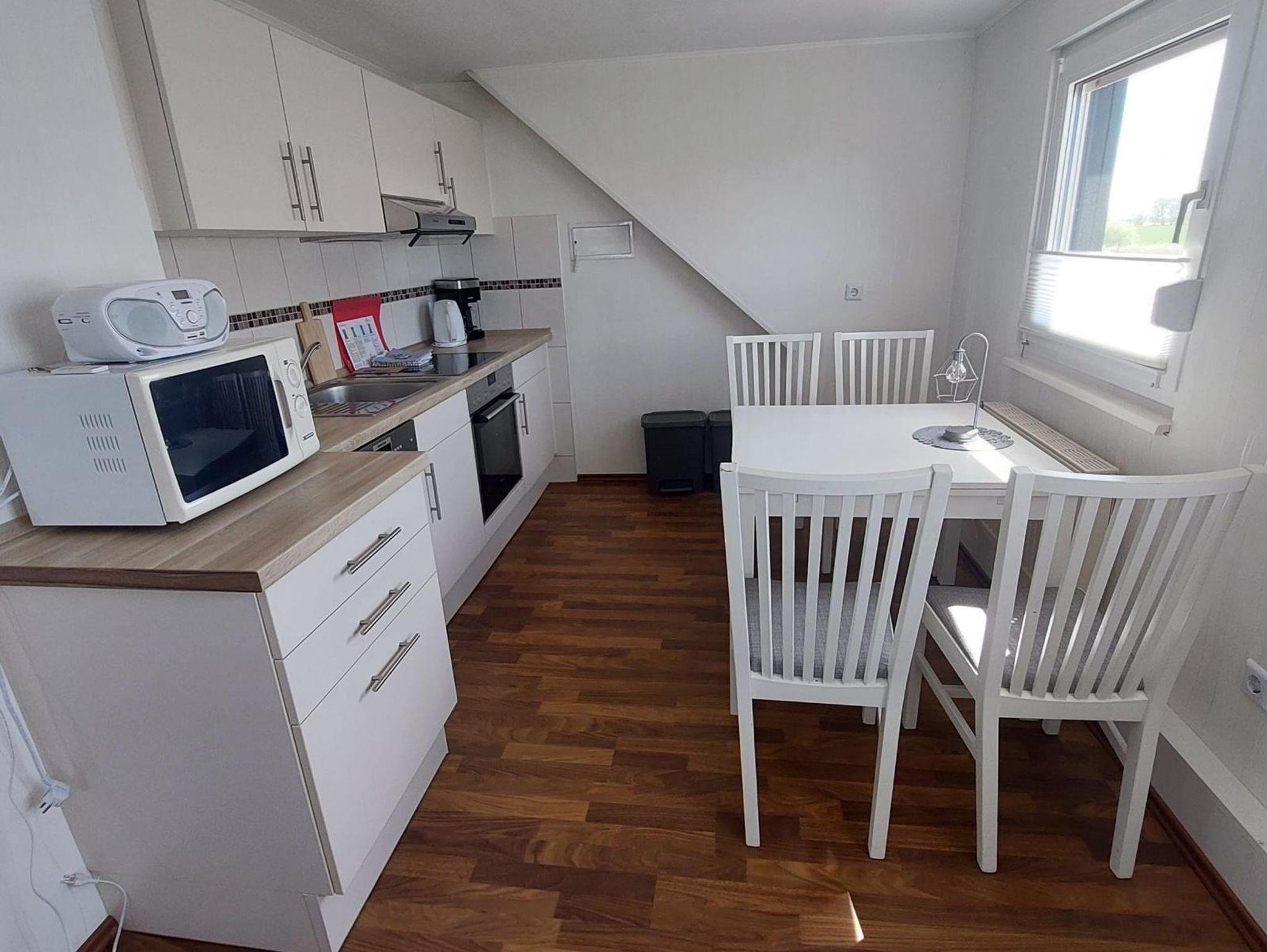 Unsere kleine Ferienwohnung im Erdgeschoss (ca. 45 m²) liegt direkt vorm Deich. Im Wohn-/Essbereich werden Sie eine ein Sat-TV und Stereoanlage sowie eine Küchenzeile mit div. elektr. Geräten wie Kaffeemaschine, Wasserkocher, Toaster u.s.w. vorfinden.