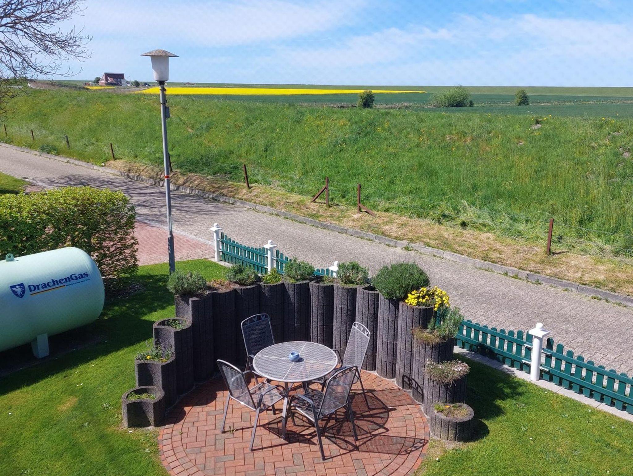 Das Ferienhaus Glücksklee in Neßmersiel bietet ruhige Lage direkt vorm Deich mit Terrasse, Garten und haustierfreundlicher Atmosphäre.