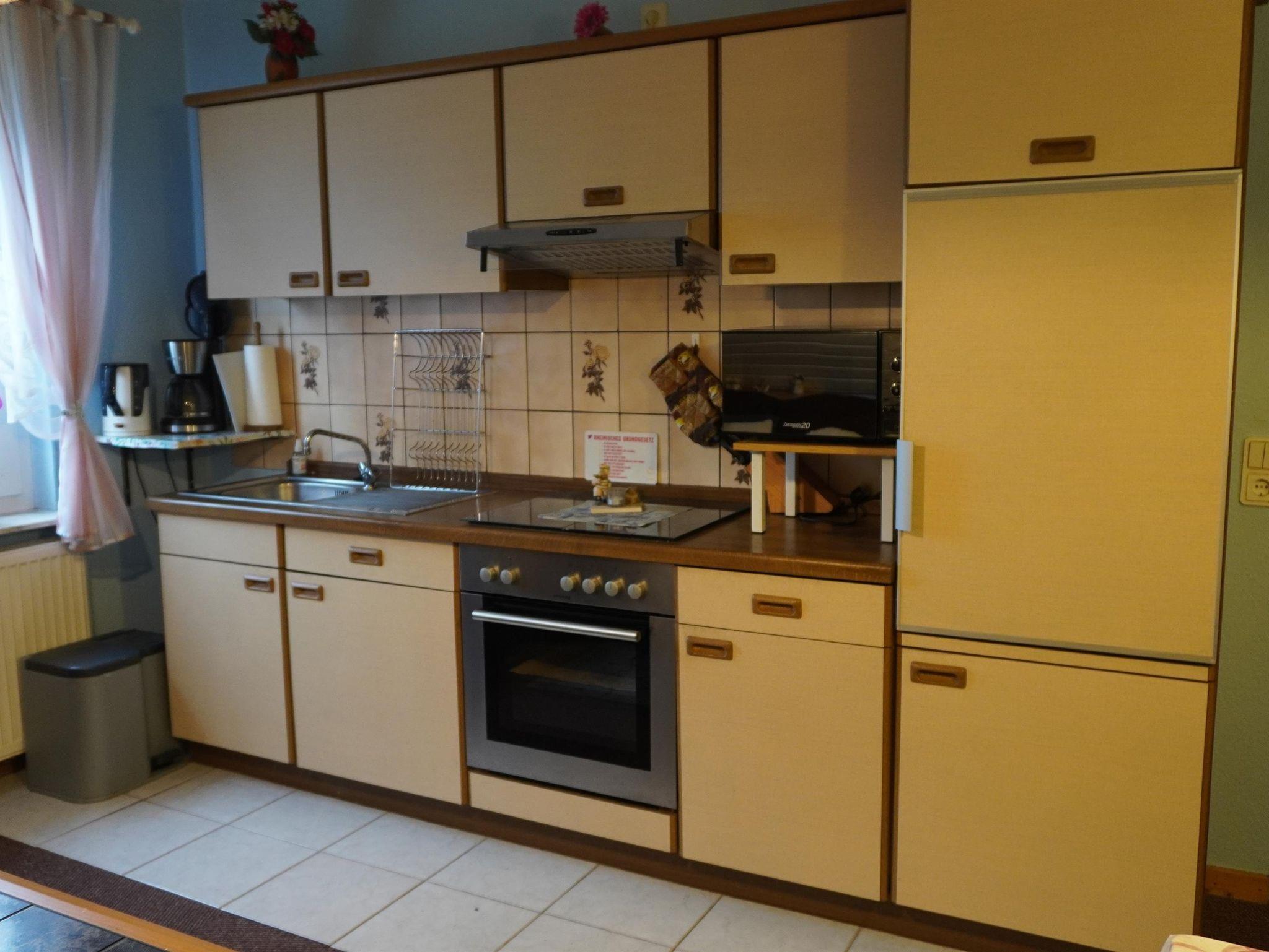Unsere Ferienwohnung (ca. 60m²) befindet sich im Obergeschoss unseres Einfamilienhauses in ruhiger Ortsrandlage. Im idyllischen, eingezäunten Garten erwartet Sie eine Terrasse mit Gartenmöbeln und eine Grillbude. Ihre mitgebrachten Fahrräder finden bequem Platz in einem separaten Abstellraum. Ein PKW Parkplatz befindet sich direkt am Haus. Egal ob Sie gerne beim Angeln oder mit der Familie entspannen möchten, entsprechende Angelmöglichkeiten und ein Spielplatz befinden sich in unmittelbarer Nähe.