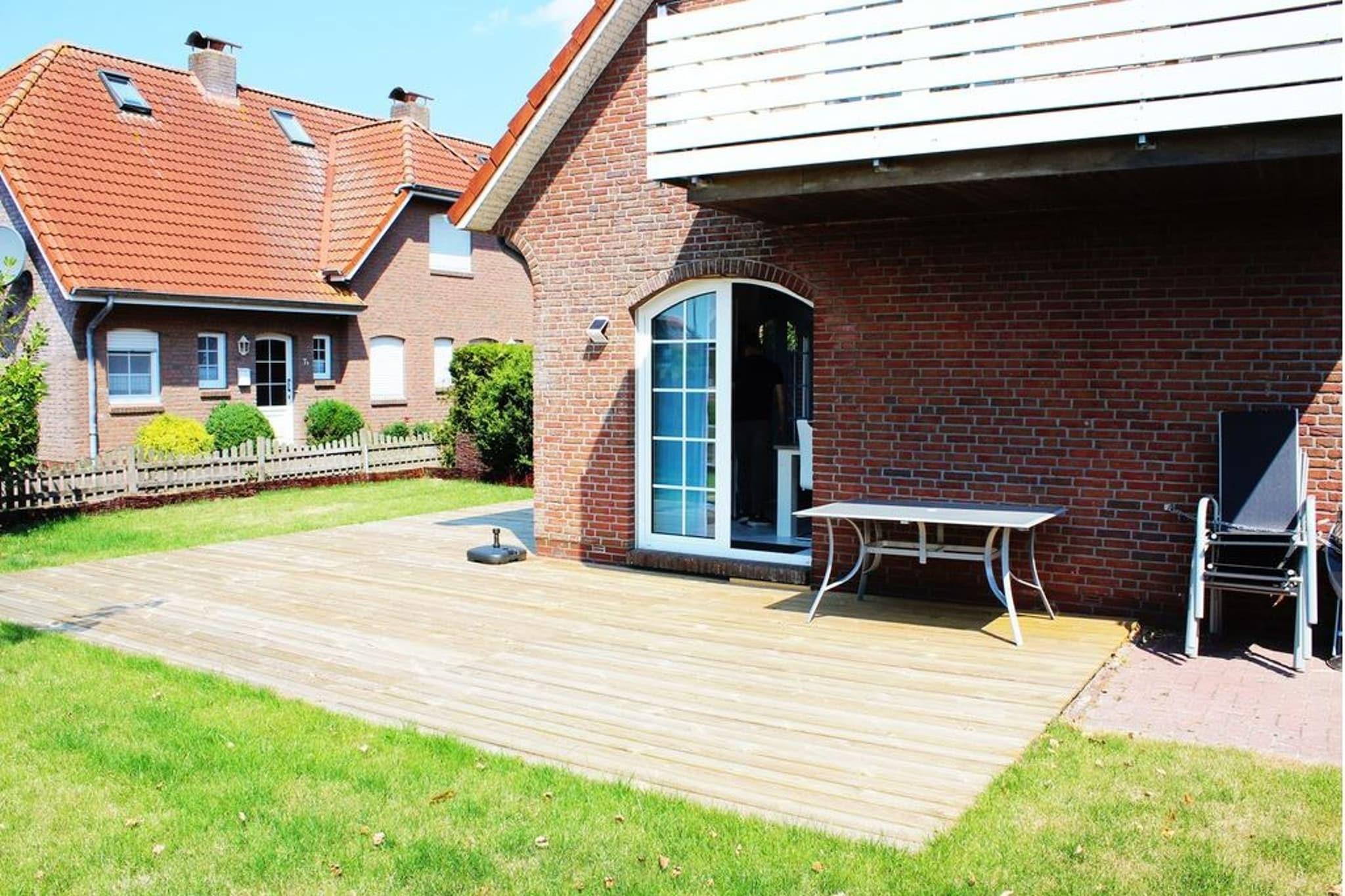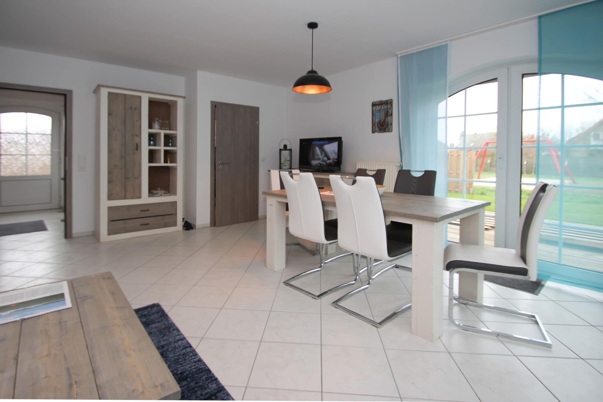Gemütliches und sehr gut ausgestattetes Ferienhaus mit schönem, eingezäunten Garten und Terrasse. Auch Ihr vierbeiniger Freund ist hier herzlich willkommen! Drei Schlafzimmer bieten Platz für sechs Personen, das modern eingerichtete Wohnzimmer mit Kaminofen und die gut ausgestattete Küche sorgen für unbeschwerte Stunden. Gleich neben dem Haus befindet sich ein Spielplatz, wo sich die kleinen Gäste austoben können. Highlights: WLAN Aktivitäten in der Nähe : Die Umgebung von Dornum ist geprägt von typischen Nordseeaktivitäten. Direkt am Meer liegt Dornumersiel mit etwa 70.000 qm Sandstrand, viele touristischen Einrichtungen, Restaurants, Geschäfte und Cafés. Erwandern Sie die sagenhafte Wattlandschaft, die zum landschaftlichen Weltnaturerbe ernannt wurde, oder das durch Geest und Marsch geprägte Hinterland der Küste. Aktivitäten wie Radfahren, Beachvolleyball, Kitesurfen, Angeln oder ein Besuch im solarbeheizten Meerwasserschwimmbad sind nur einige der zahlreichen Angebote für Sportbegeisterte. Die Region bietet allen Gästen unterschiedlichste Freizeitaktivitäten. Egal ob zu zweit oder mit der Familie: hier findet jeder die entsprechende Urlaubsbeschäftigung.