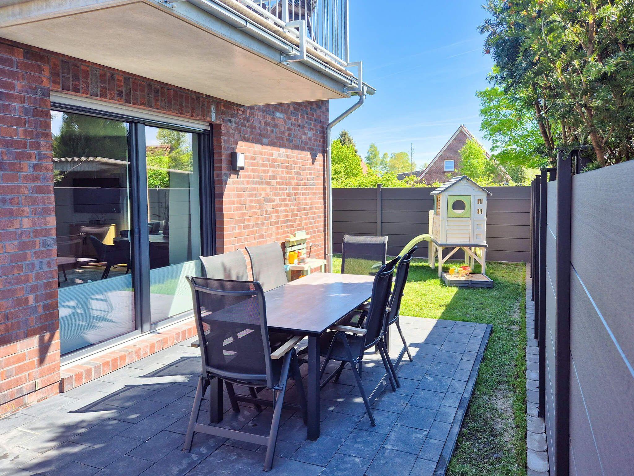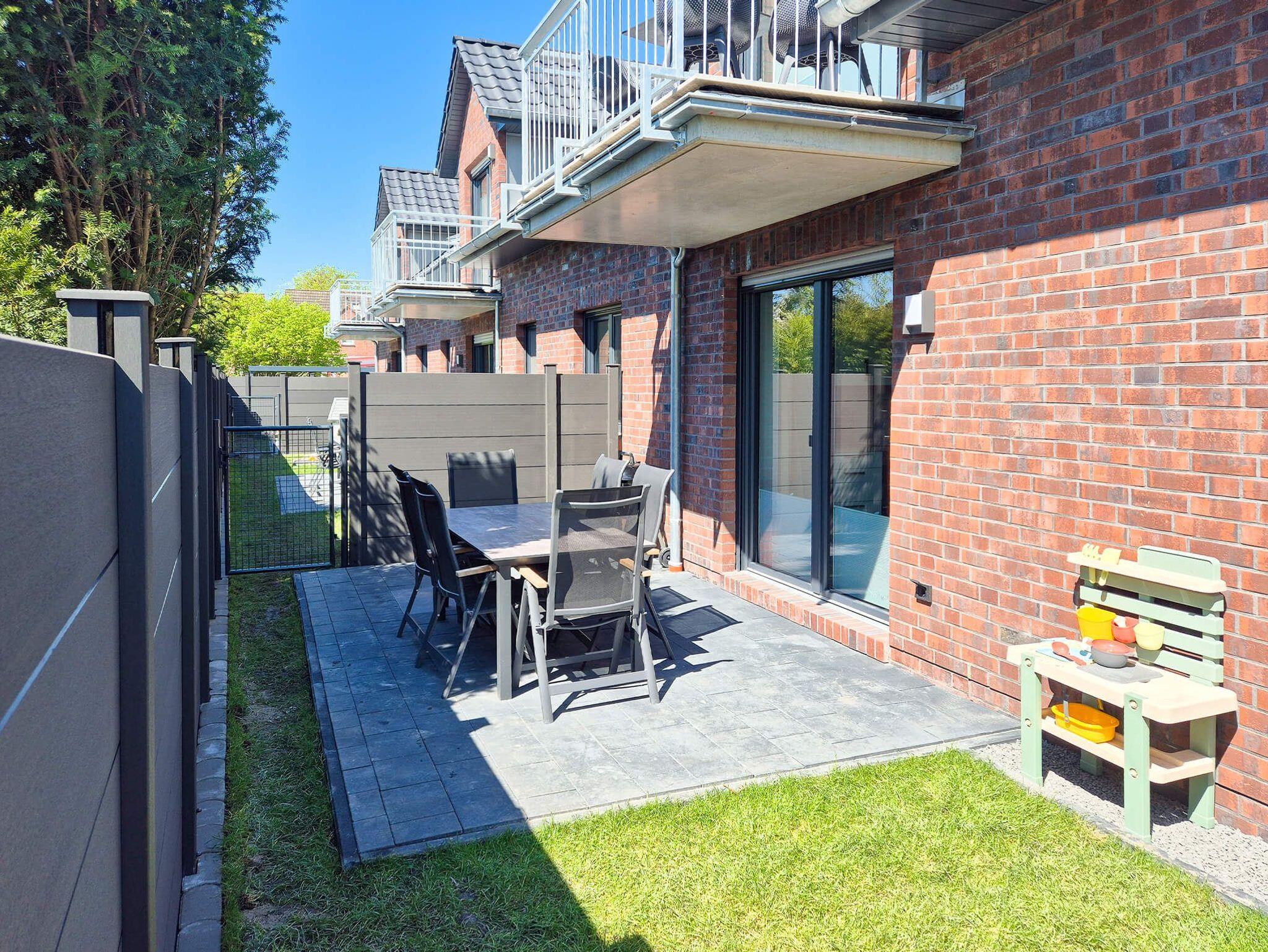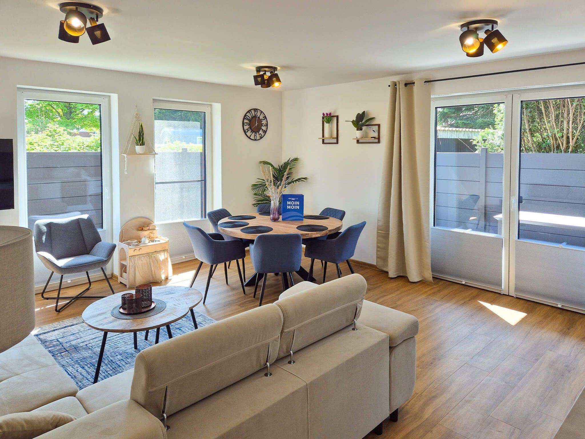 Moderne Ferienwohnung mit Sauna und eingezäuntem Garten in Dornum, direkt im historischen Ortskern.