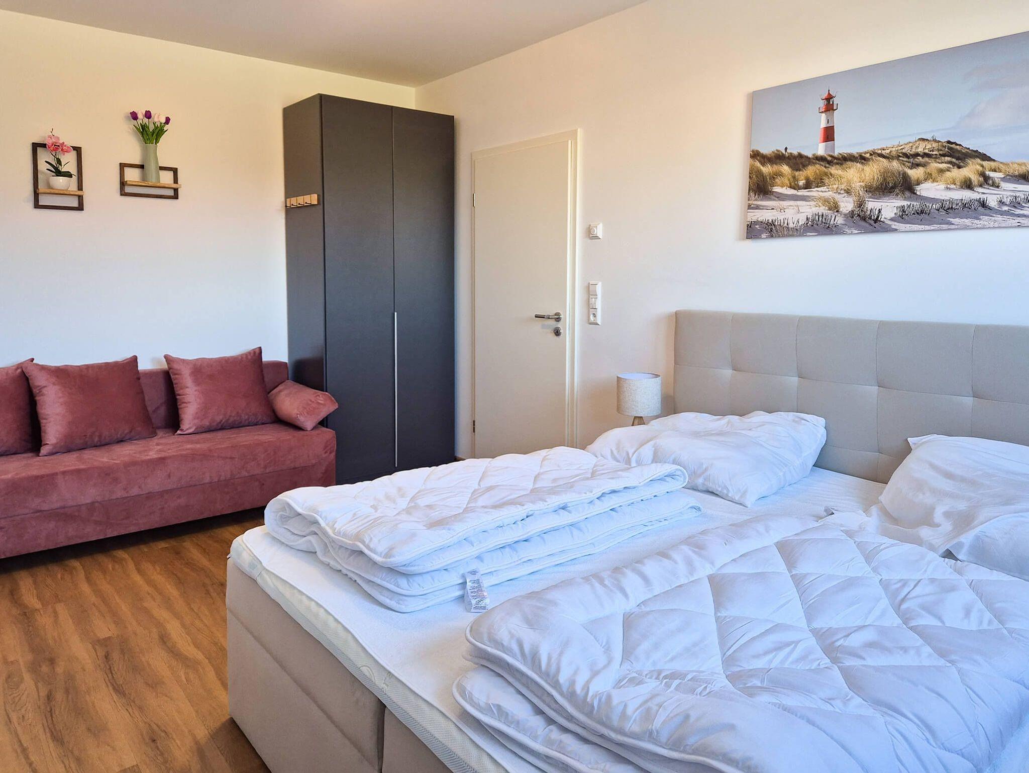 • Schlafzimmer 2: Doppelbett 180x200 cm (Boxspring) + Schlafsofa (z. B. für 1-2 Kinder)