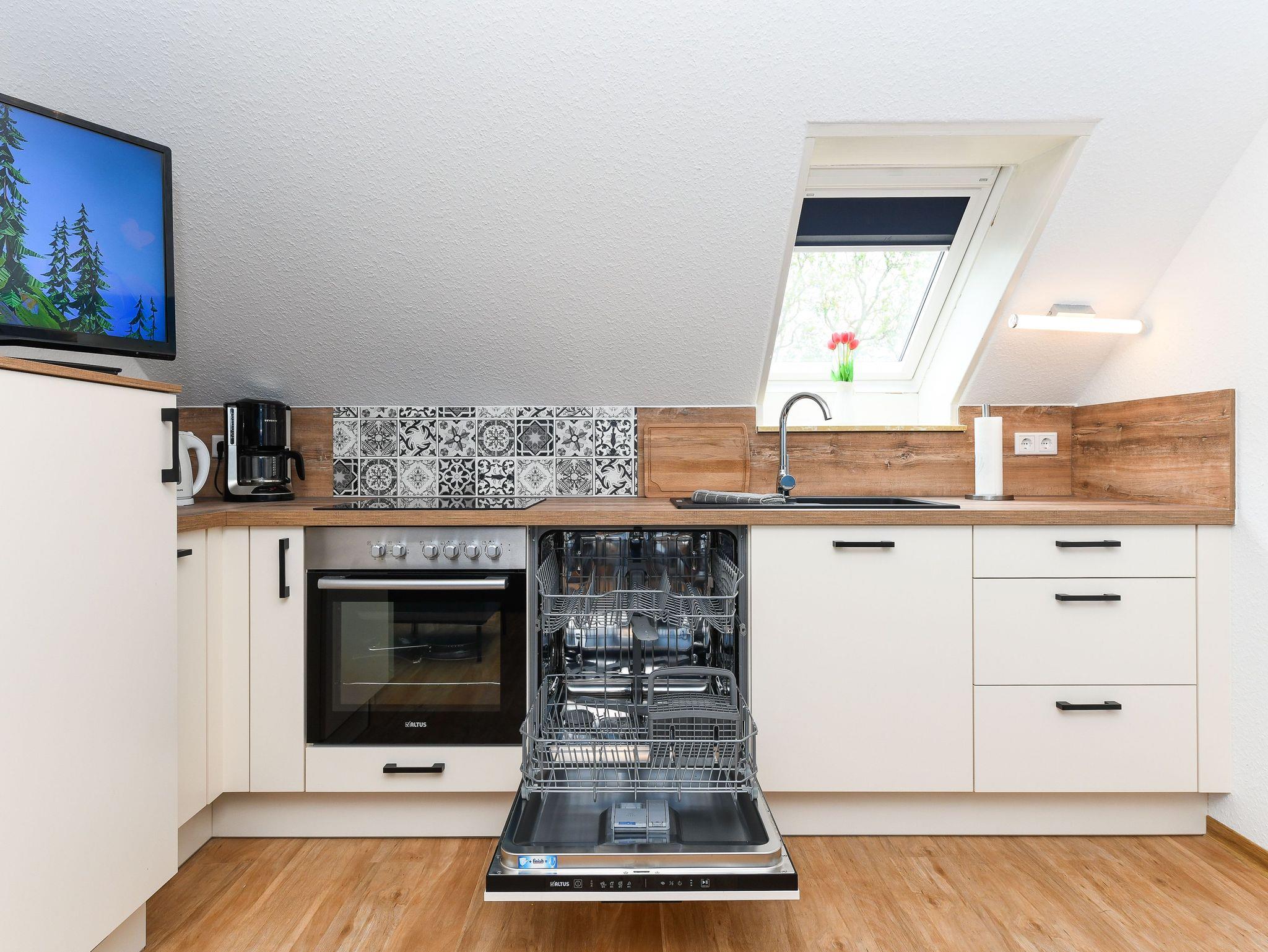 Größe ca. 60 Quadratmeter, Wohnzimmer, Küche, Schlafzimmer, zweites separates Schlafzimmer/Kinderzimmer´, Badezimmer mit Dusche,Waschtisch und WV, Obergeschoss, optimal für 2 bis 3 Personen und zusätzlich ein Kleinkind.