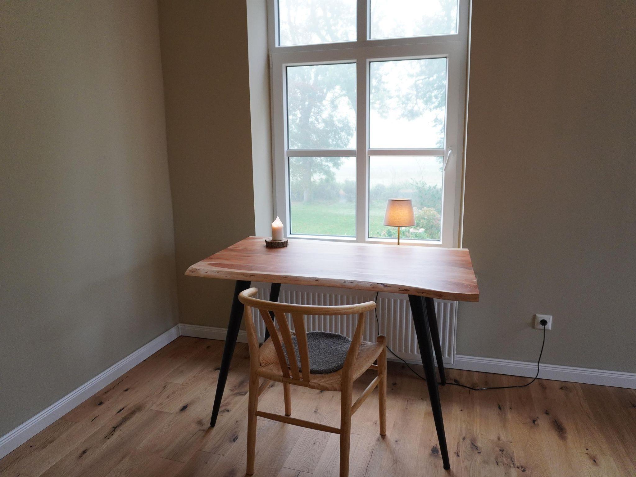 Modern eingerichtetes Ferienhaus im Wilhelminenhof nahe UNESCO Wattenmeer, ideal für Familien und Home-Office.