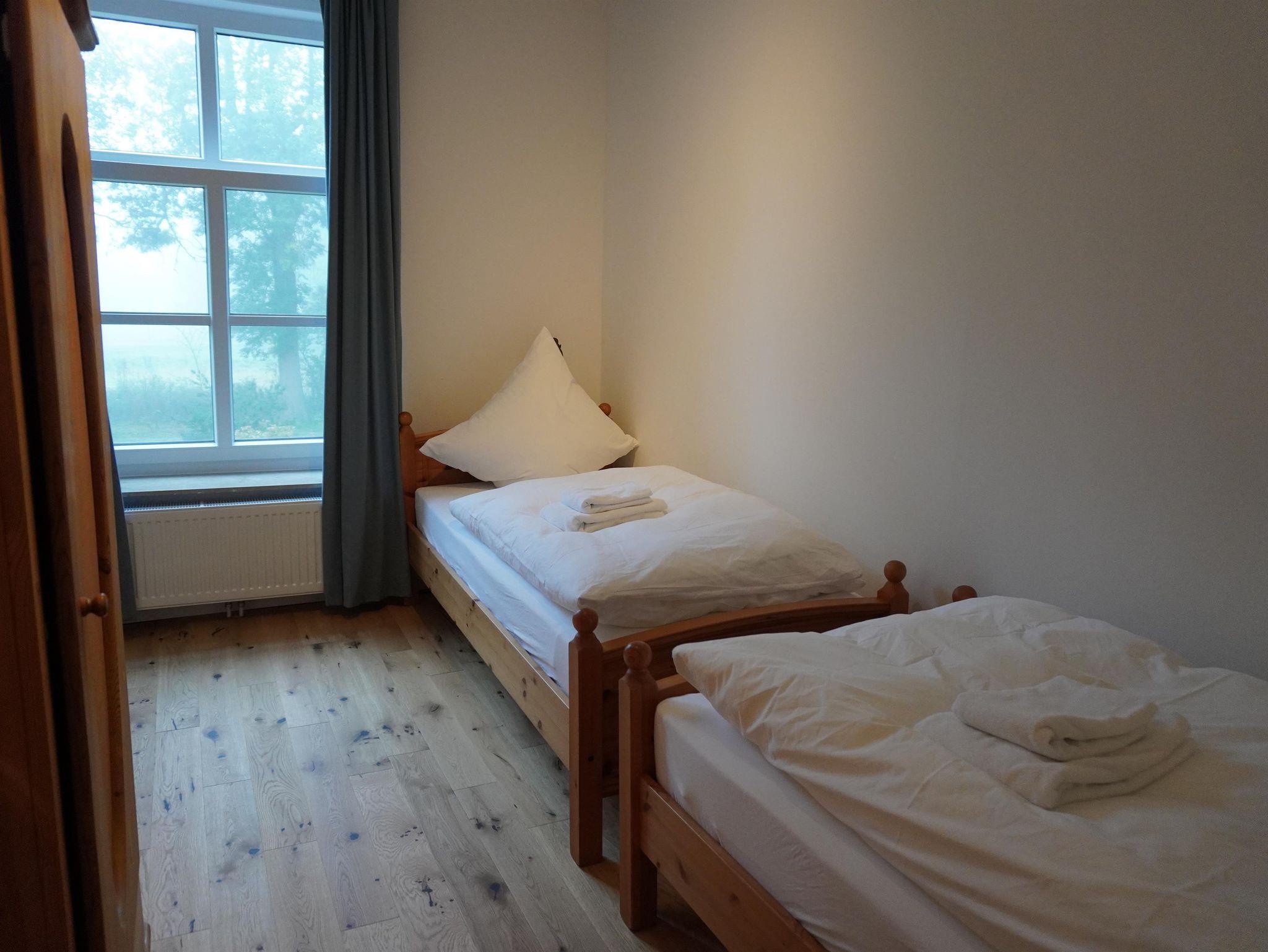Kaarnhaus: Das alte Kaarnhaus stellt ehemals die Verbindung zwischen Wirtschafts- und Wohngebäude da. Jetzt ist hier eine 79m² gemütliche Wohnung für vier Personen entstanden. Im Erdgeschoss befindet sich der Wohn- und Essbereich mit einem gemütlichen Kamin, einer vollausgestatteten Küche, eine Couch und ein Sat-Tv. Im Obergeschoss ist ein Doppelzimmer sowie ein Zweibettzimmer vorhanden. Außerdem befindet sichim Obergeschoss das Badezimmer mit einem WC und einer Dusche. Die Terrasse ist nach Südwesten ausgerichtet.